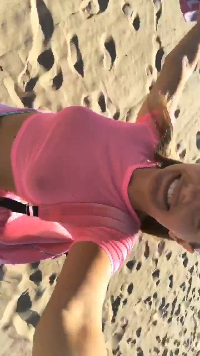 Alexandra Stan porte un haut rose transparent à la plage de Santa Monica – Instagram, 28/09/2017. Alexandra Ioana Stan est une chanteuse & auteure-compositrice. Âge : 28.
