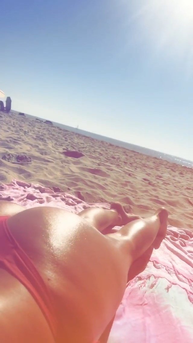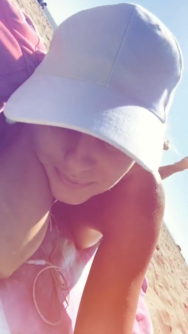 Elle n'est pas complètement naïve, elle se couvre quand elle est debout car elle sait que la nudité est interdite sur les plages de Californie. D'ailleurs, elle sait qu'on peut être seins nus en étant allongée sur le ventre.
