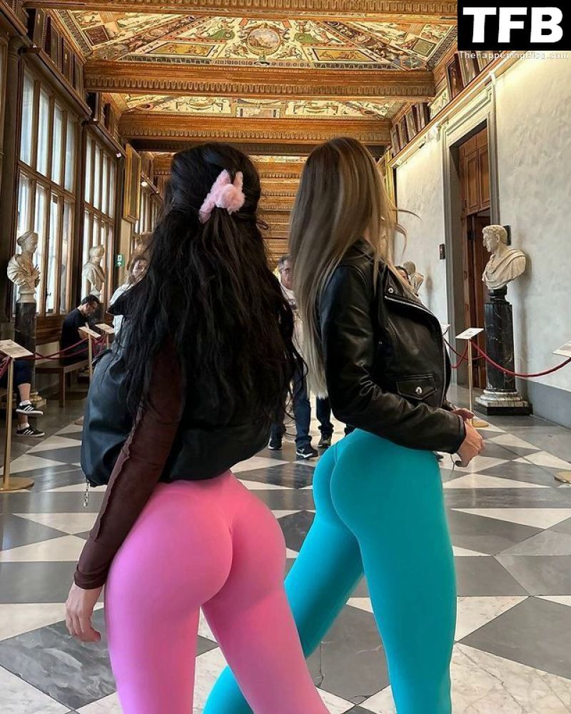 Les mannequins Alexis Mucci et Eva Menta affichent leur poitrine nue en posant dans des hauts transparents sans soutien-gorge au musée italien, 26/10/2022.