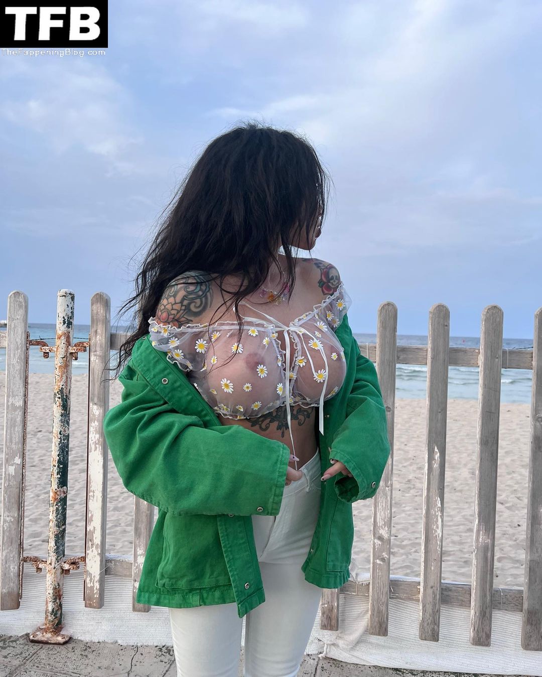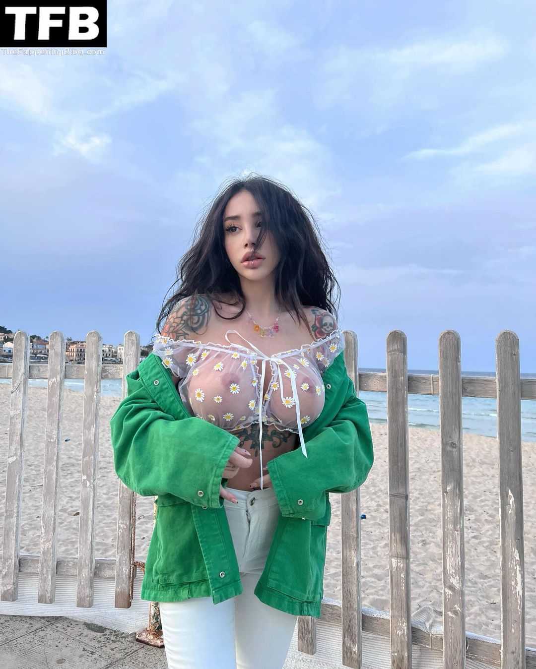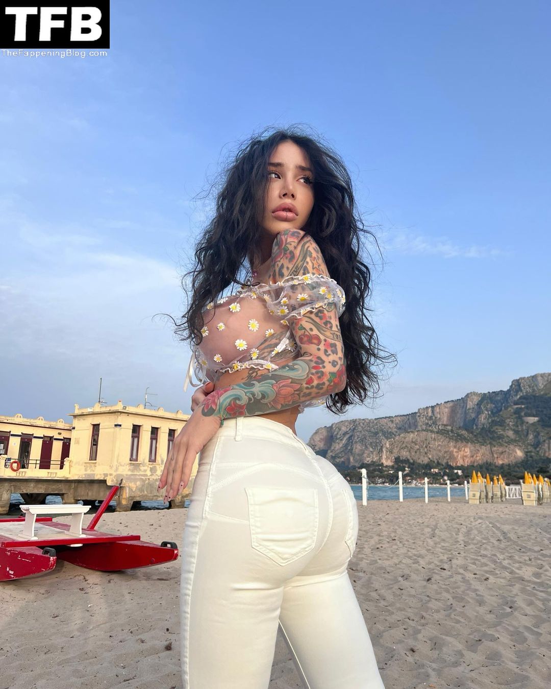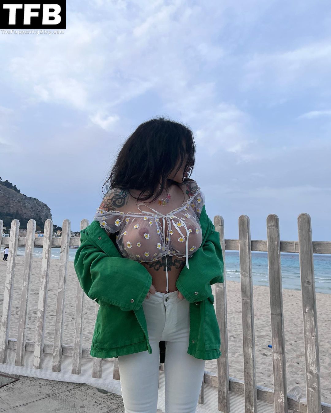 Model Alexis Mucci taquine ses admirateurs avec ses seins nus tout en posant dans un haut transparent sur la plage à Palerme, en Italie – Instagram, 13/06/2022.