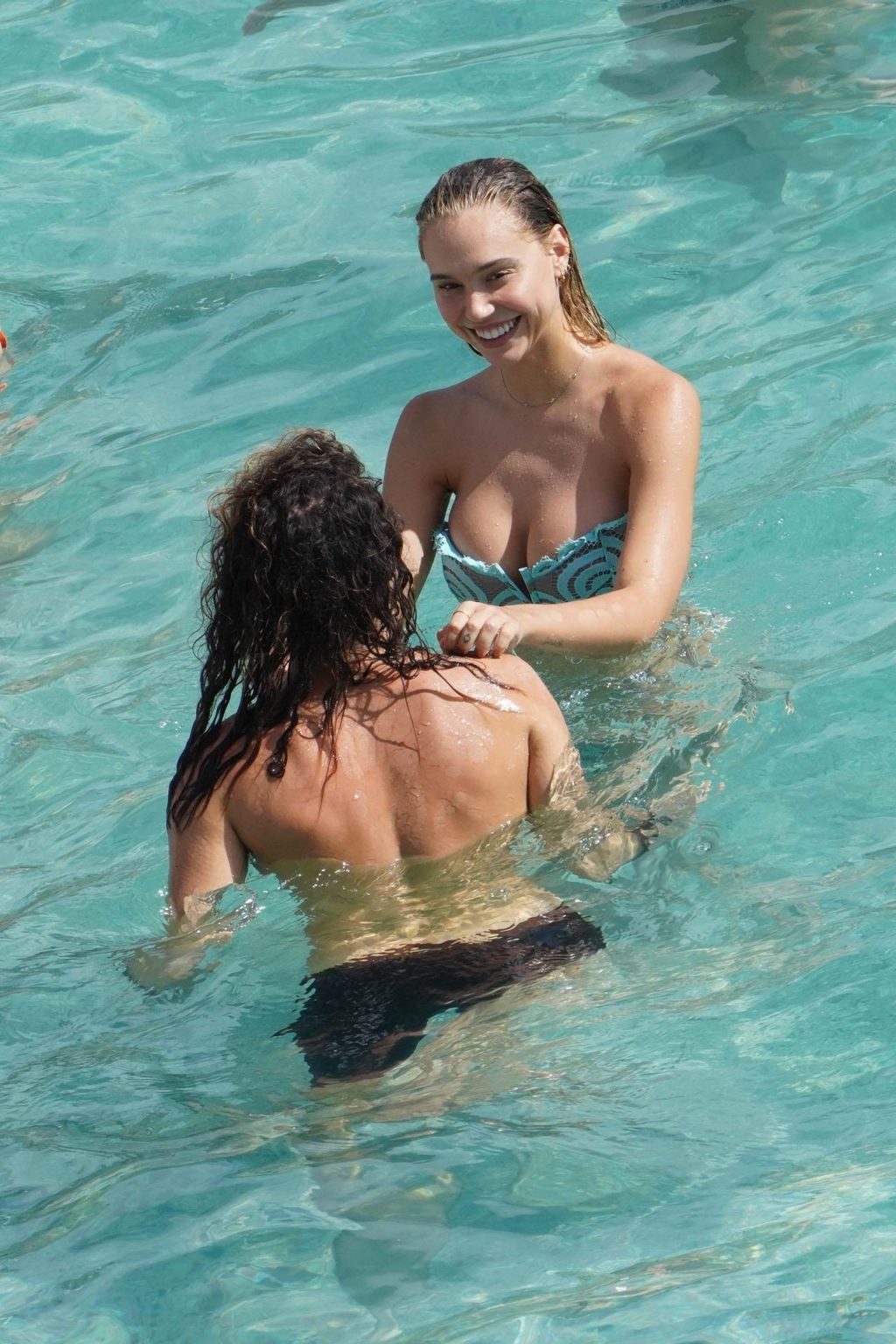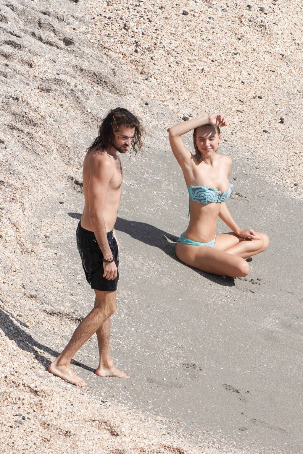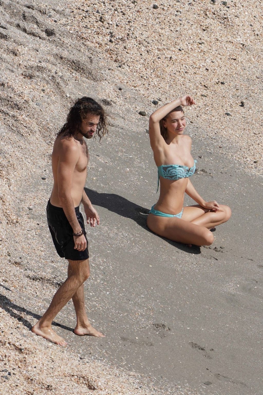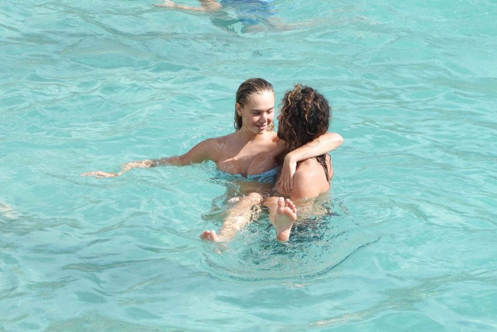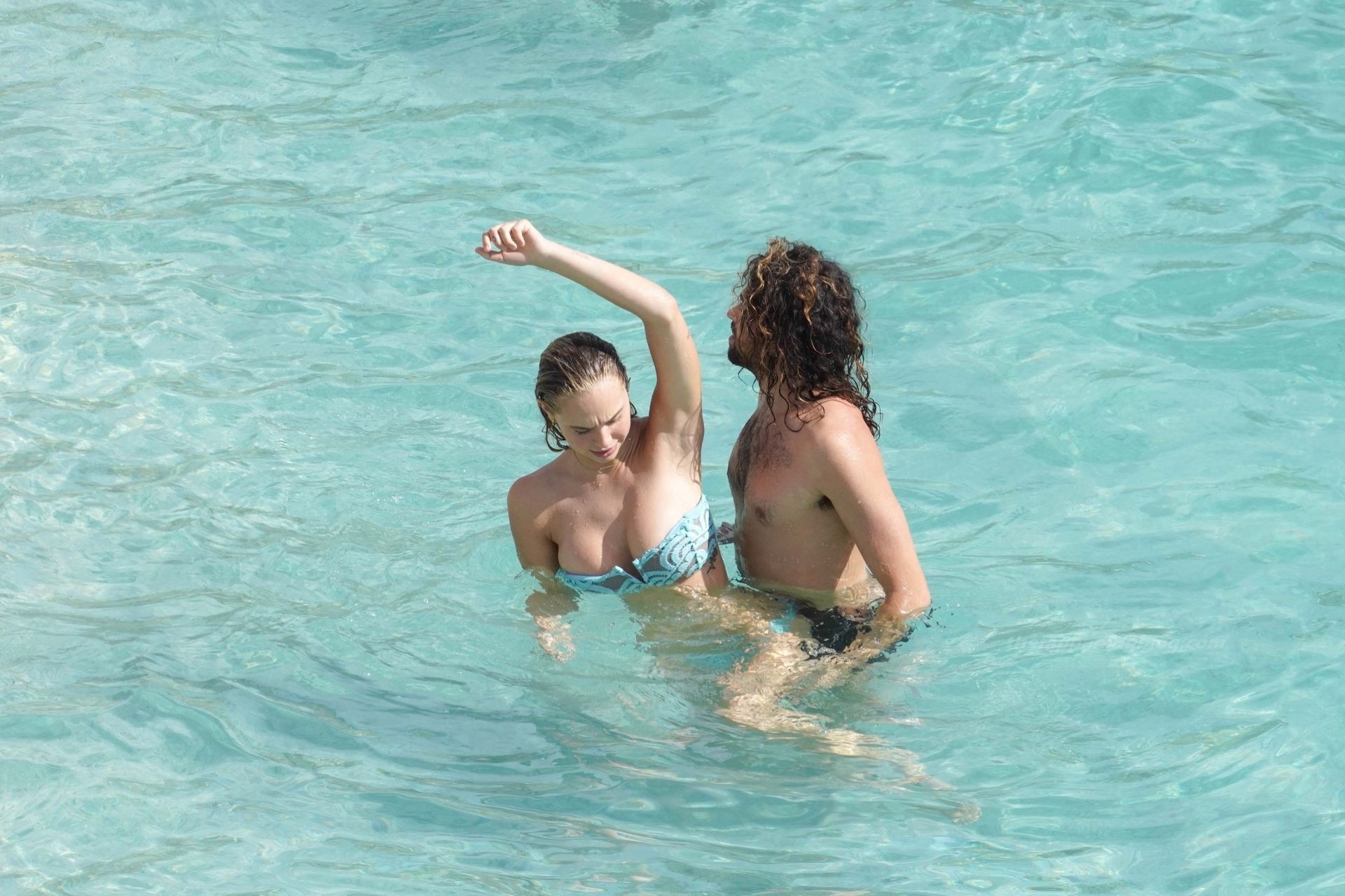 Personnalité médiatique et mannequin, Alexis Ren affiche son incroyable silhouette en bikini avec son petit ami et sa famille à Shellona Beach à St Barth, France, 20/12/2020.