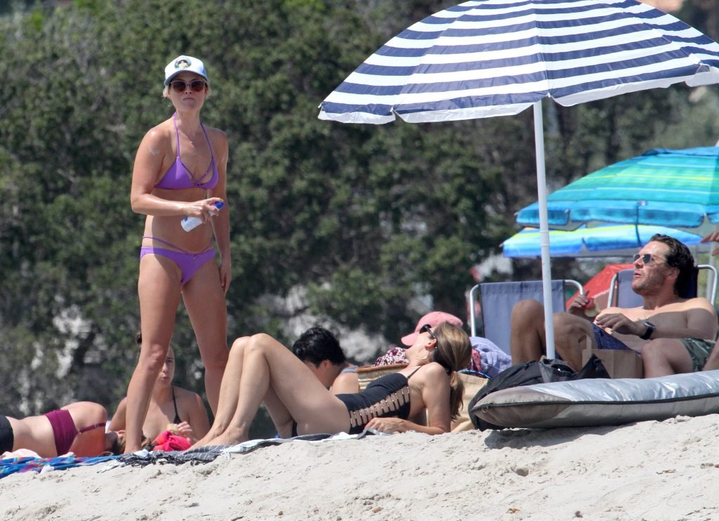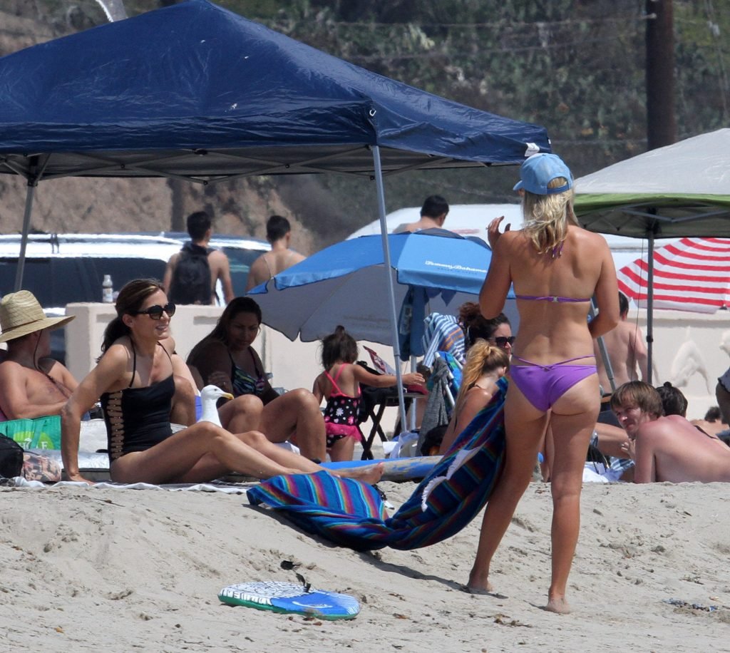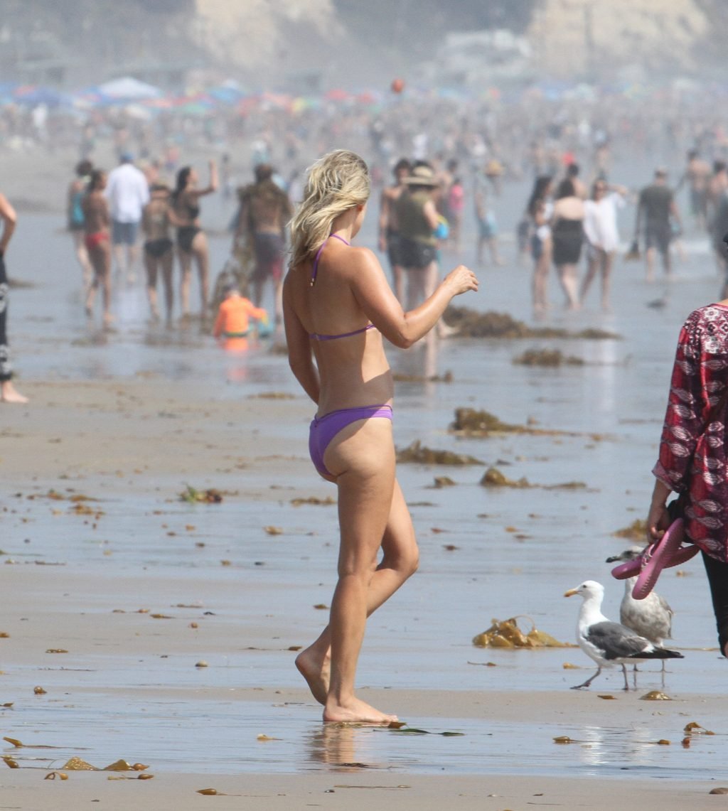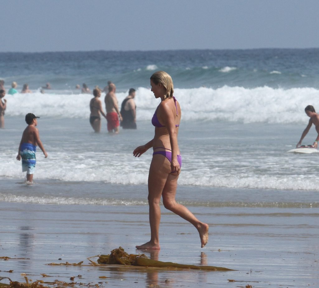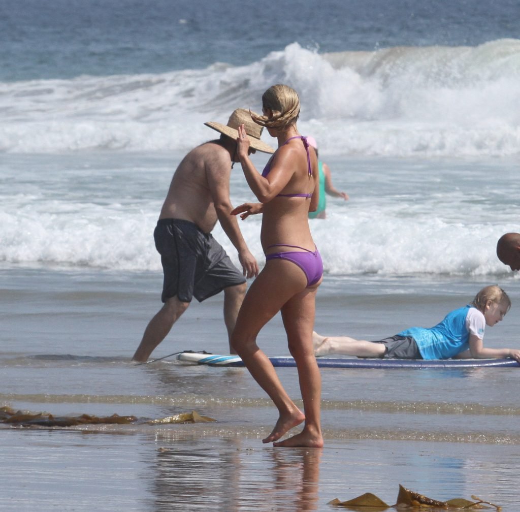 Ali Larter a été aperçue portant un maillot de bain bikini en faisant des grimaces amusantes tout en mettant de l’huile de lotion solaire, nageant dans l’océan avec ses enfants et son mari Hayes MacArthur à la plage de Malibu, le 14/08/2018. Alison Elizabeth (Ali) Larter est une actrice américaine et ancienne mannequin. Âge : 42 ans.