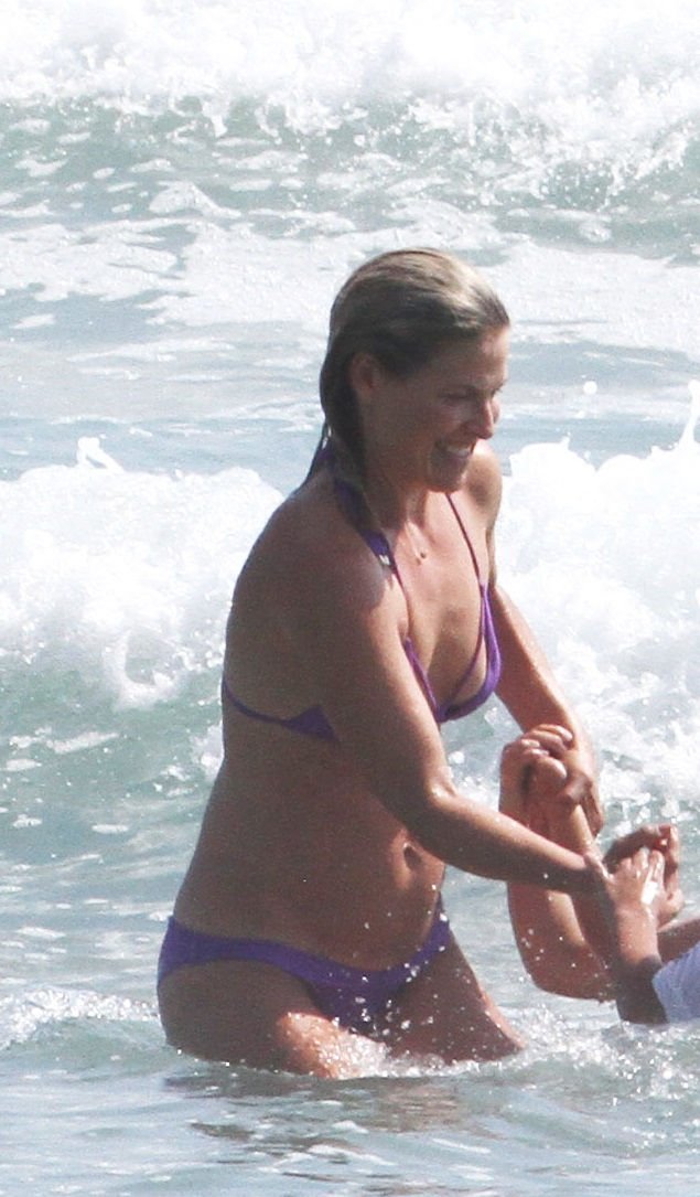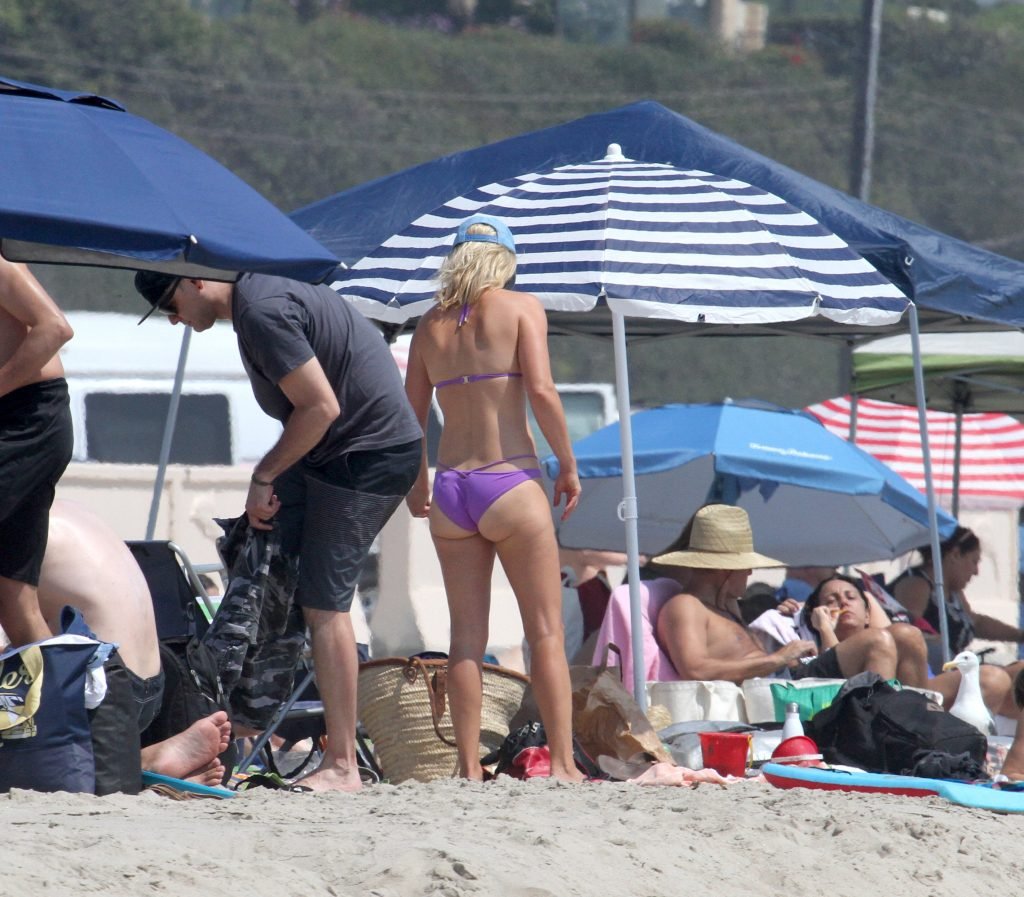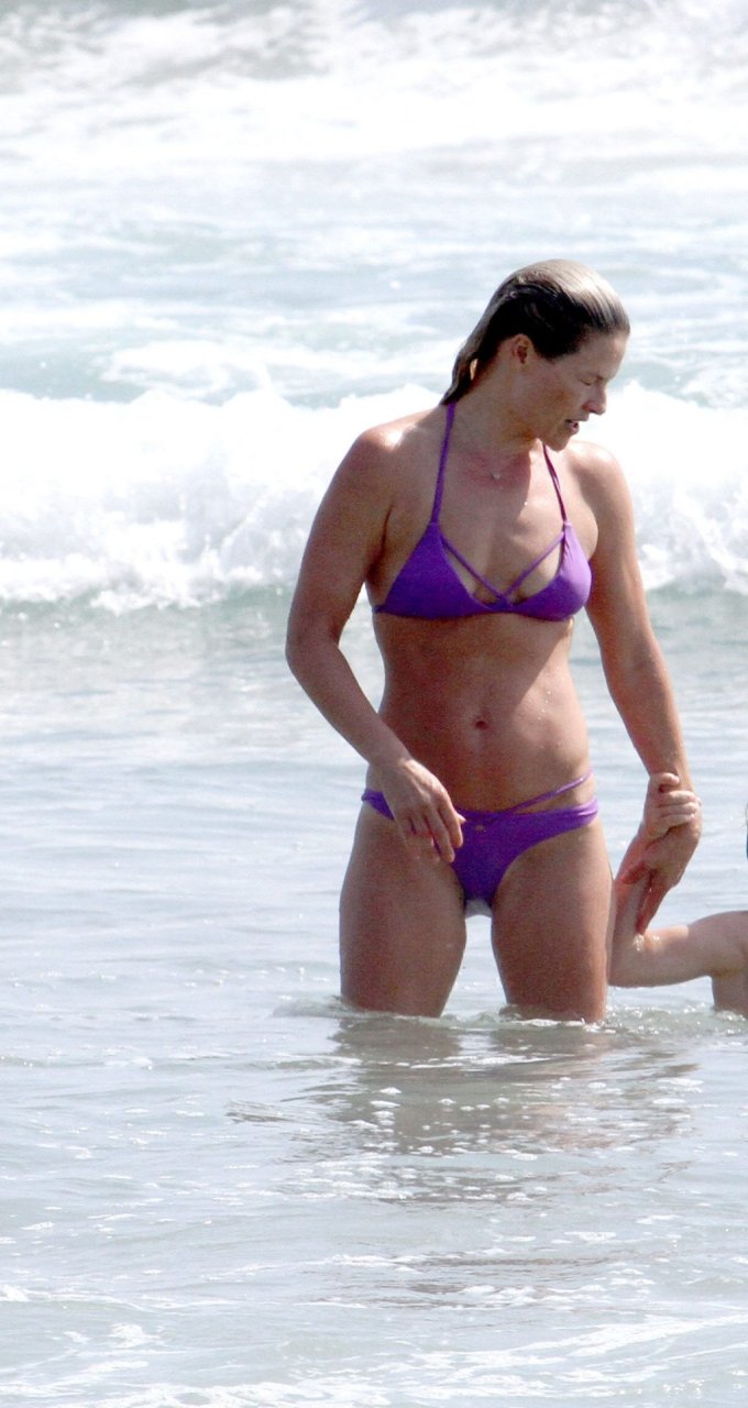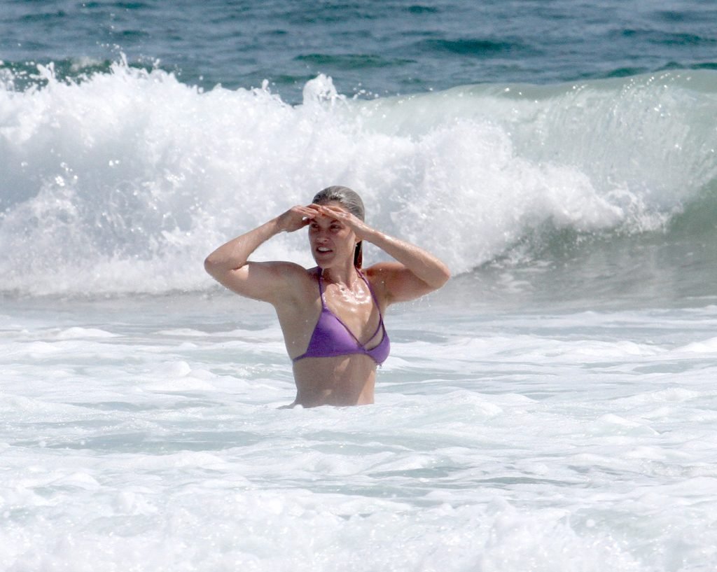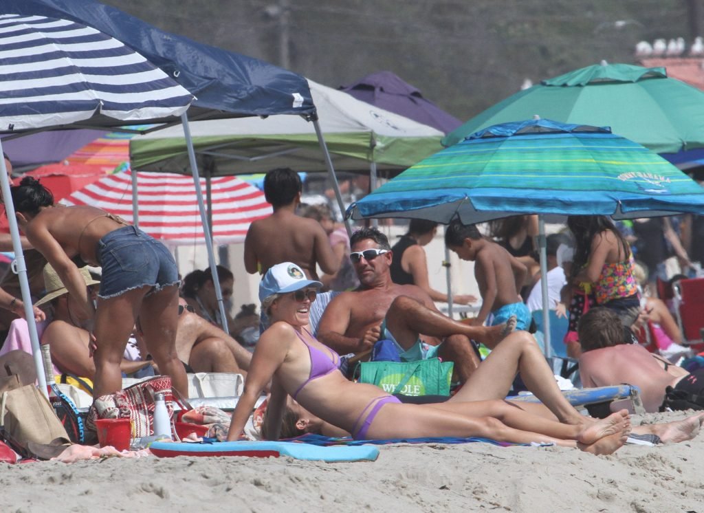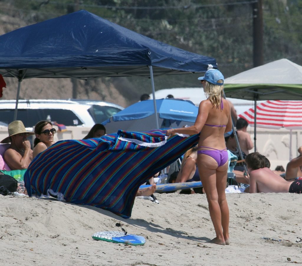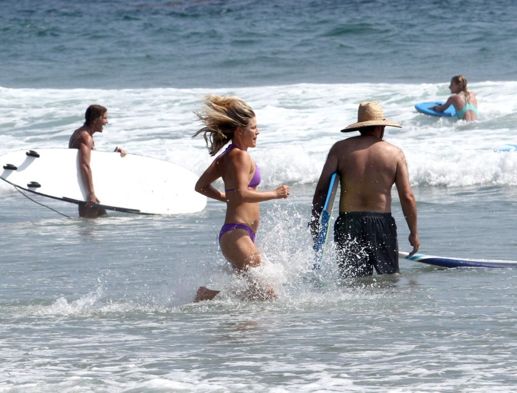 Ali Larter a été aperçue portant un maillot de bain bikini en faisant des grimaces amusantes tout en mettant de l’huile de lotion solaire, nageant dans l’océan avec ses enfants et son mari Hayes MacArthur à la plage de Malibu, le 14/08/2018. Alison Elizabeth (Ali) Larter est une actrice américaine et ancienne mannequin. Âge : 42 ans.