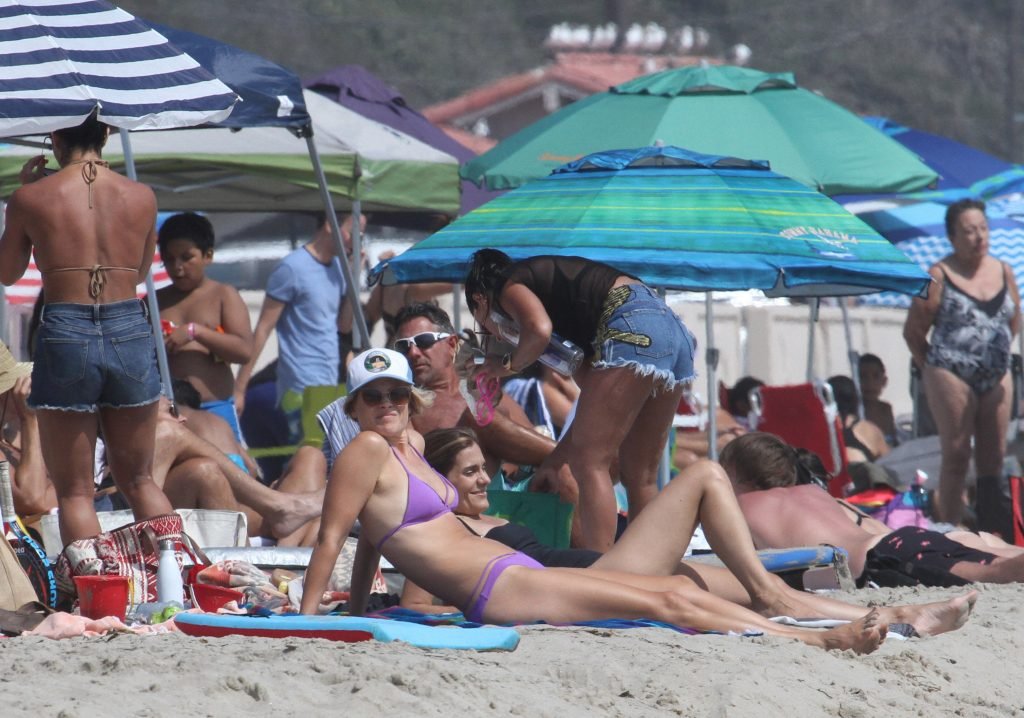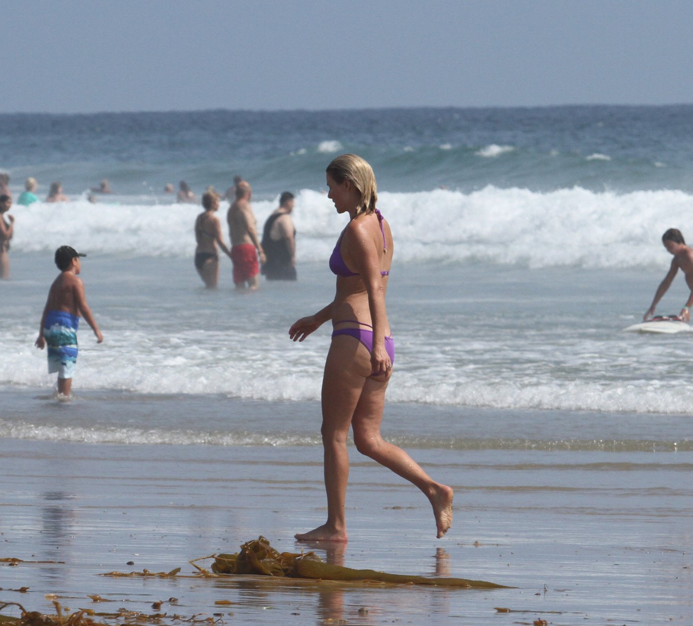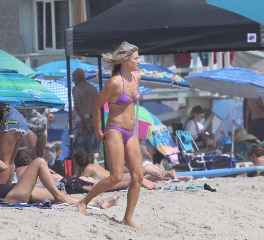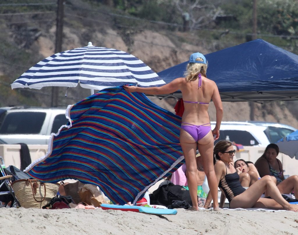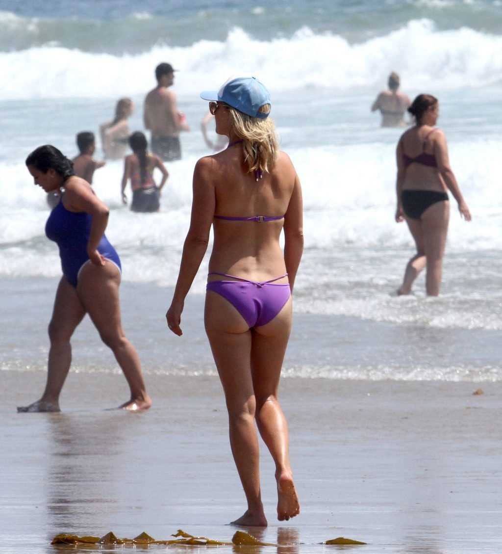 Ali Larter a été aperçue portant un maillot de bain bikini en faisant des grimaces amusantes tout en mettant de l’huile de lotion solaire, nageant dans l’océan avec ses enfants et son mari Hayes MacArthur à la plage de Malibu, le 14/08/2018. Alison Elizabeth (Ali) Larter est une actrice américaine et ancienne mannequin. Âge : 42 ans.