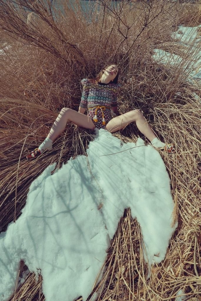 Seul un "photographe tendance et bien connu" peut amener un mannequin sexy à se déshabiller volontairement dans la neige.