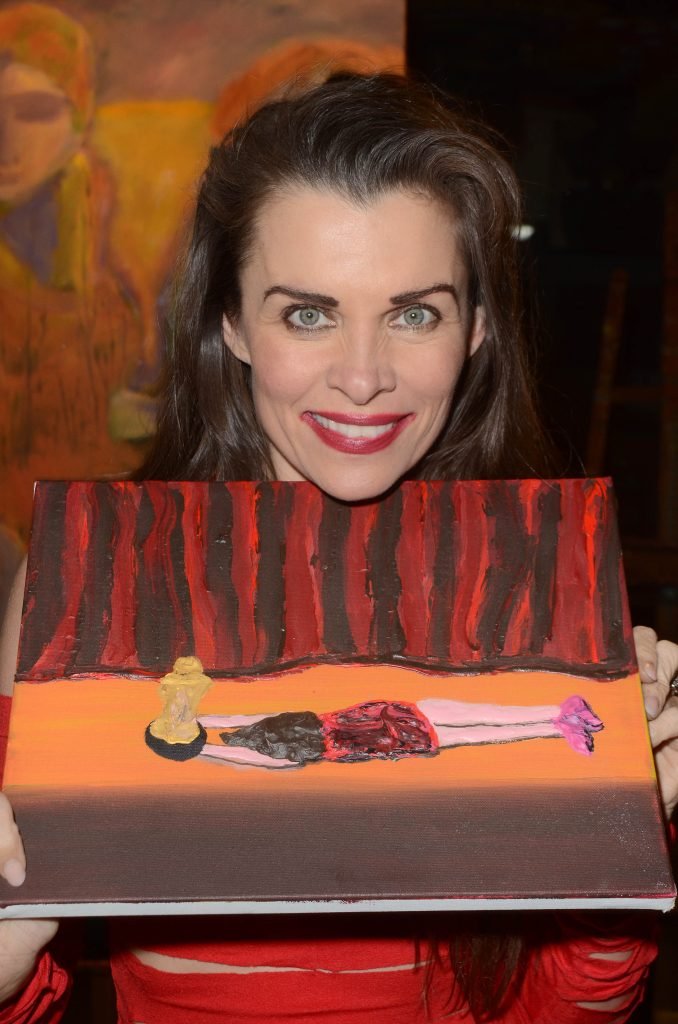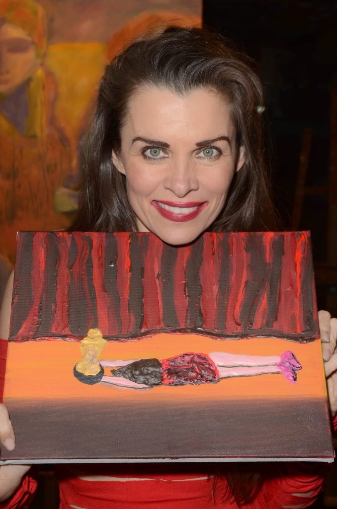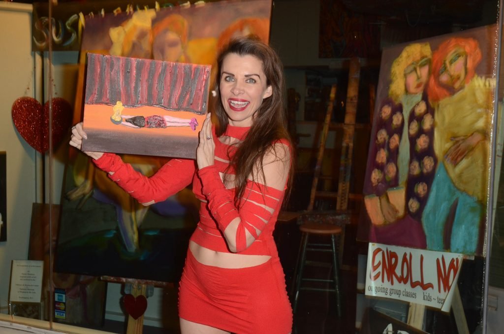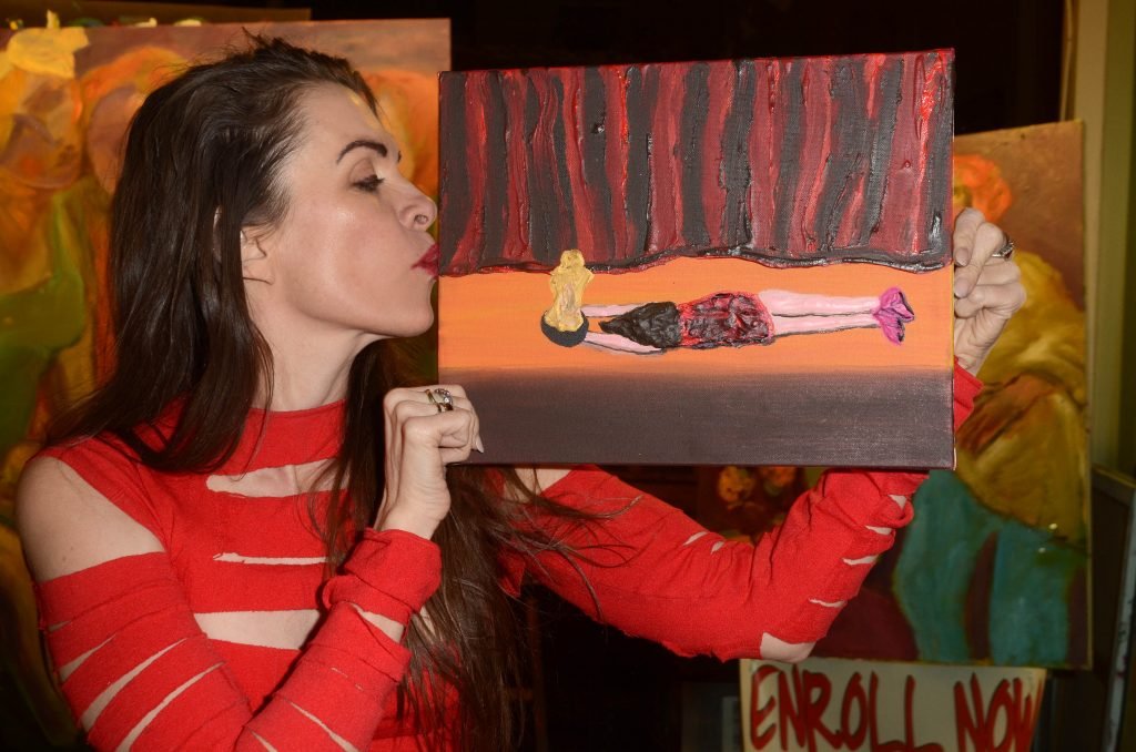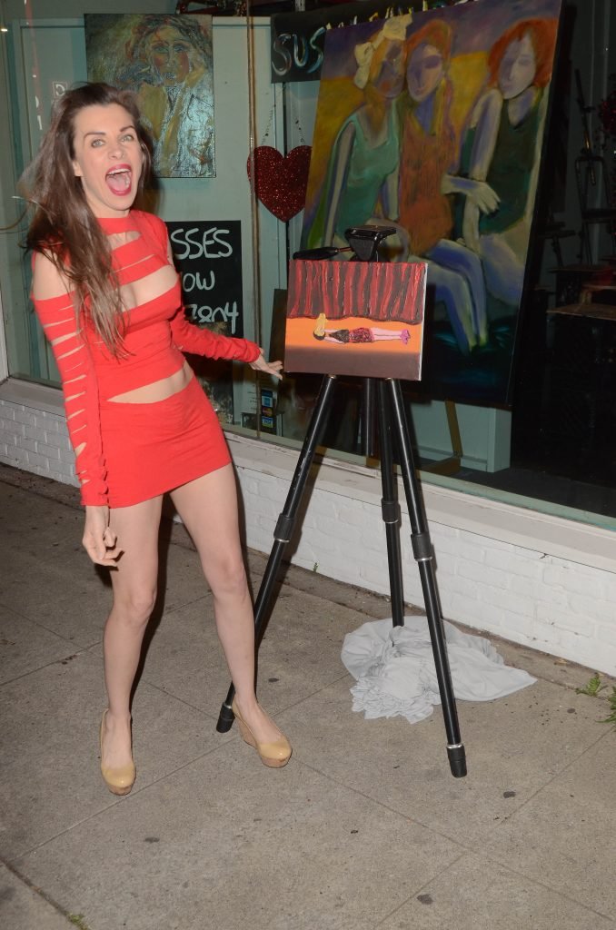 L’actrice de Baywatch Alicia Arden enfile une robe légère pour dévoiler à la presse le tableau gagnant, une représentation d’elle mourant sur scène alors qu’elle reçoit un Oscar dans un concours sur les réseaux sociaux – Los Angeles, 01/05/2018.