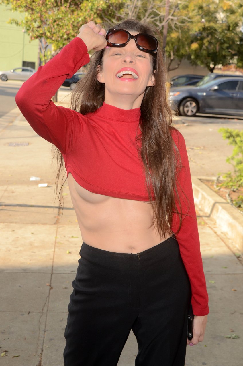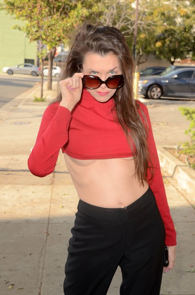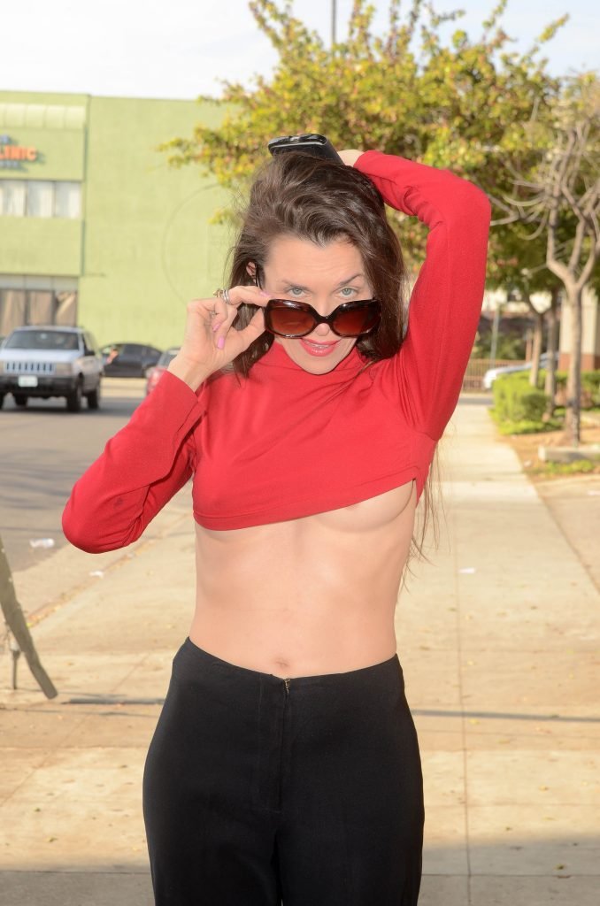 Alicia Arden a été aperçue à Hollywood portant un haut sous-poitrine osé, 11/06/2017. Alicia Arden est une actrice américaine (General Hospital, Baywatch). Âge : 48 ans.