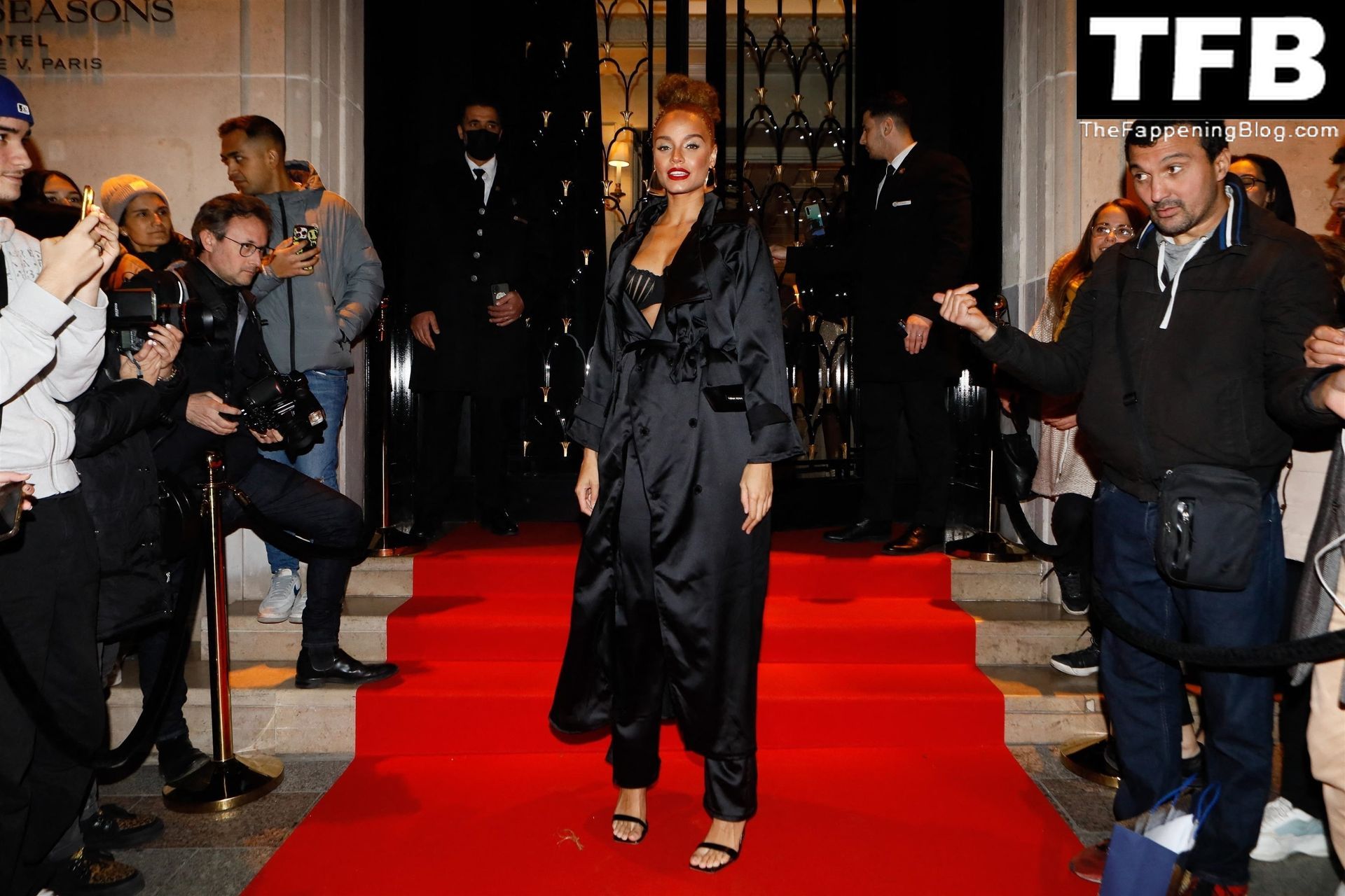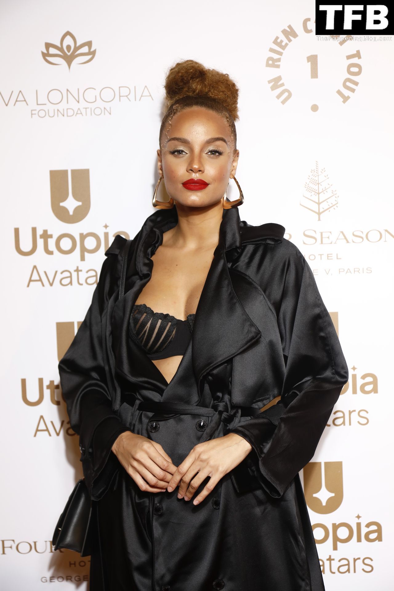 Alicia Aylies assiste au tapis rouge du Gala Global Gift 2022 à l’hôtel Four Seasons George V à Paris, le 19/11/2022.