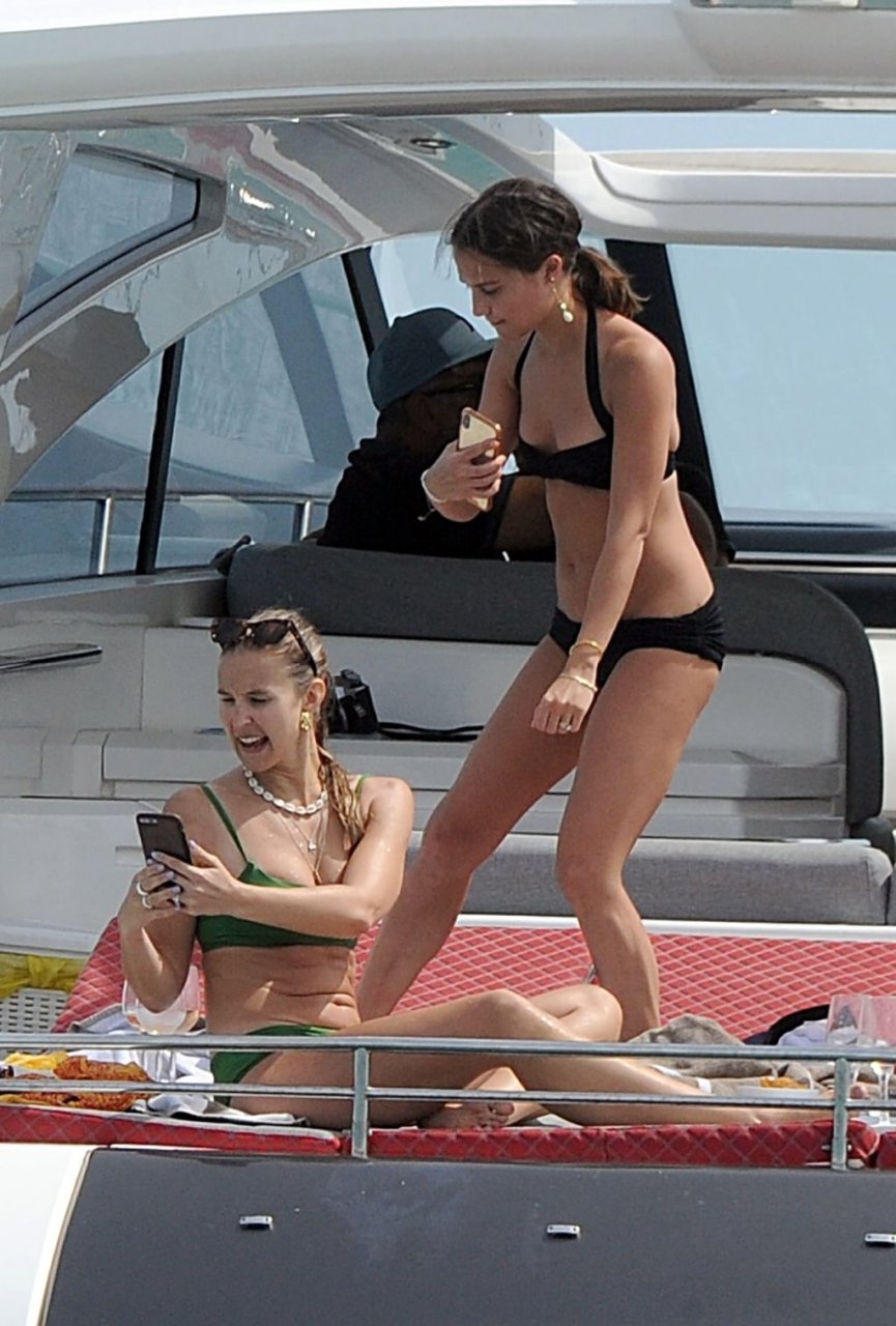 Alicia Vikander profite d’une journée en bateau pendant ses vacances à Formentera, le 23/05/2019. L’actrice de 30 ans a été vue en petit bikini noir avec ses amis.