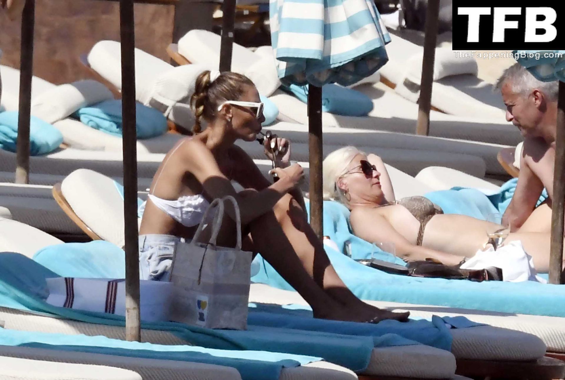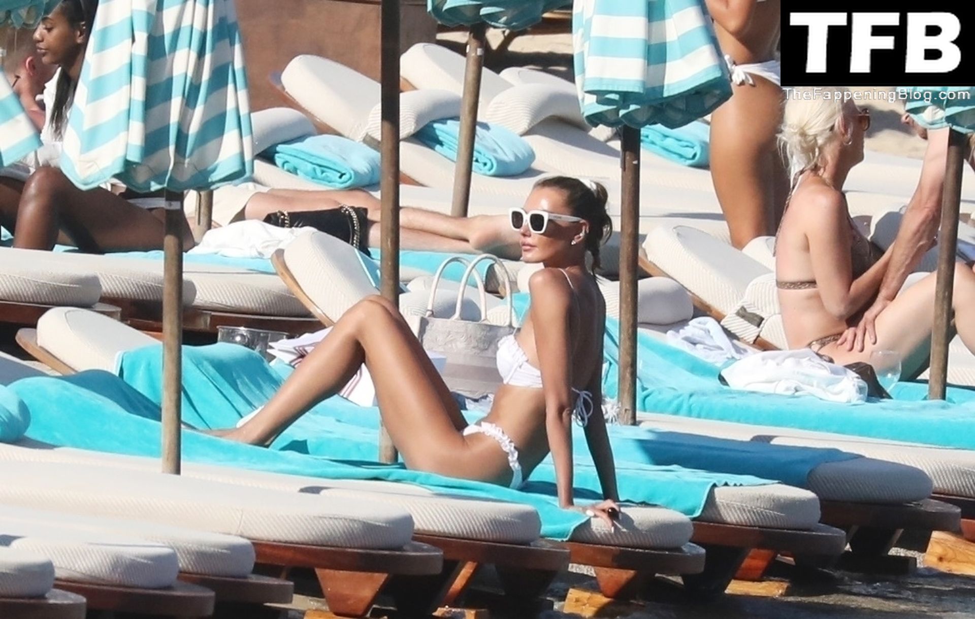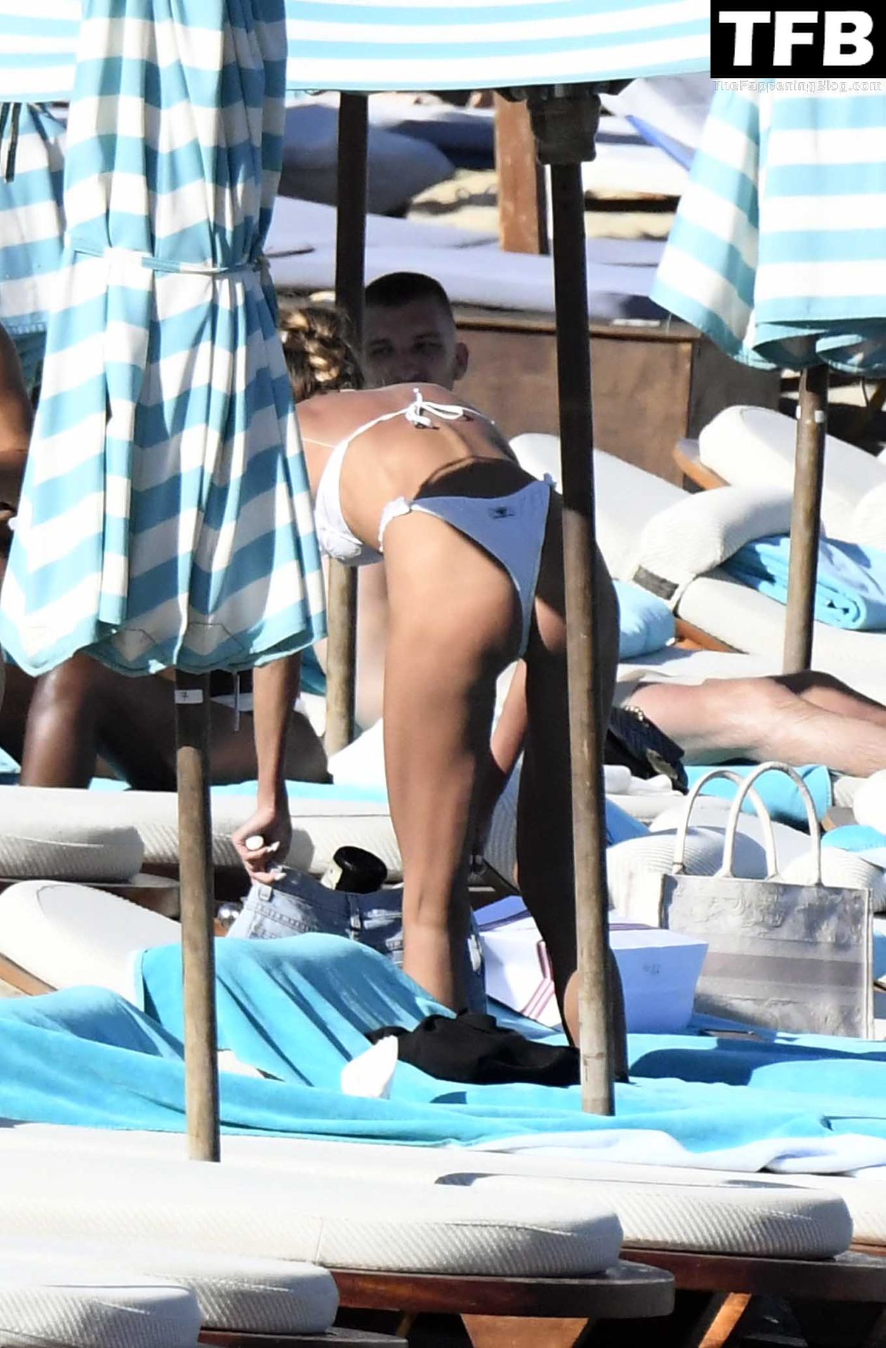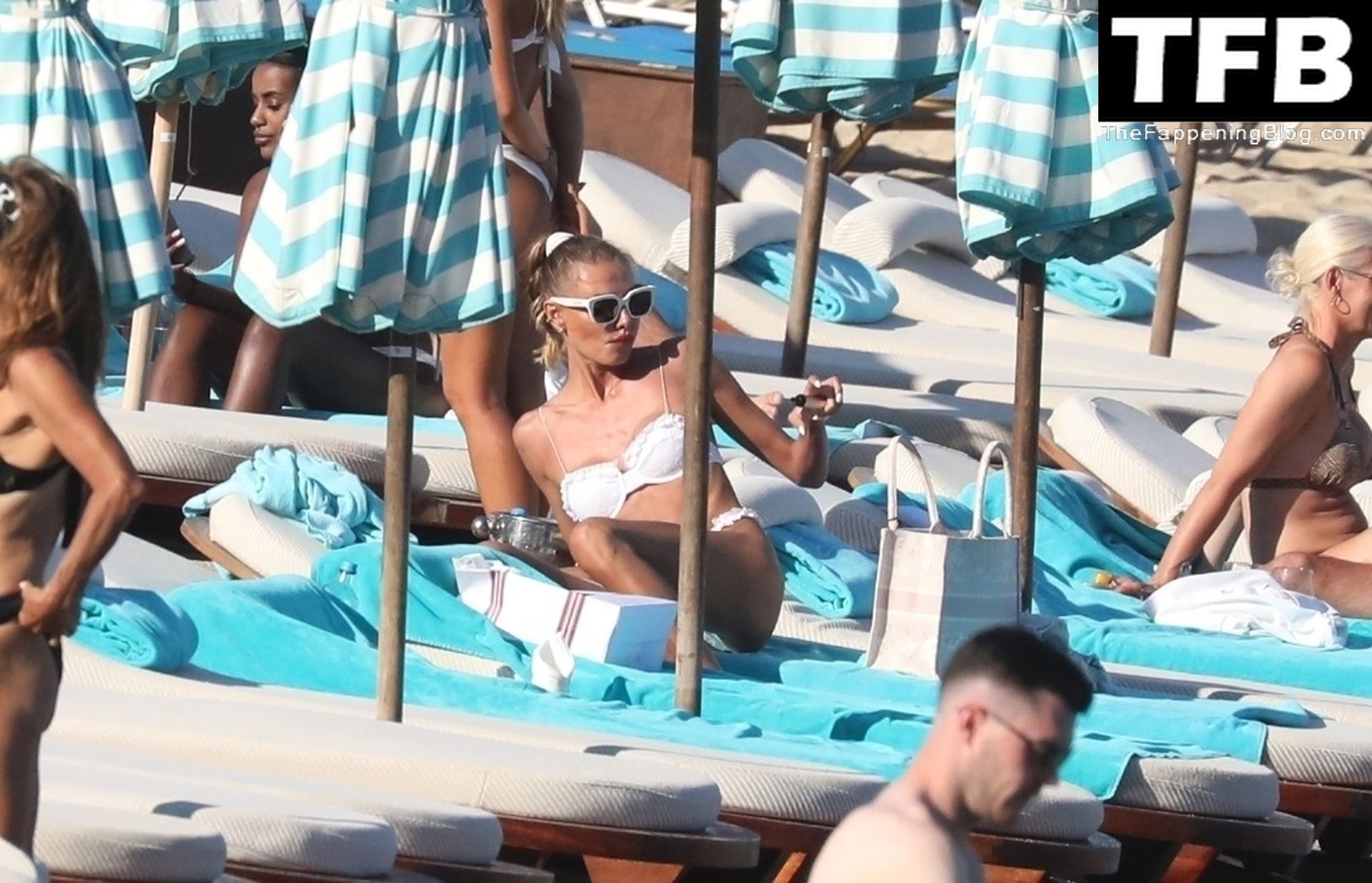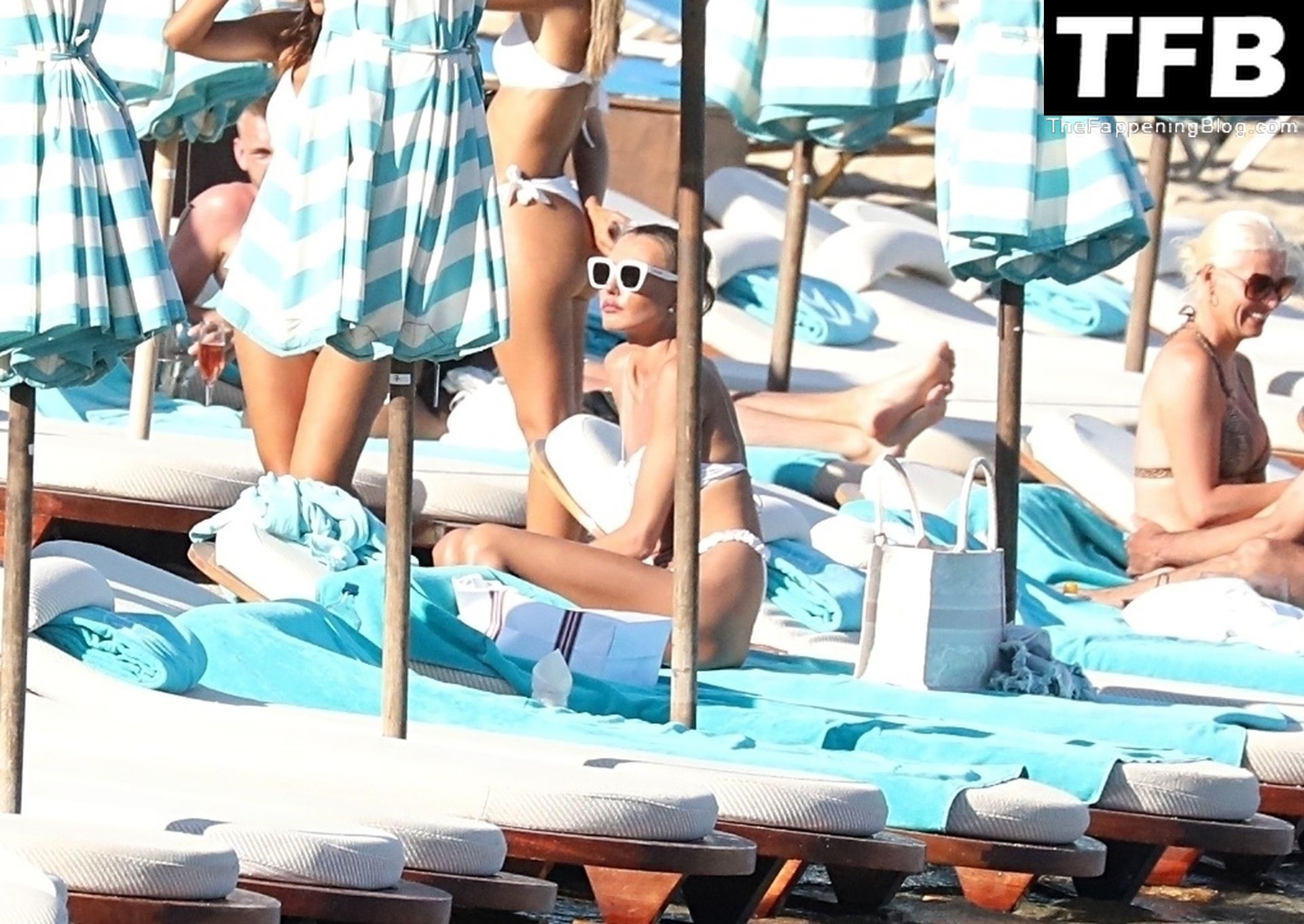 Malgré les difficultés dans son pays natal en Ukraine, le top modèle ukrainien Alina Baikova parvient à se détendre sous le soleil grec vêtue d’un tout petit bikini blanc et de lunettes de soleil blanches, mettant en valeur son corps de mannequin sur la plage, 16/06/2022.