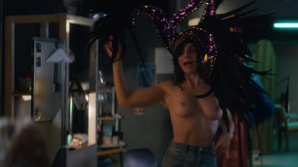 Regardez la vidéo d’Alison Brie avec des scènes nues et sexy de “GLOW” (2019) Saison 3 Épisode 3 (s03e03), où vous pouvez voir cette actrice éblouissante seins nus. Alison rit et montre ses seins parfaits dans une loge.