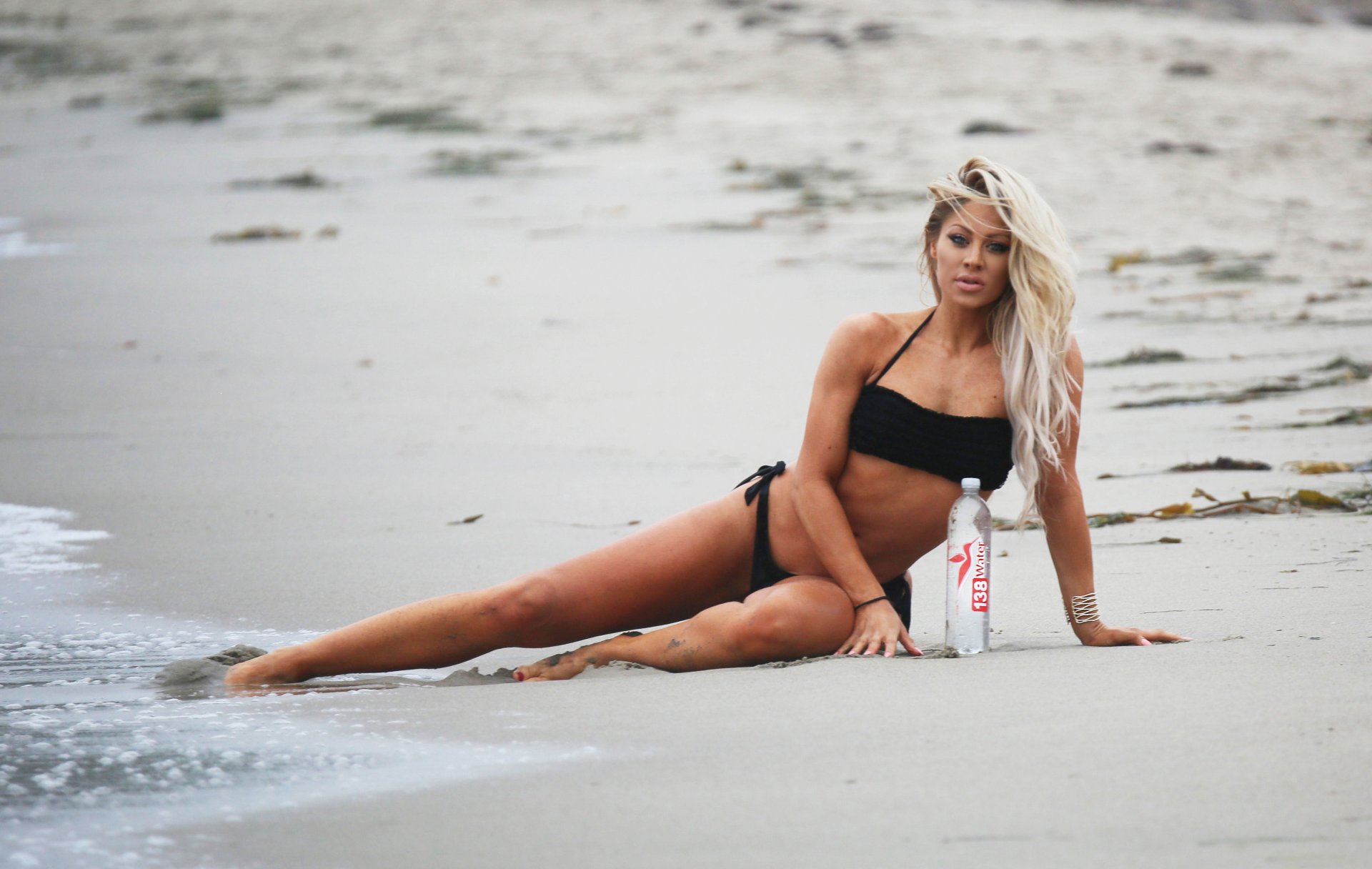 Le mannequin fitness américaine Alysia Kaempf (33 ans) exhibe son corps sexy en bikini lors d’une séance photo pour 138 Water à Malibu, le 14/07/2018.