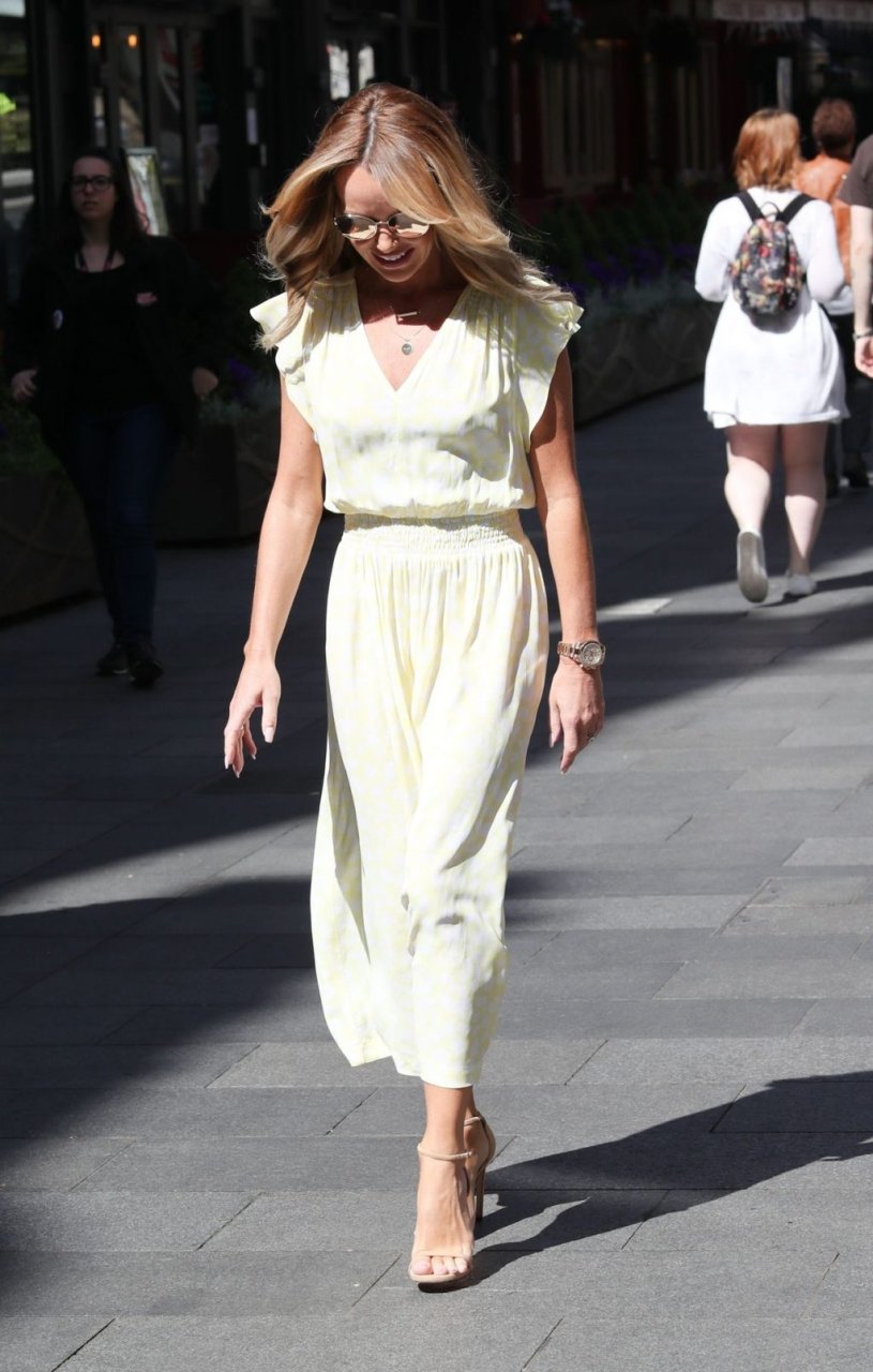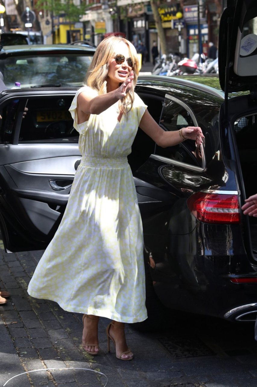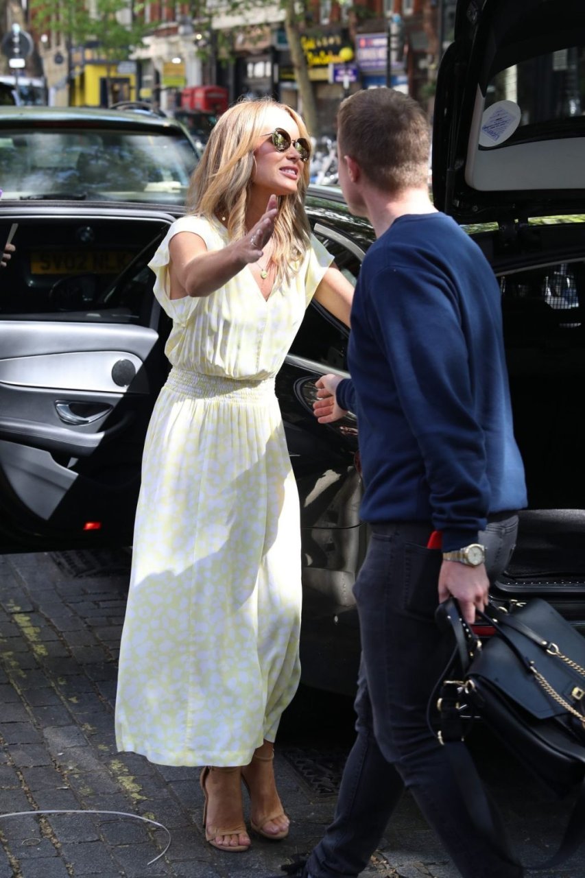 La présentatrice de télévision Amanda Holden a été photographiée portant une robe jaune citron en quittant Capital Radio à Londres, le 14/05/2019.
