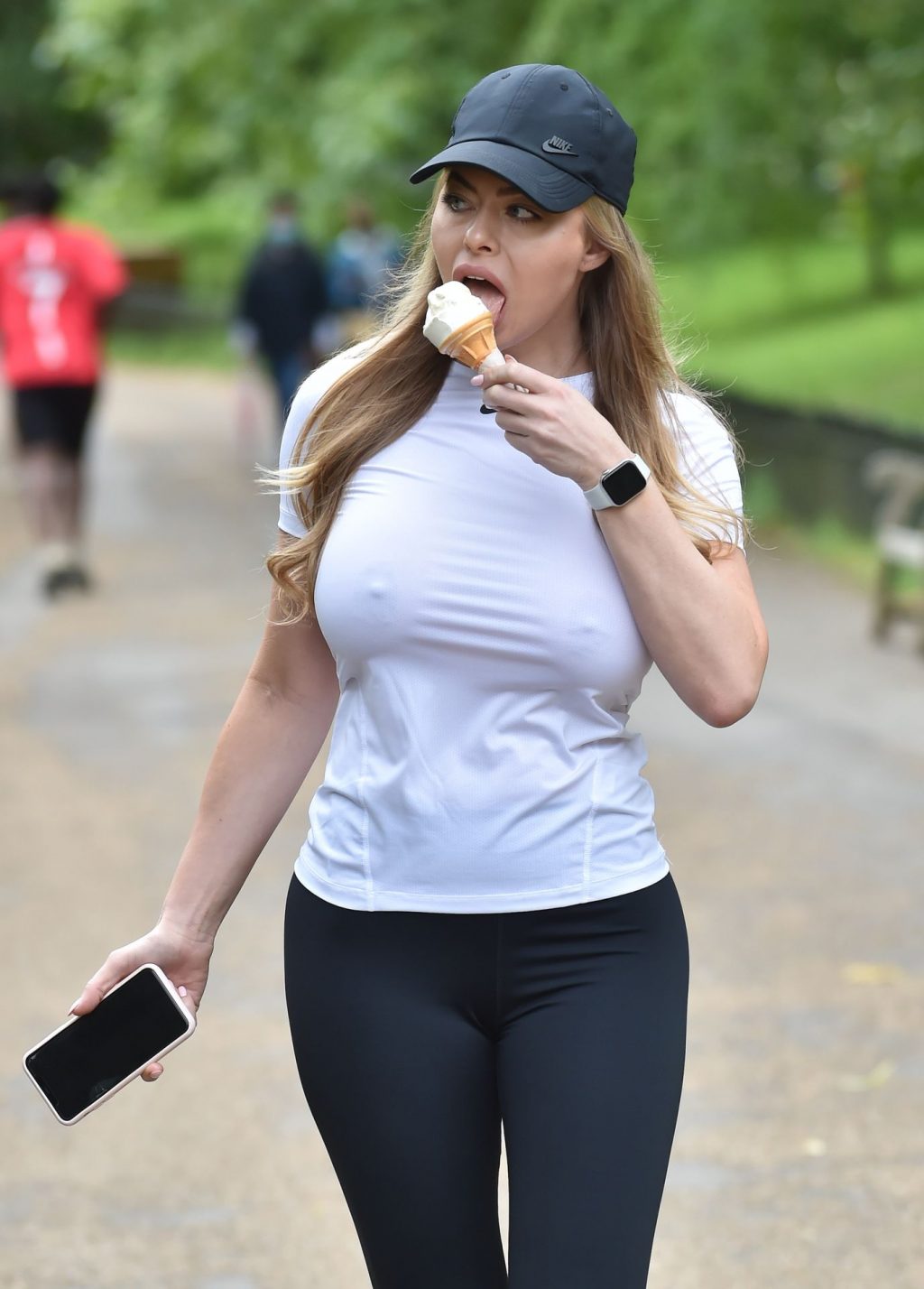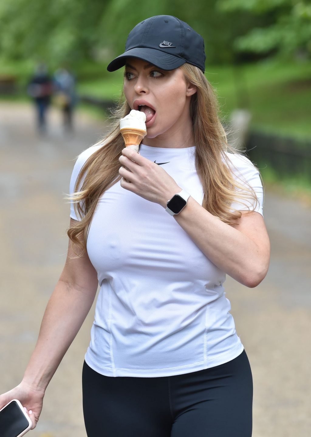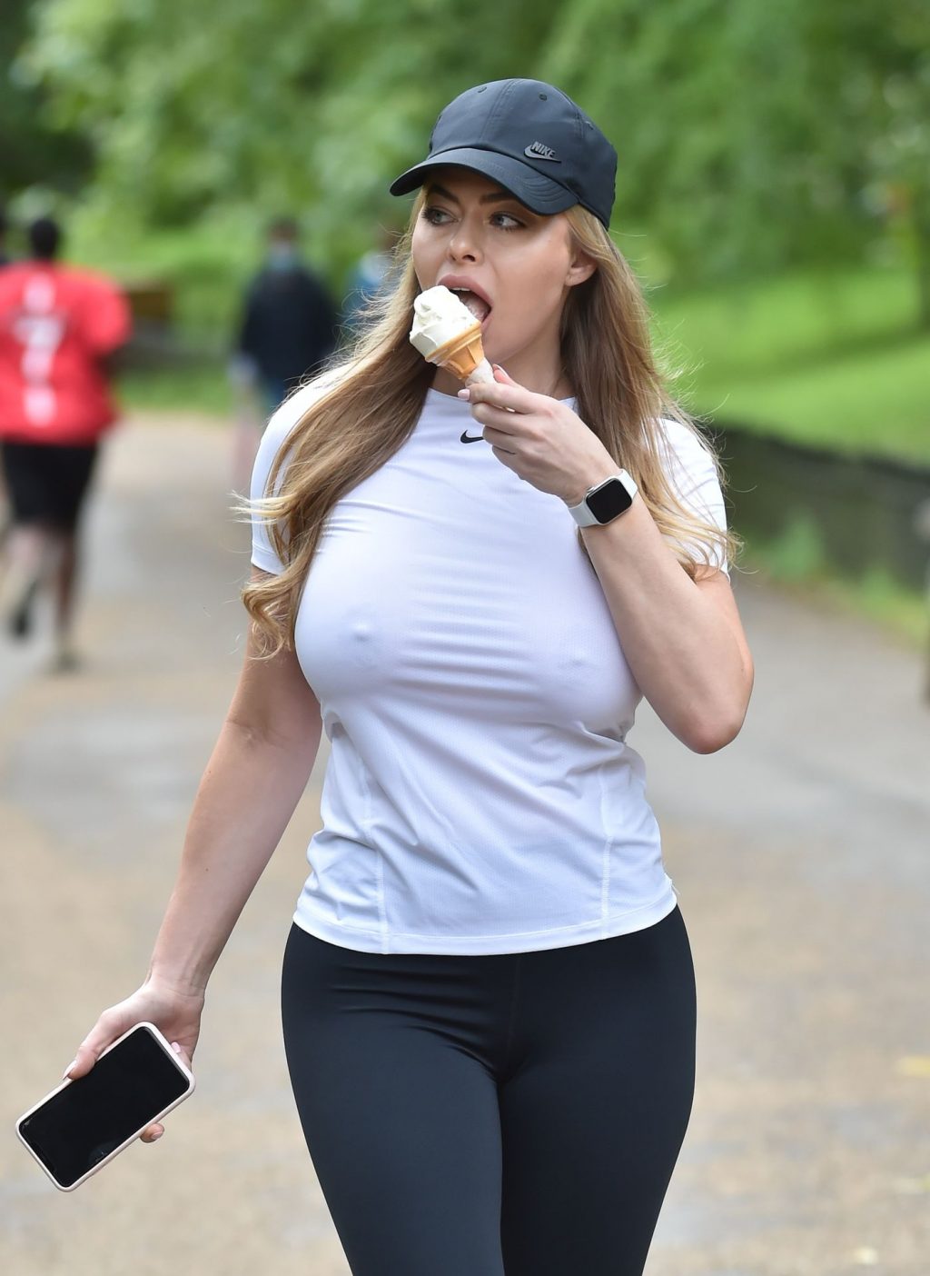Le mannequin Playboy et ex-petite amie de Charlie Sheen, Amanda Lauren, a été vue en train de sucer une glace lors d’une promenade à Hyde Park, le 19/07/2020. Amanda Lauren, qui a fait les gros titres pour dépenser 7 000 $ par mois en soins de beauté, a été aperçue dans un haut très moulant et transparent sans soutien-gorge !