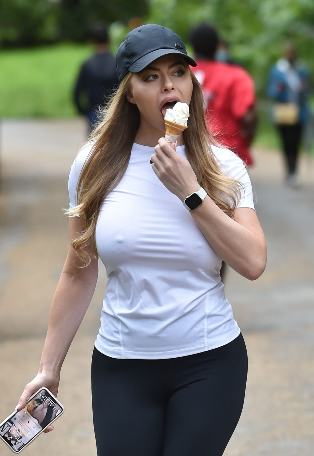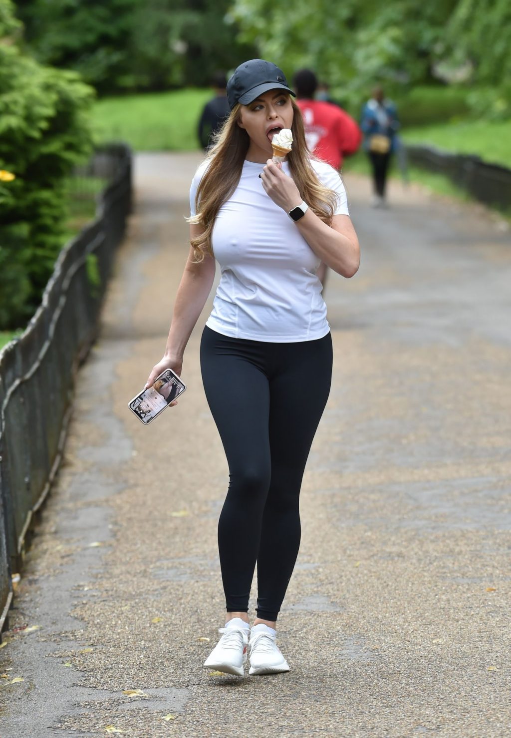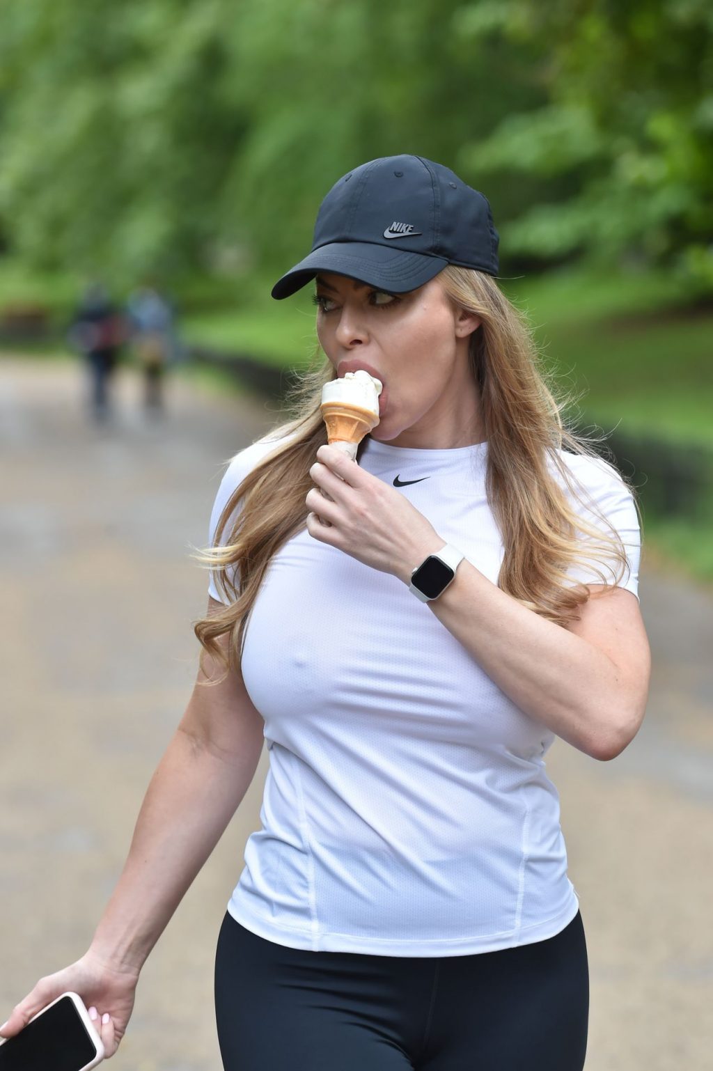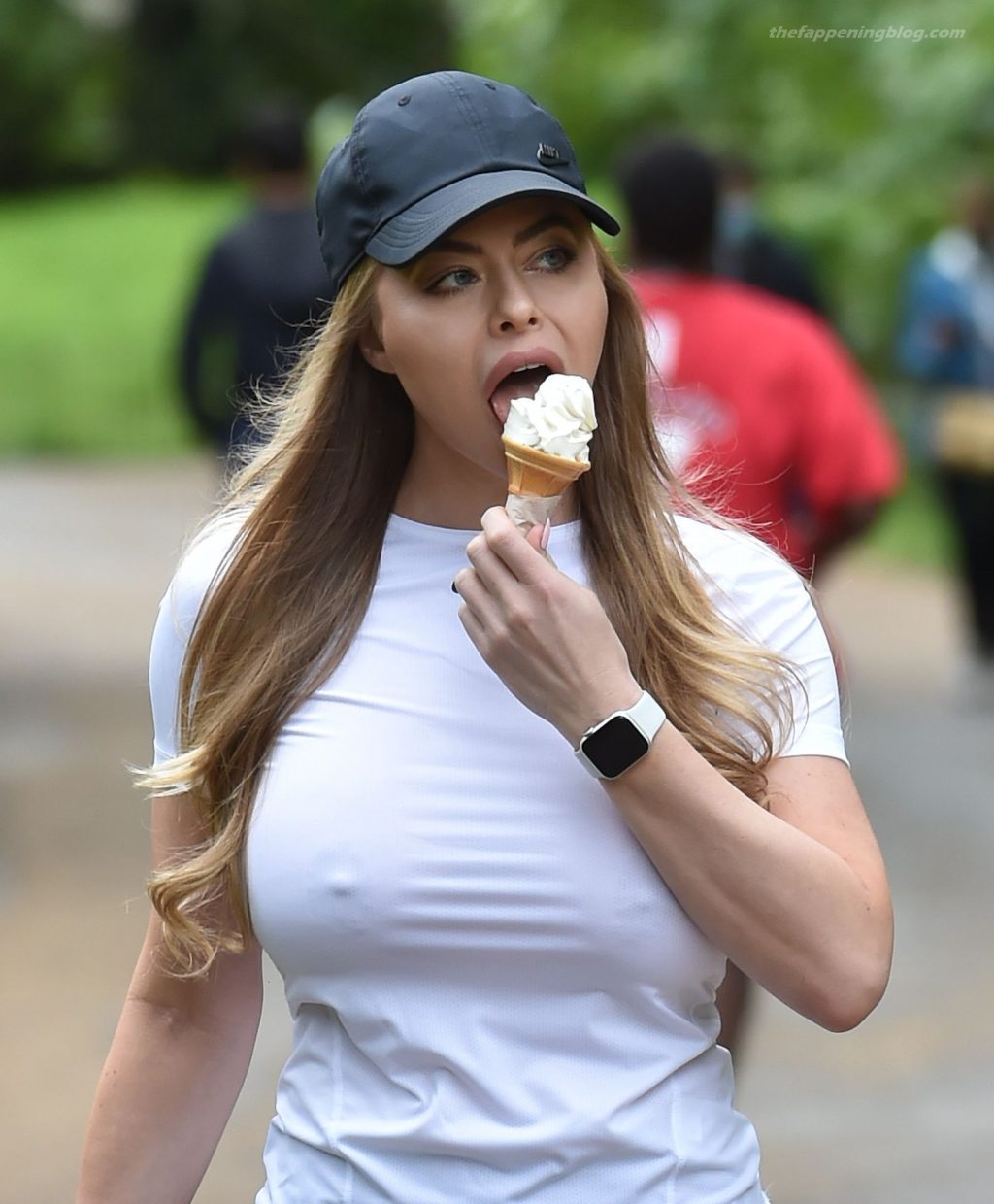 Le mannequin Playboy et ex-petite amie de Charlie Sheen, Amanda Lauren, a été vue en train de sucer une glace lors d’une promenade à Hyde Park, le 19/07/2020. Amanda Lauren, qui a fait les gros titres pour dépenser 7 000 $ par mois en soins de beauté, a été aperçue dans un haut très moulant et transparent sans soutien-gorge !