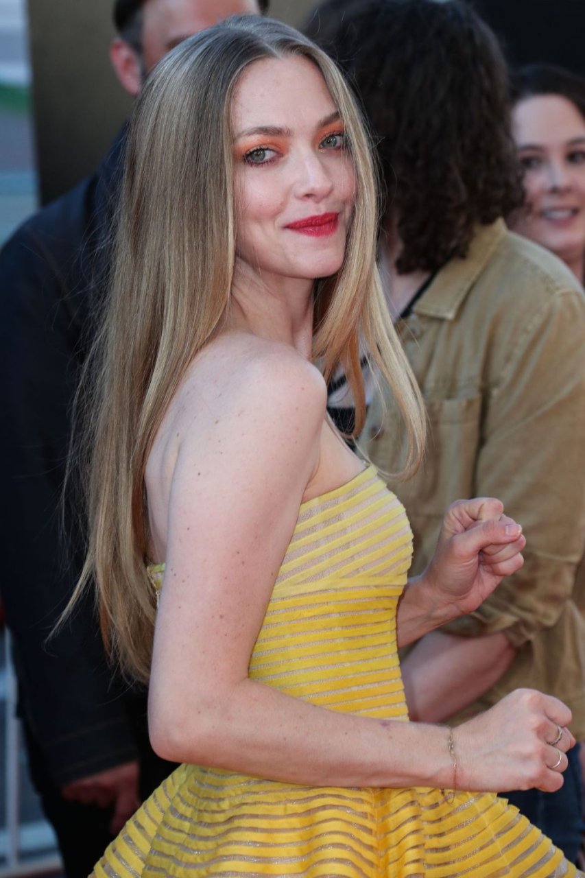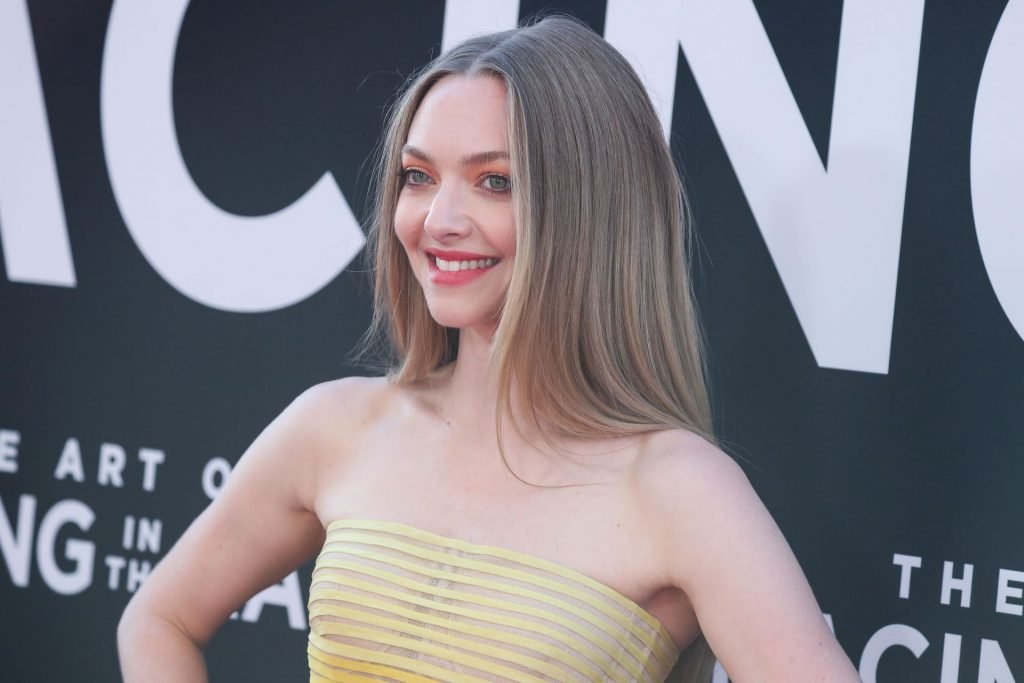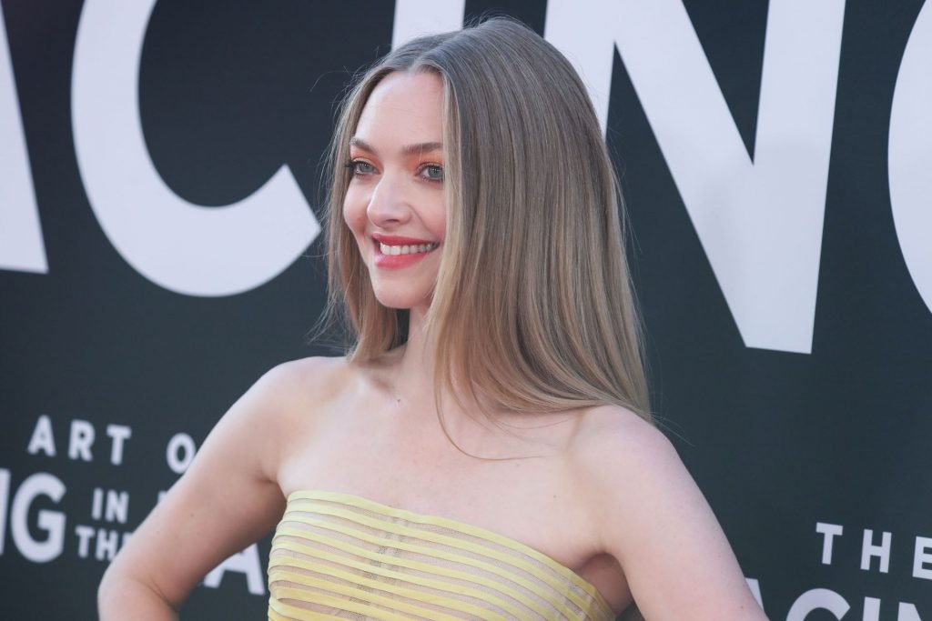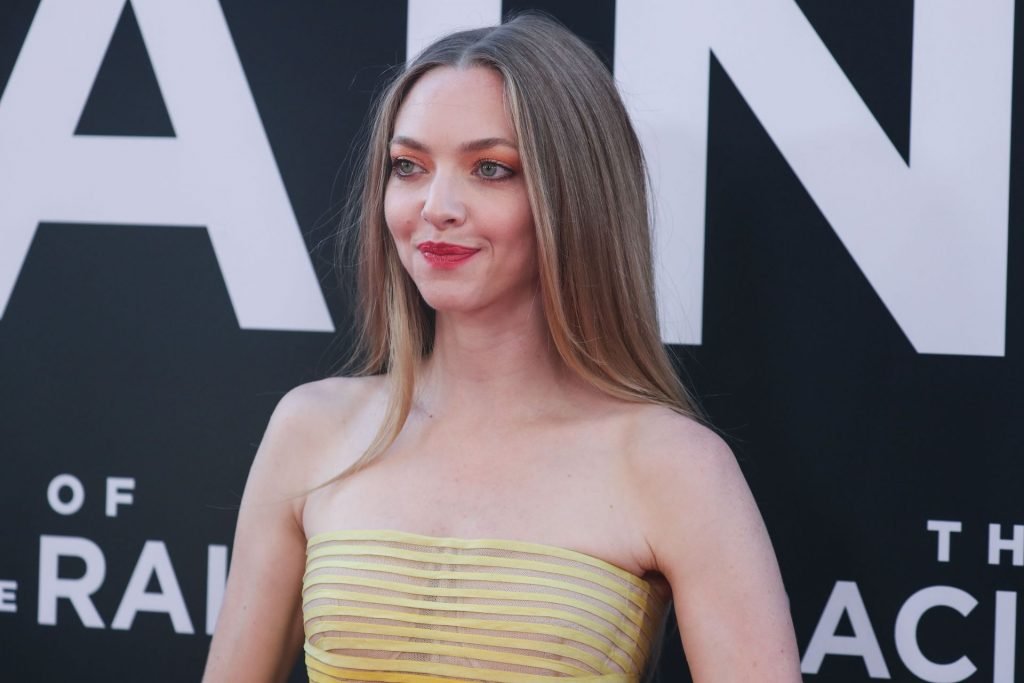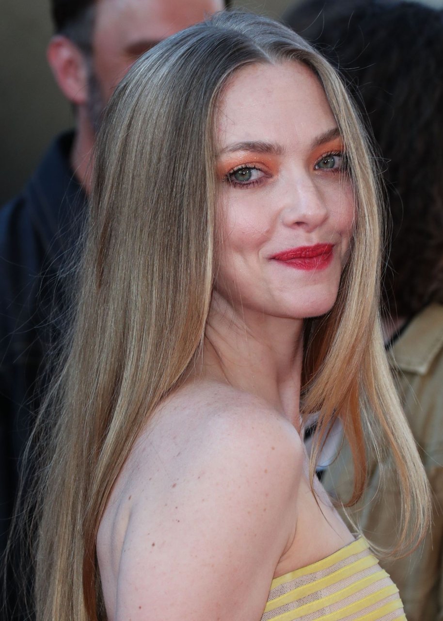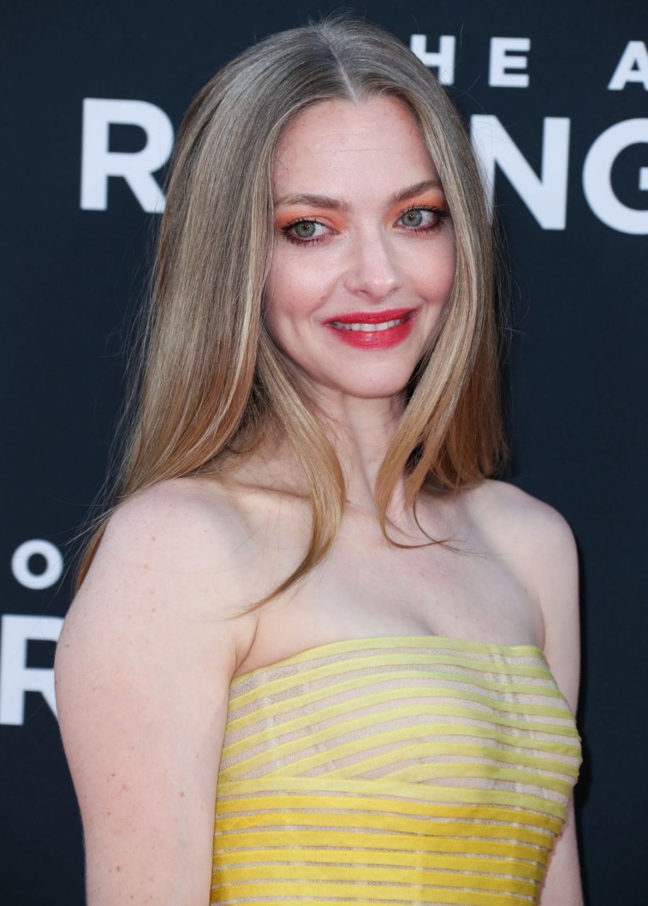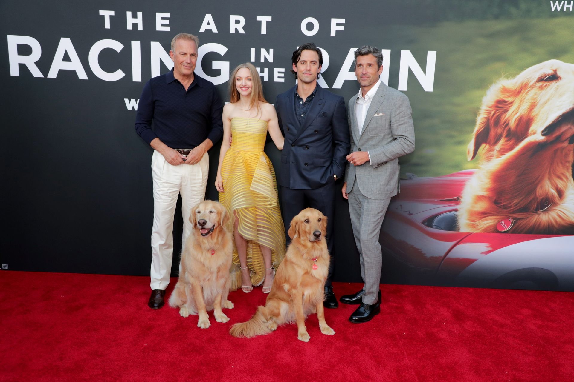 Actrice Amanda Seyfried portant une robe Oscar de la Renta, des talons Stuart Weitzman et des boucles d’oreilles Jennifer Meyer arrive à la première à Los Angeles du film de 20th Century Fox ‘The Art Of Racing In The Rain’ tenue au El Capitan Theatre à Hollywood, Los Angeles, le 01/08/2019.