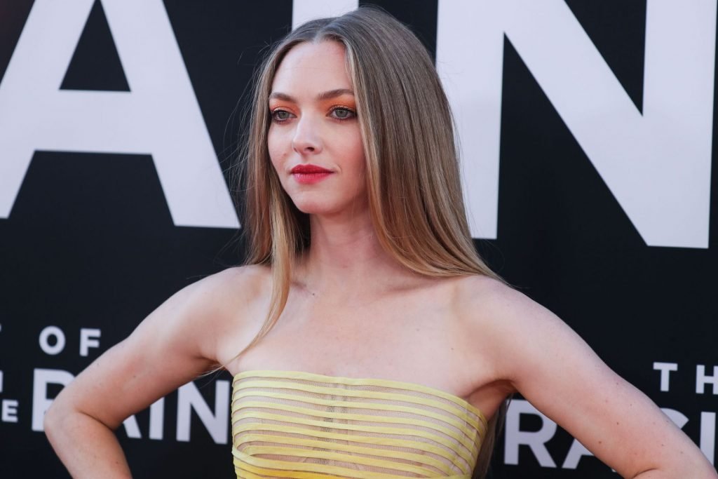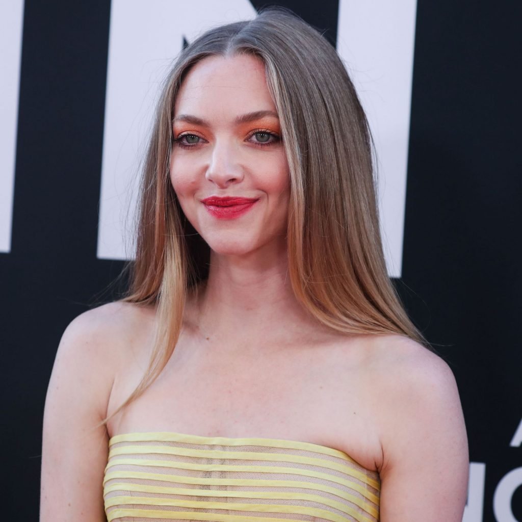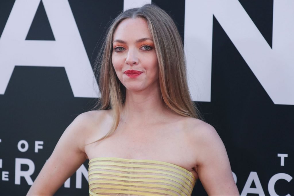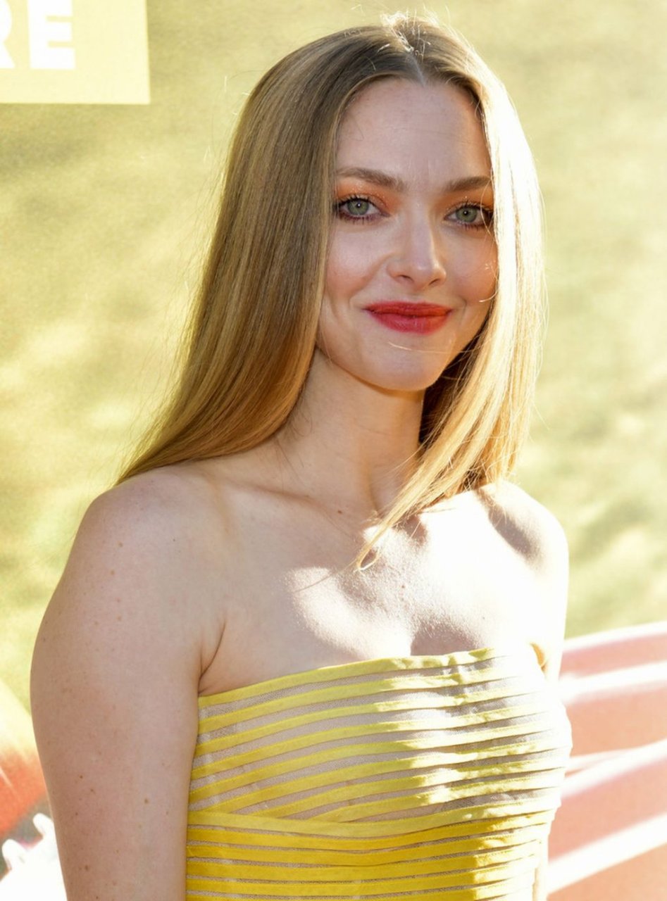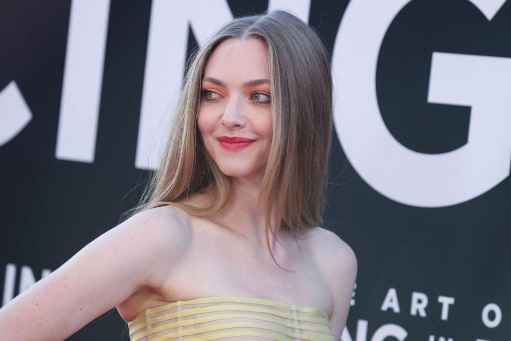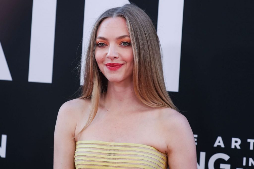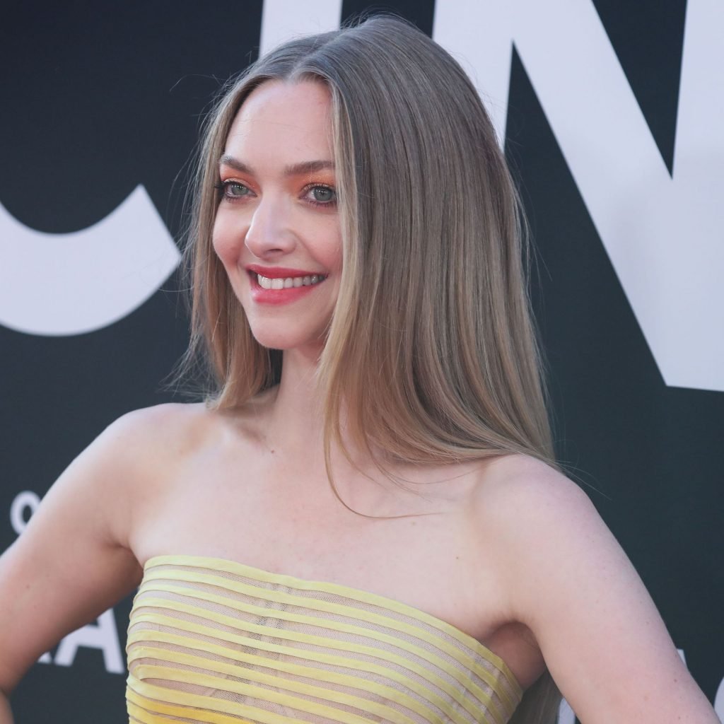 Actrice Amanda Seyfried portant une robe Oscar de la Renta, des talons Stuart Weitzman et des boucles d’oreilles Jennifer Meyer arrive à la première à Los Angeles du film de 20th Century Fox ‘The Art Of Racing In The Rain’ tenue au El Capitan Theatre à Hollywood, Los Angeles, le 01/08/2019.
