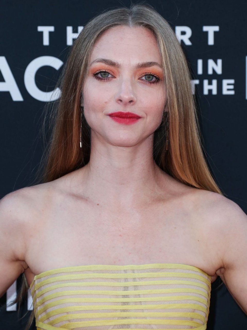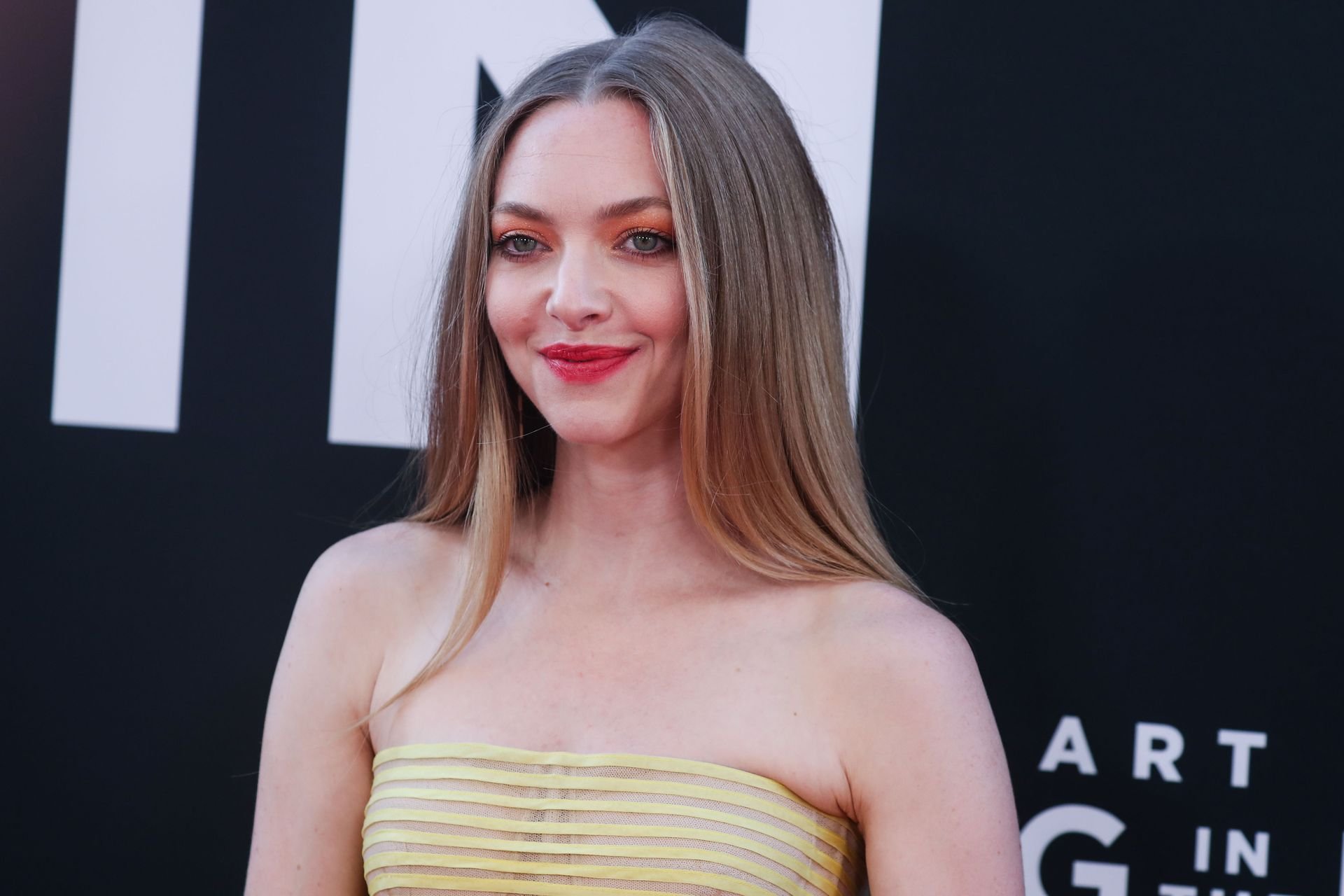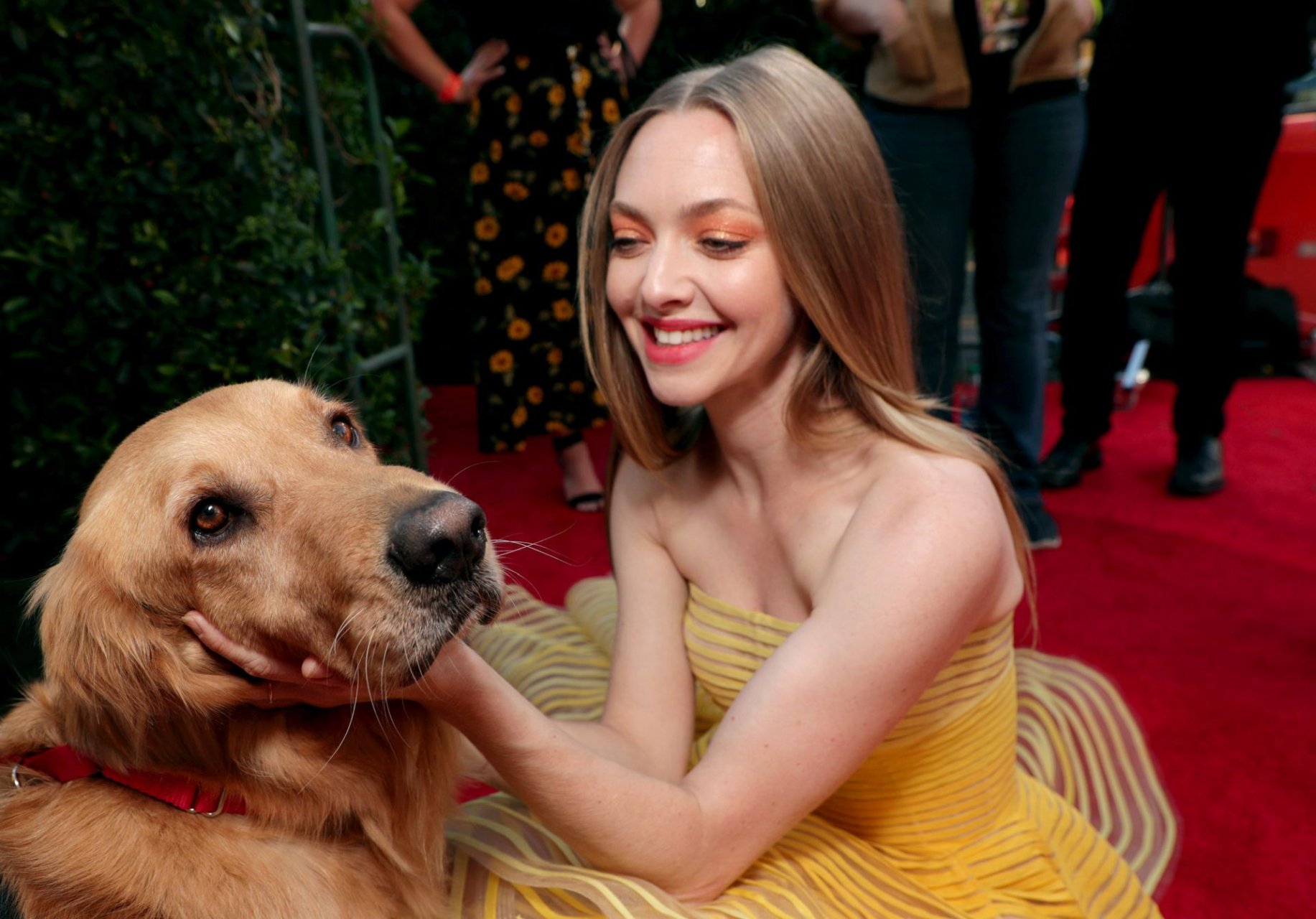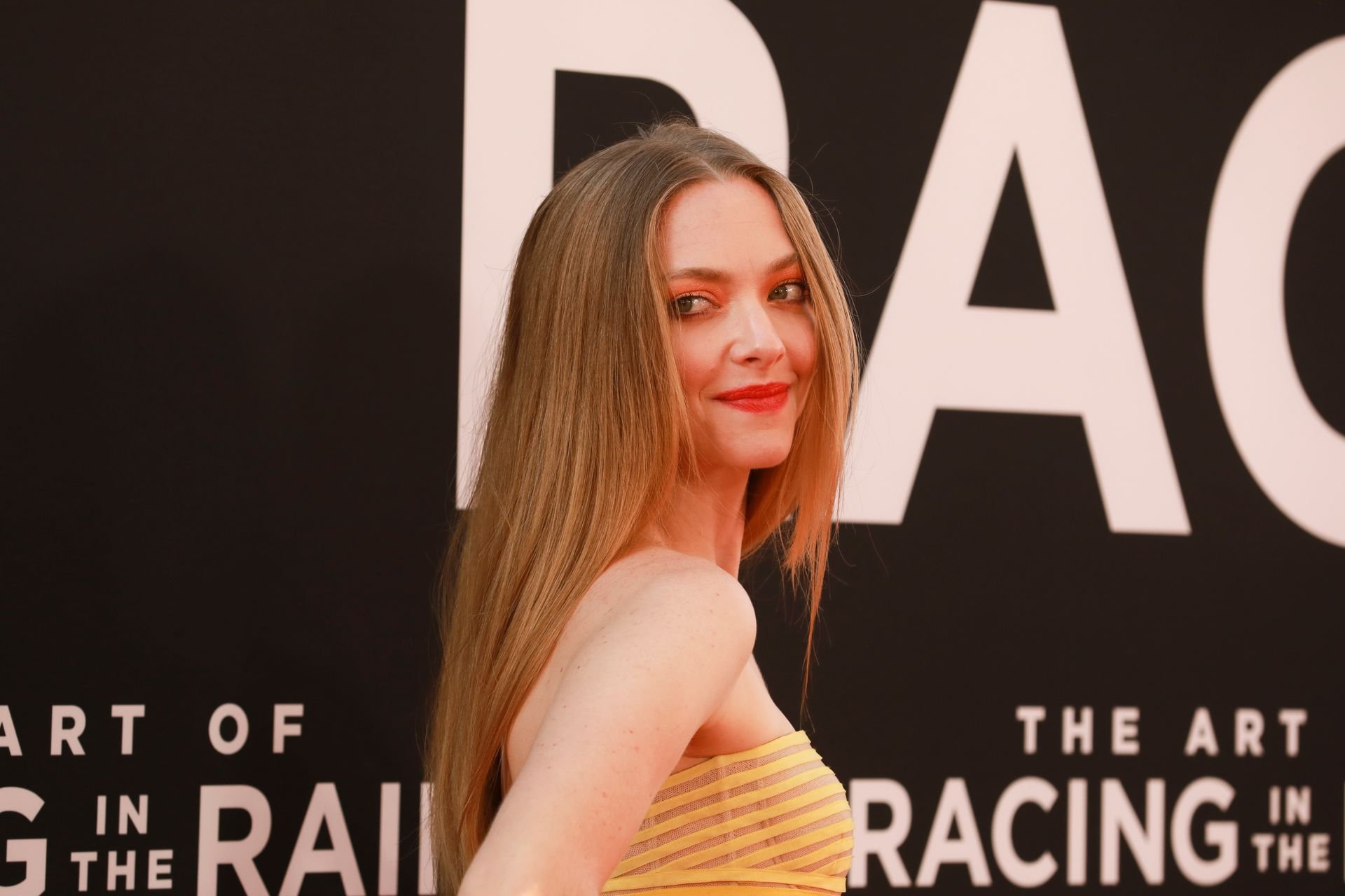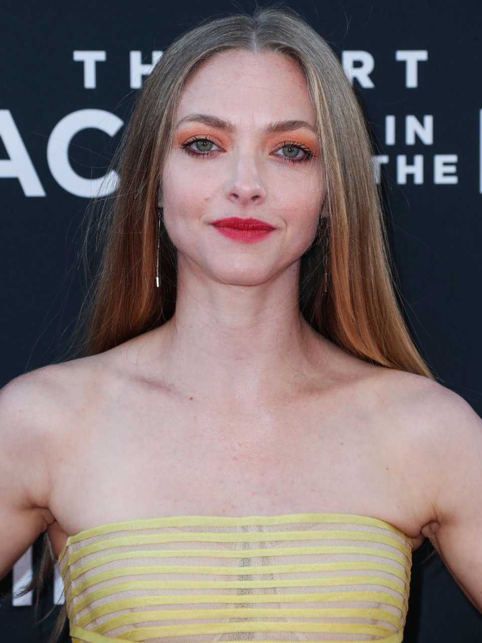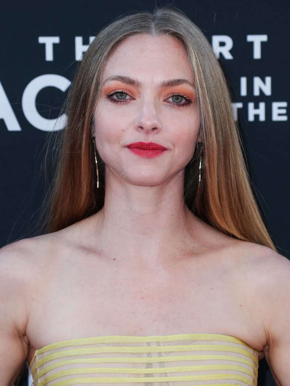 Actrice Amanda Seyfried portant une robe Oscar de la Renta, des talons Stuart Weitzman et des boucles d’oreilles Jennifer Meyer arrive à la première à Los Angeles du film de 20th Century Fox ‘The Art Of Racing In The Rain’ tenue au El Capitan Theatre à Hollywood, Los Angeles, le 01/08/2019.