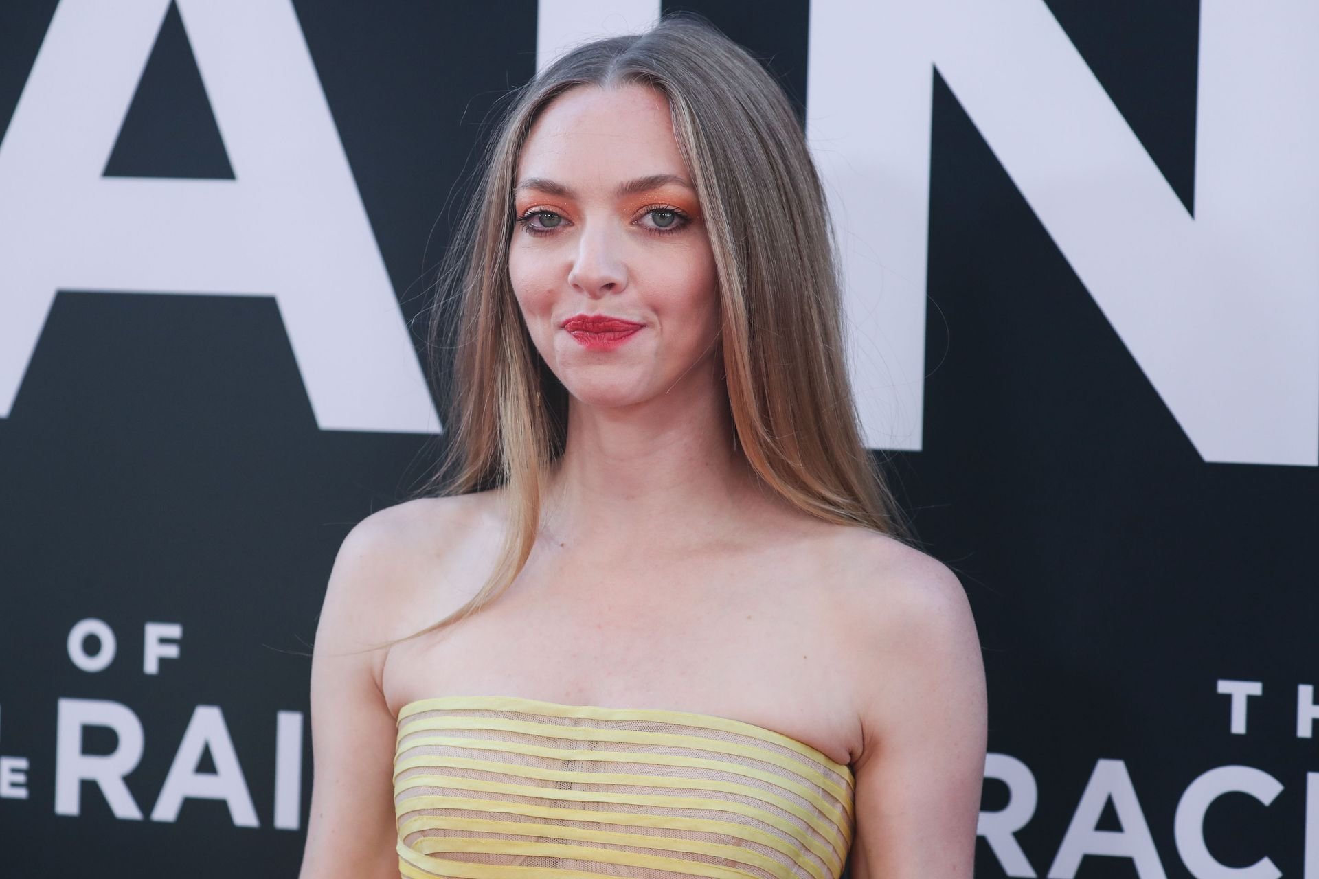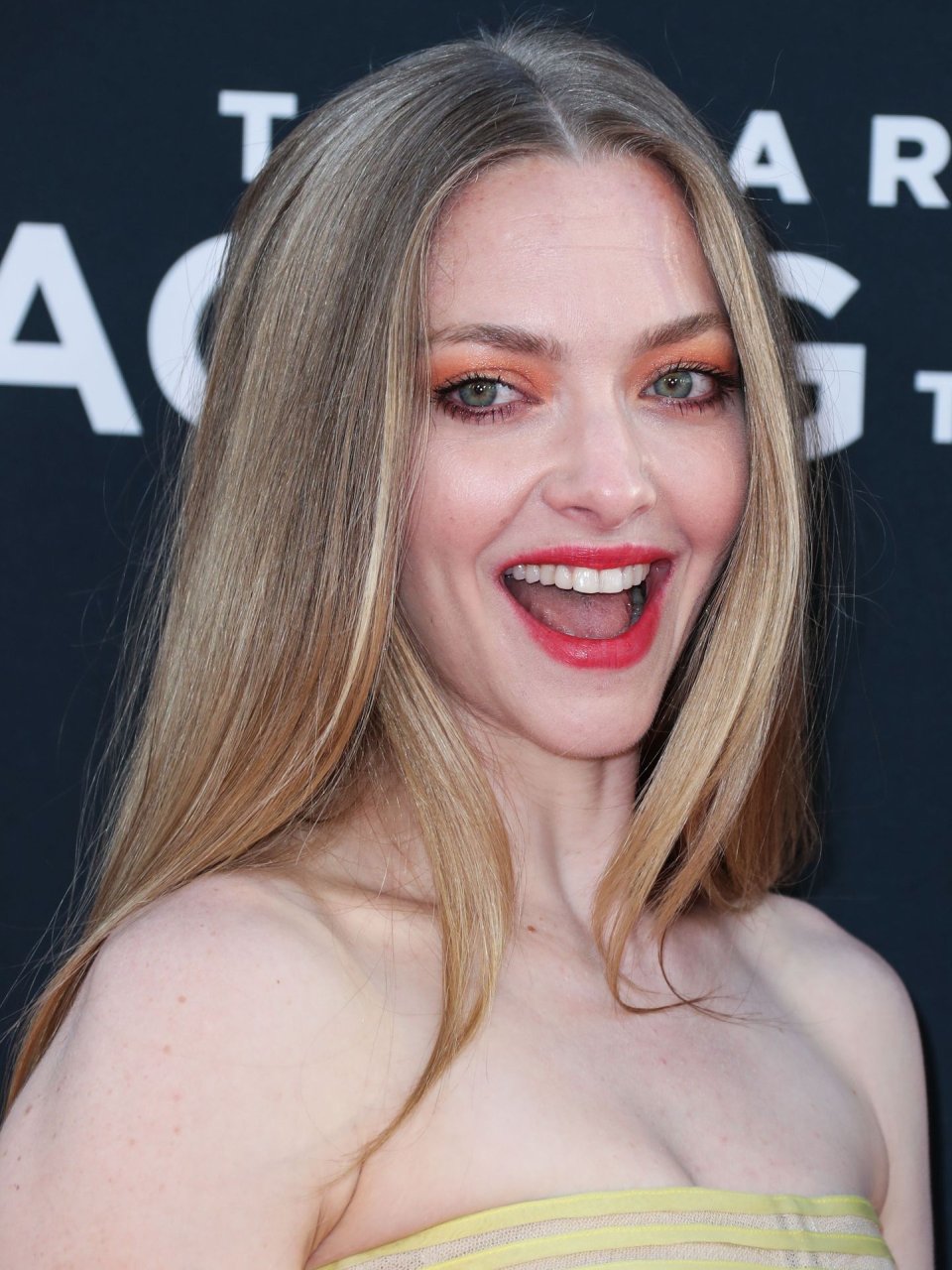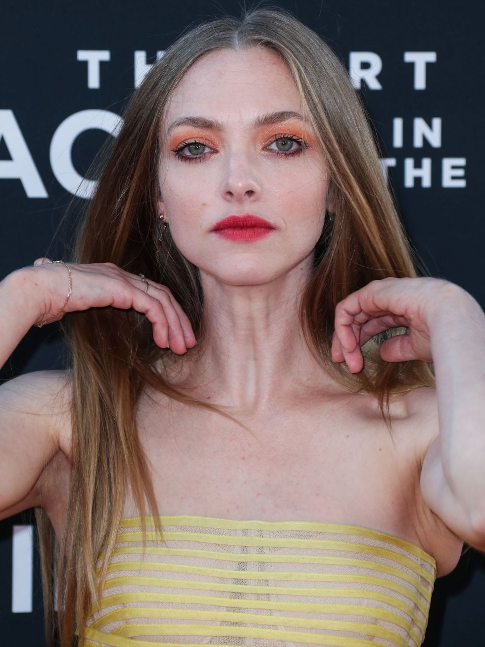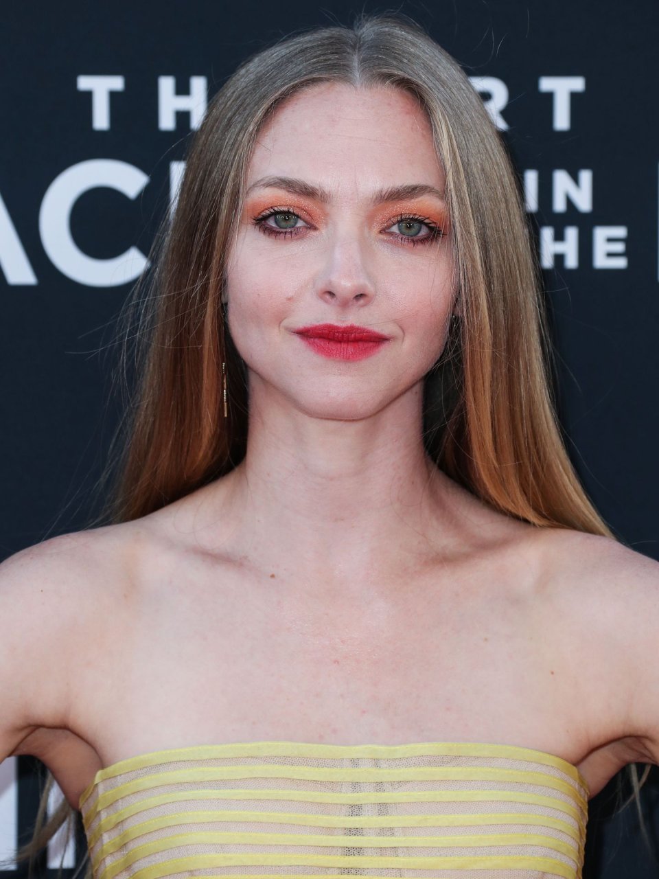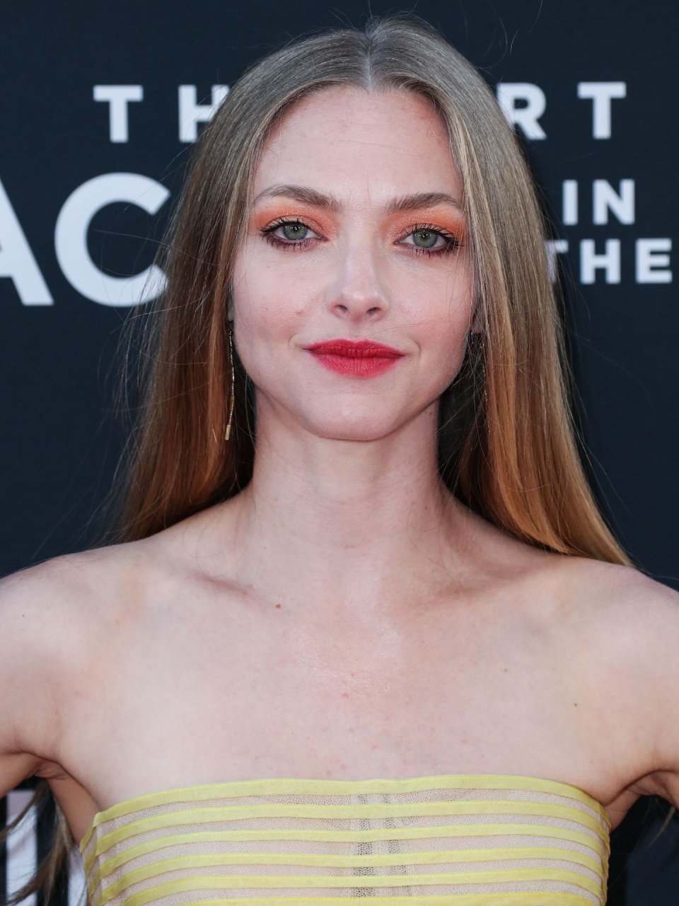Actrice Amanda Seyfried portant une robe Oscar de la Renta, des talons Stuart Weitzman et des boucles d’oreilles Jennifer Meyer arrive à la première à Los Angeles du film de 20th Century Fox ‘The Art Of Racing In The Rain’ tenue au El Capitan Theatre à Hollywood, Los Angeles, le 01/08/2019.