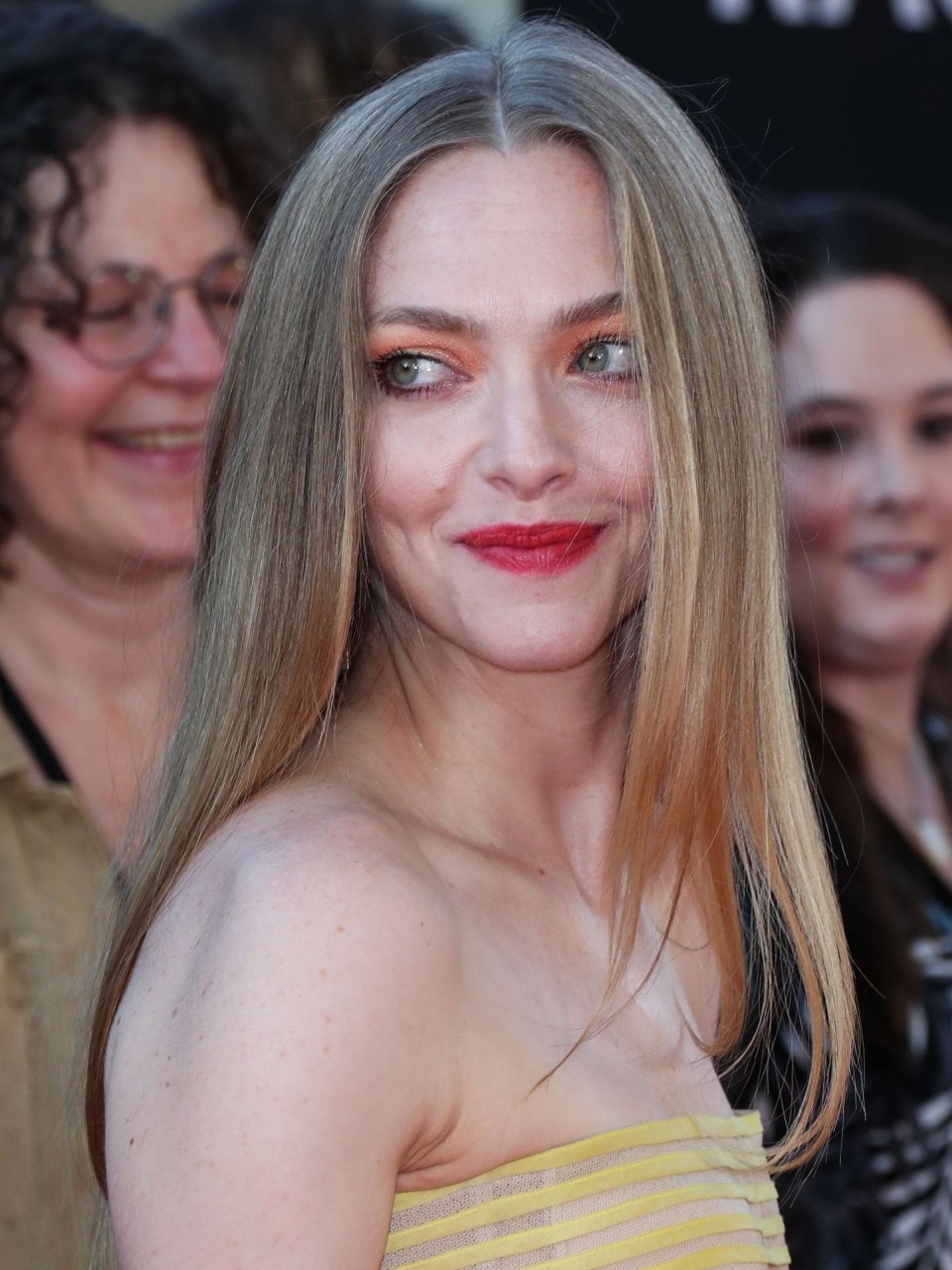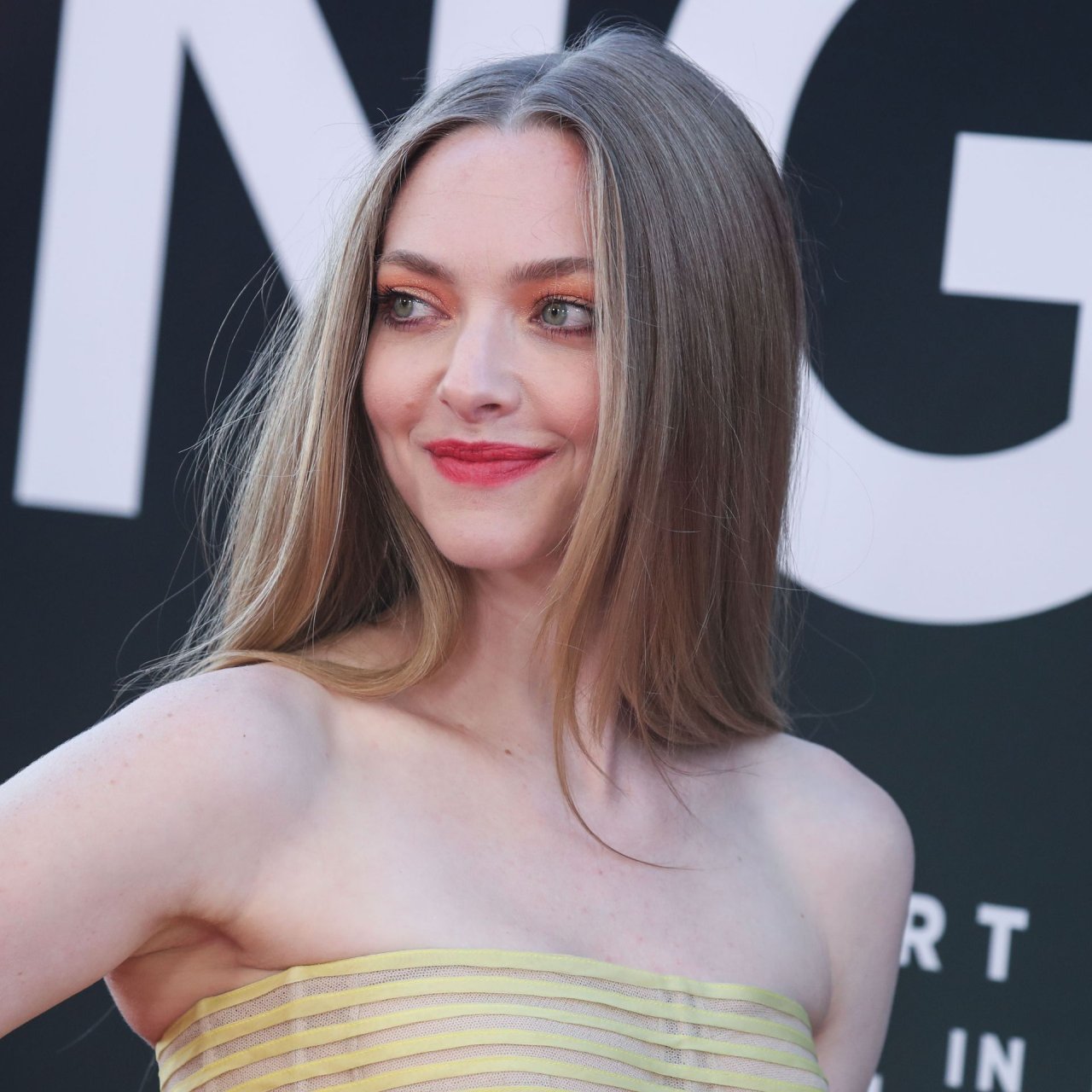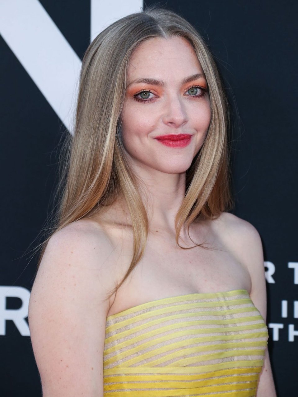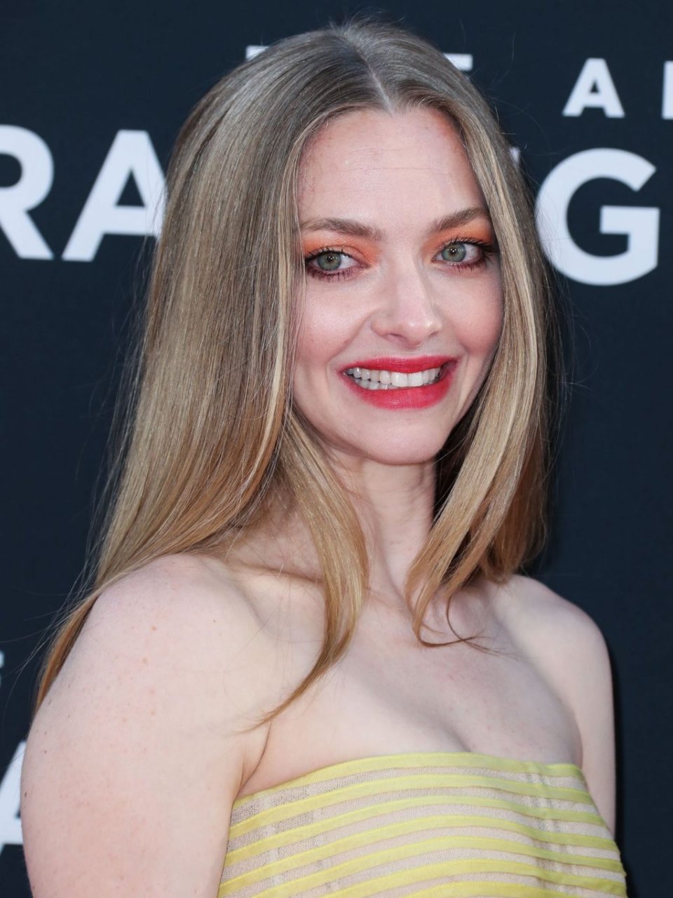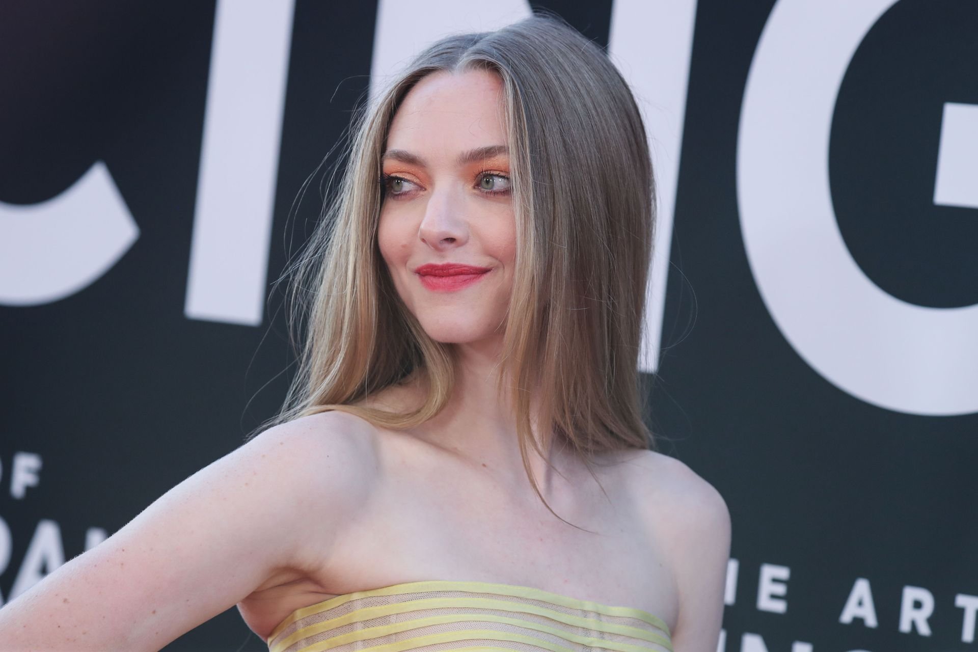 Actrice Amanda Seyfried portant une robe Oscar de la Renta, des talons Stuart Weitzman et des boucles d’oreilles Jennifer Meyer arrive à la première à Los Angeles du film de 20th Century Fox ‘The Art Of Racing In The Rain’ tenue au El Capitan Theatre à Hollywood, Los Angeles, le 01/08/2019.