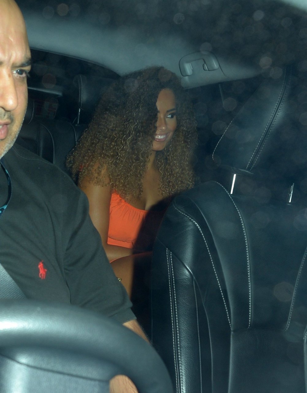 La star de la télé-réalité aux longues jambes Amber Gill a été vue dans une robe orange au Sure Women’s Everyday Gym à Londres, le 11/09/2019.