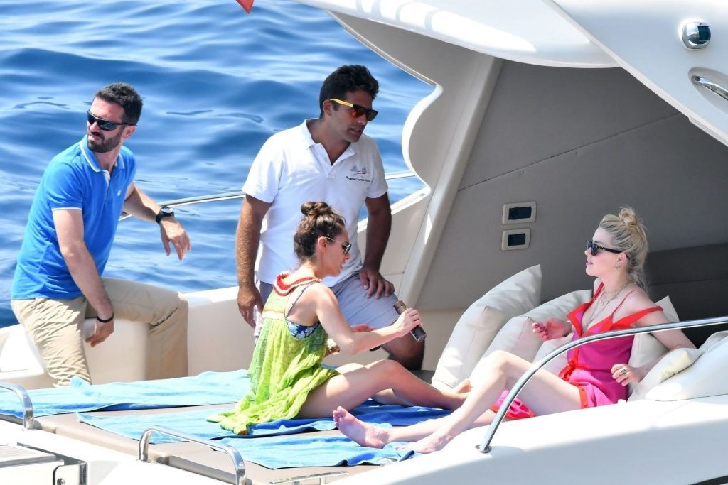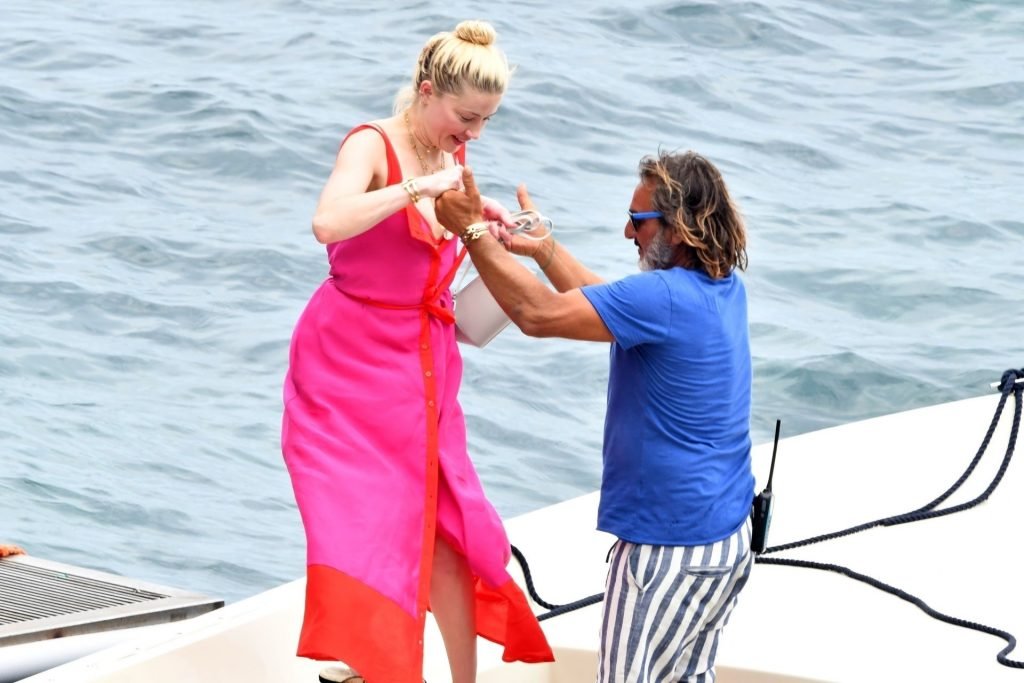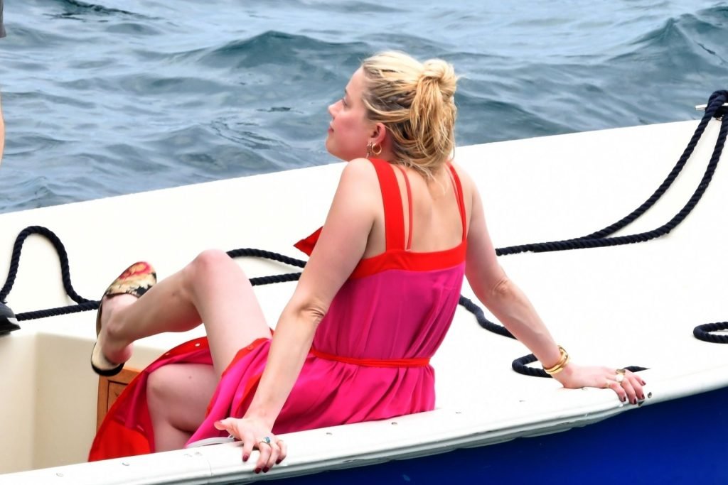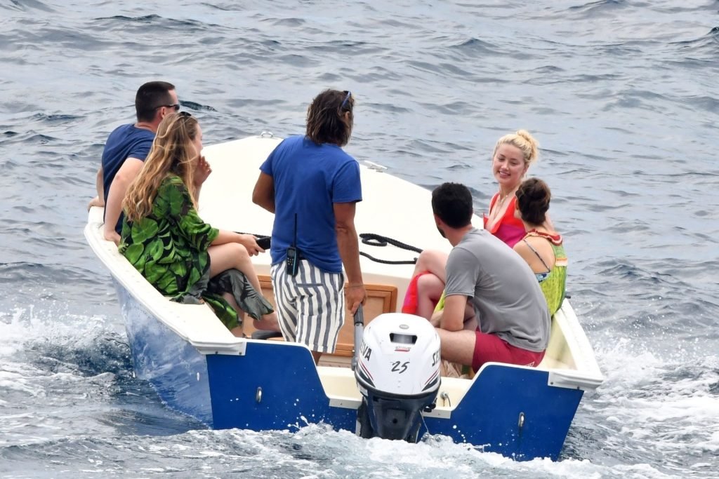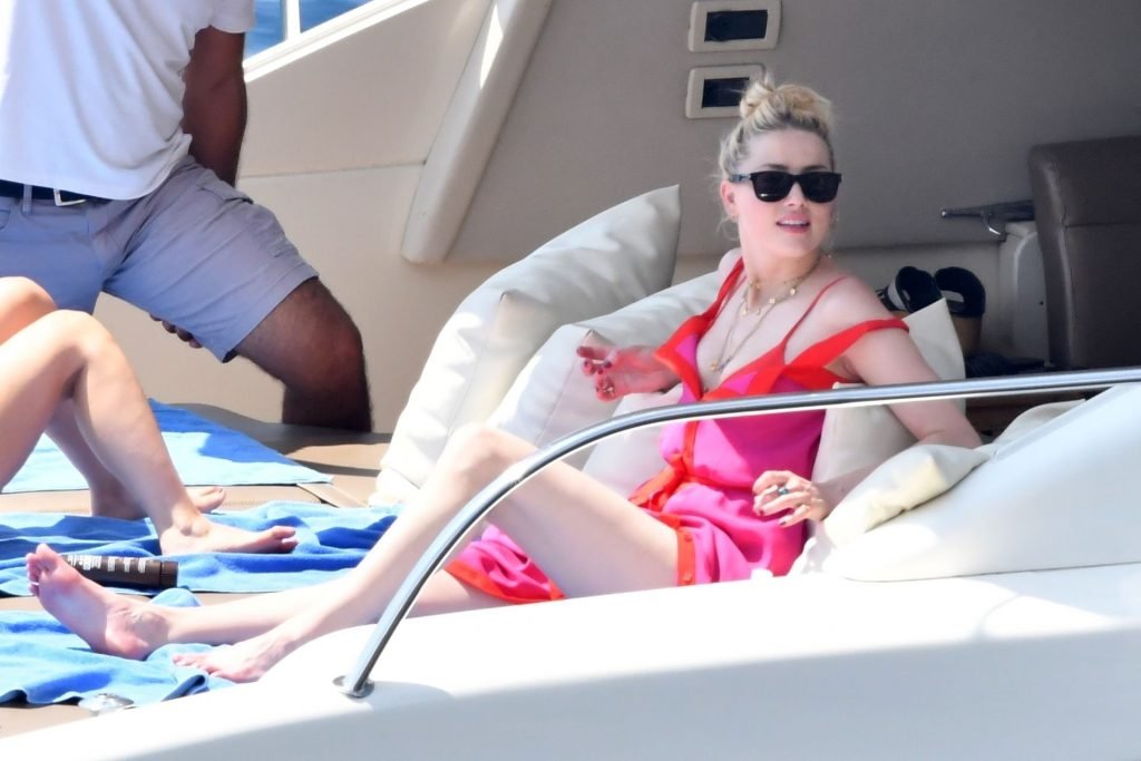 L’ex-femme de Johnny Depp, l’actrice Amber Heard, profite d’une journée en bikini rouge avec des amis à bord d’un yacht sur la côte amalfitaine, 27/07/2019.
