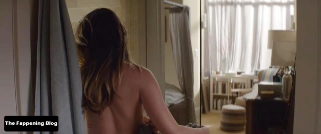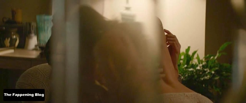 Nous la voyons ensuite au lit avec l’homme, allongée sur le dos et montrant la plupart de ses seins avec un petit aperçu de ce qui semble être des cache-tétons. Enfin, on aperçoit un peu de son sein droit de côté alors qu’elle entre dans une douche.
