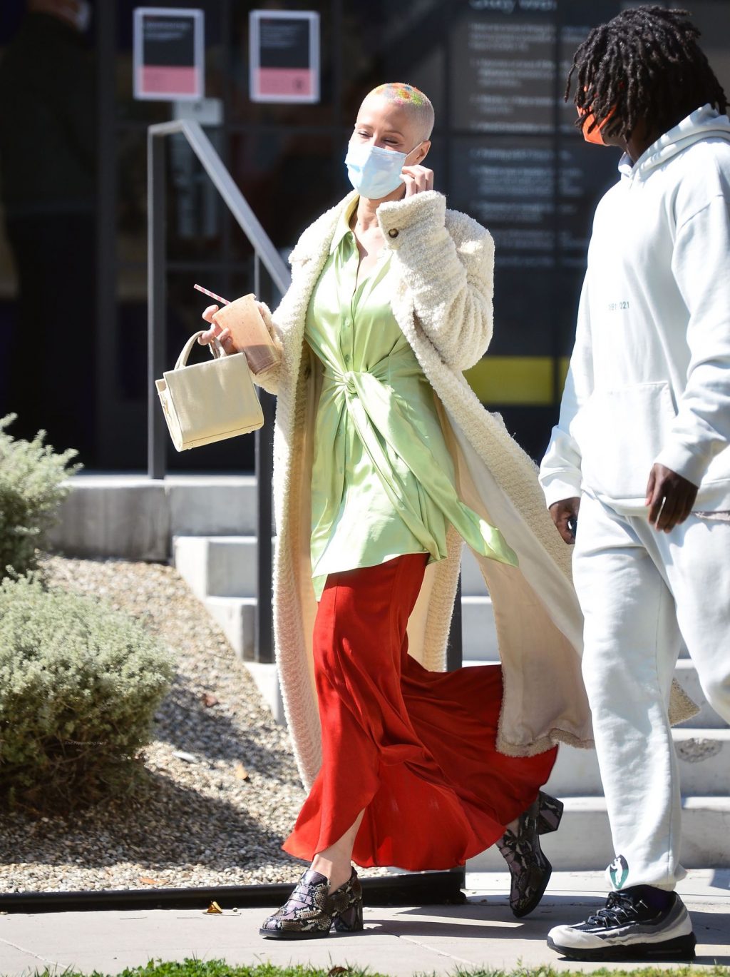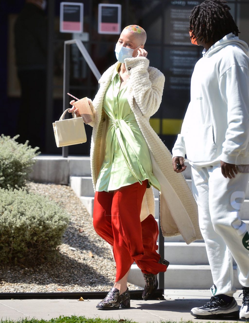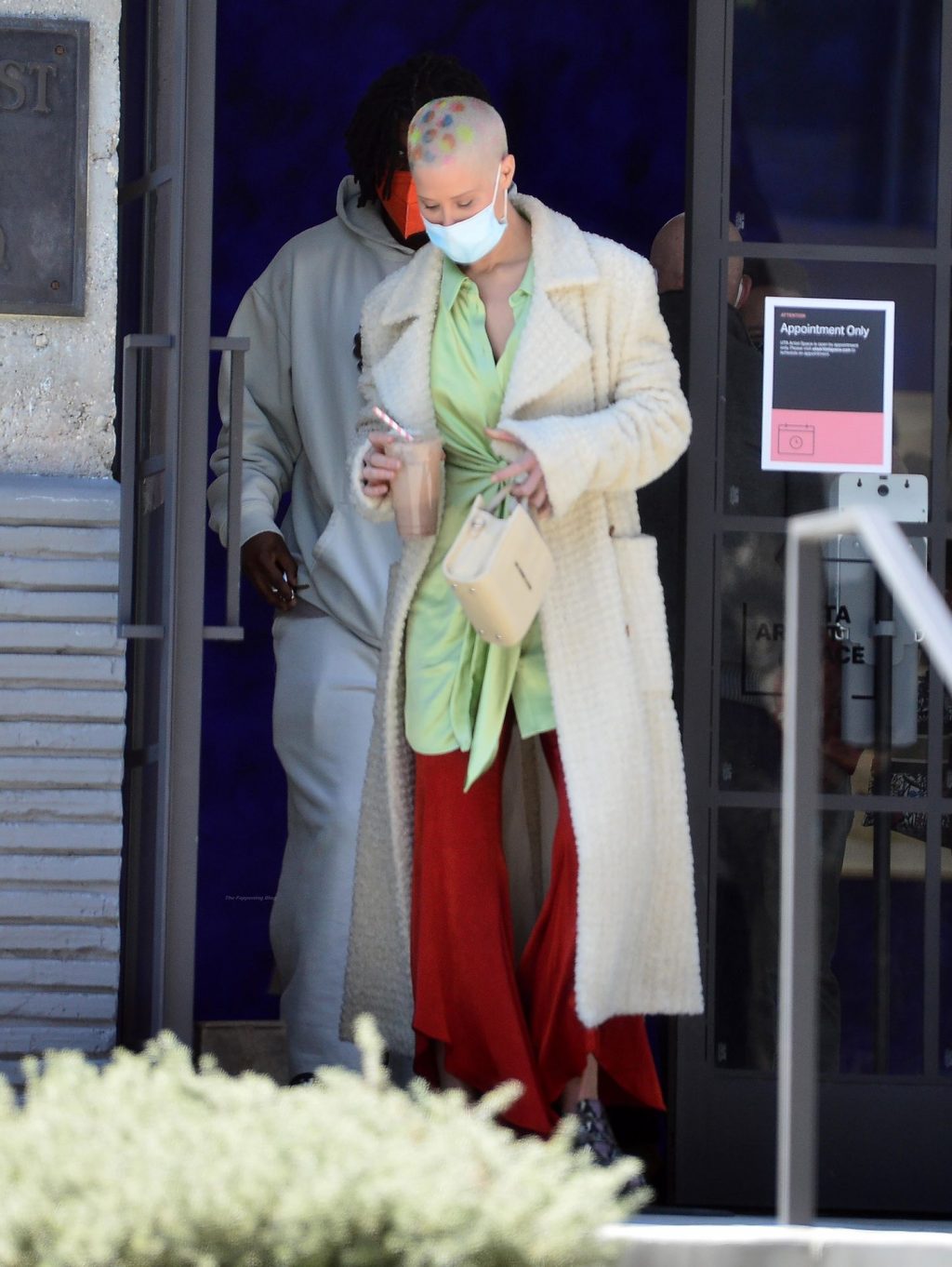 Amber Rose exhibe sa nouvelle coiffure funky multicolore alors qu’elle est vue avec un homme mystérieux quittant l’UTA Artist Space à Beverly Hills, le 14/03/2021.