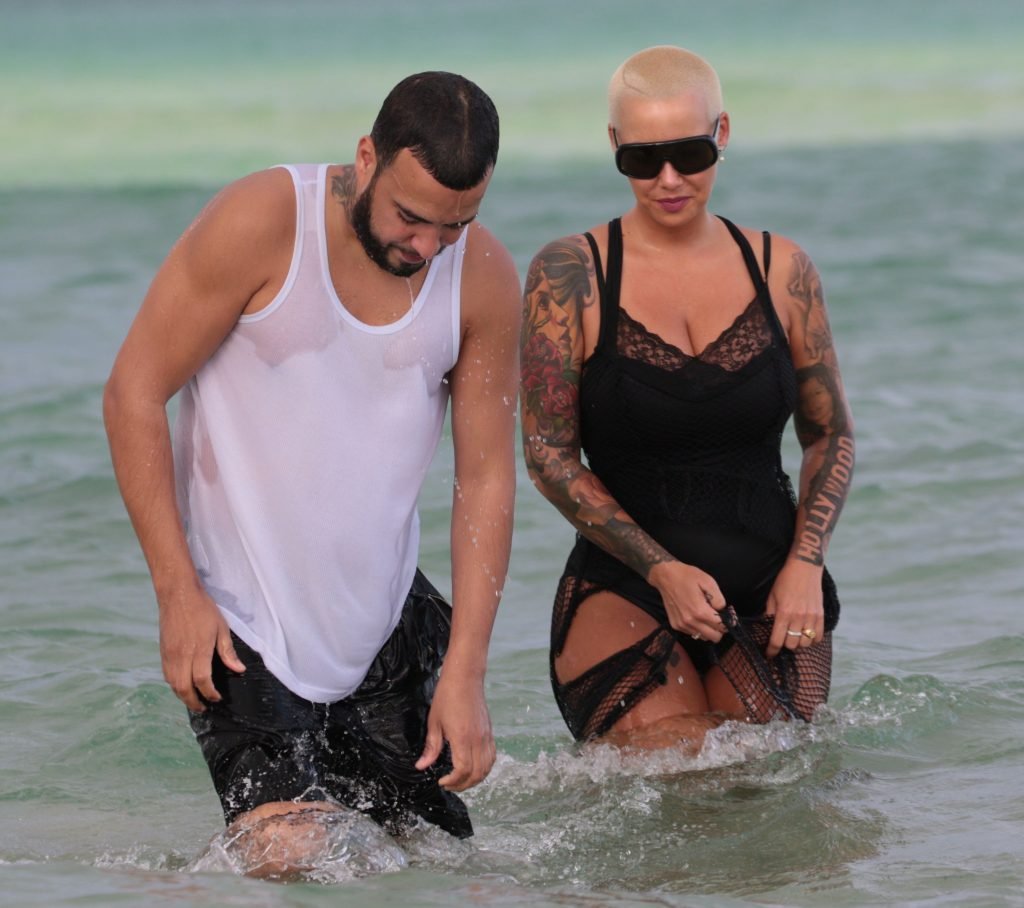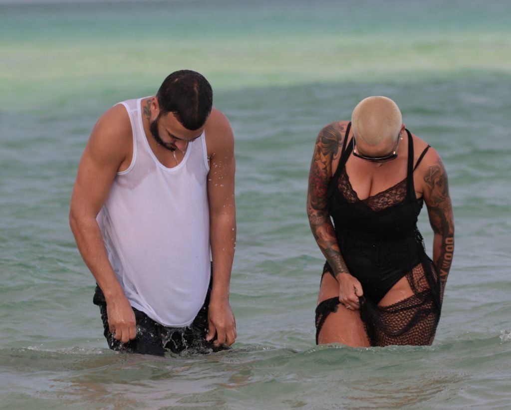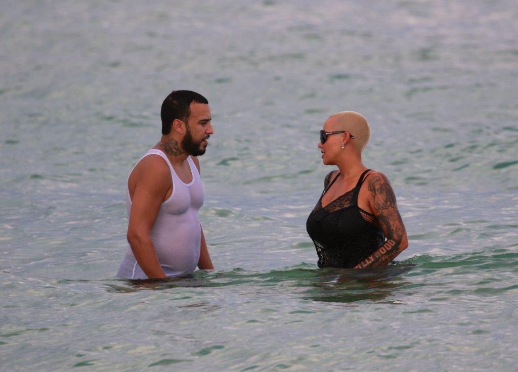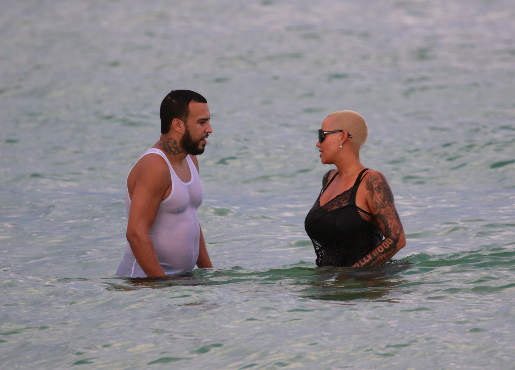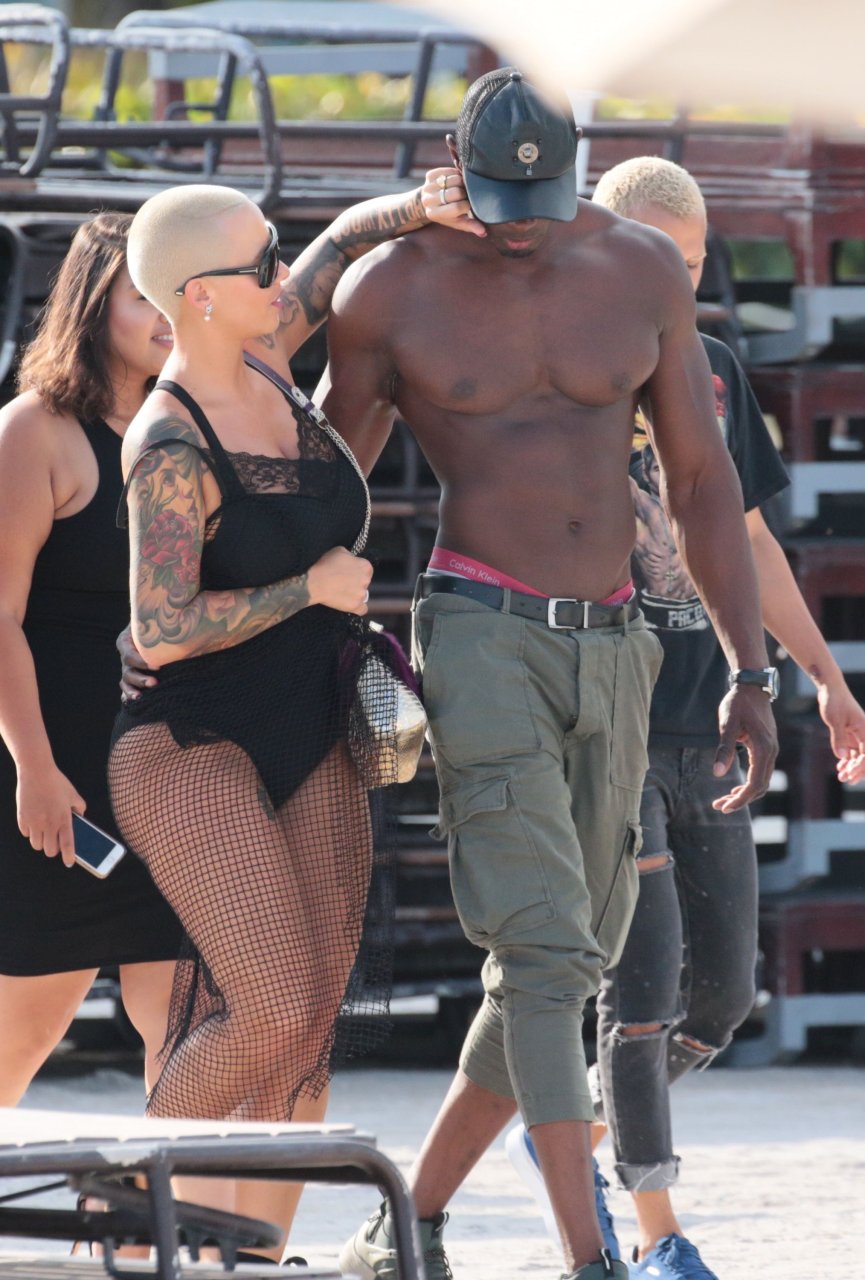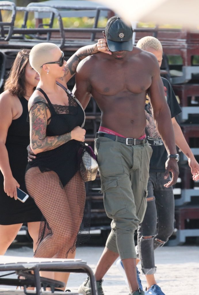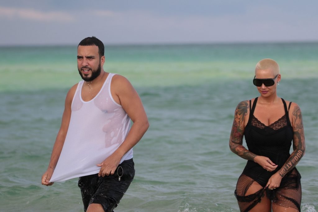 Amber Rose et son petit ami se montrent affectueux sur la plage de Miami Beach, 14/05/2017. Amber Levonchuck (Rose) est un mannequin, rappeuse et actrice américaine (Black-ish (série TV), 2015). Âge : 33 ans.