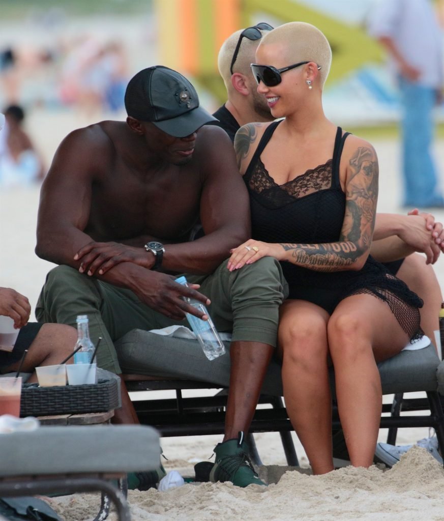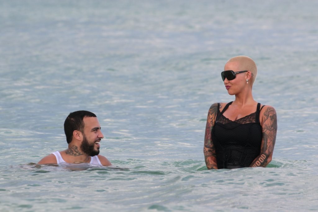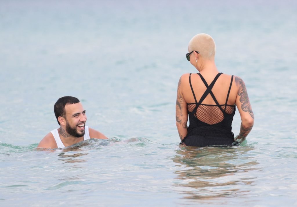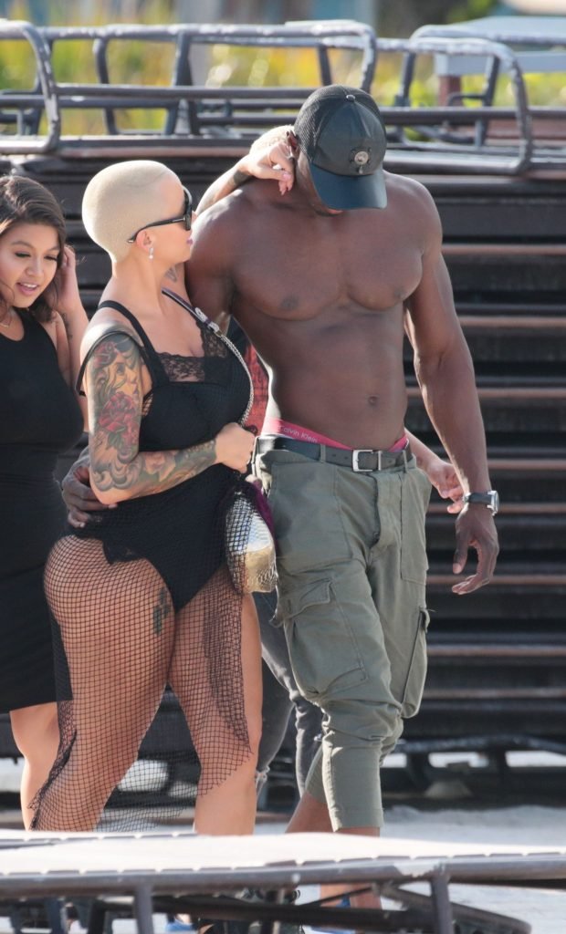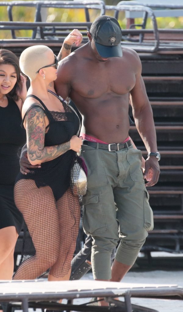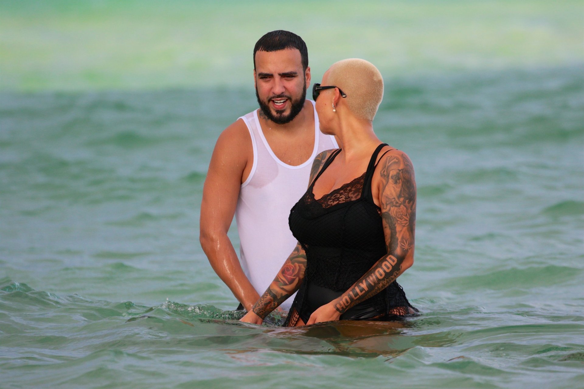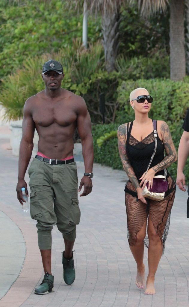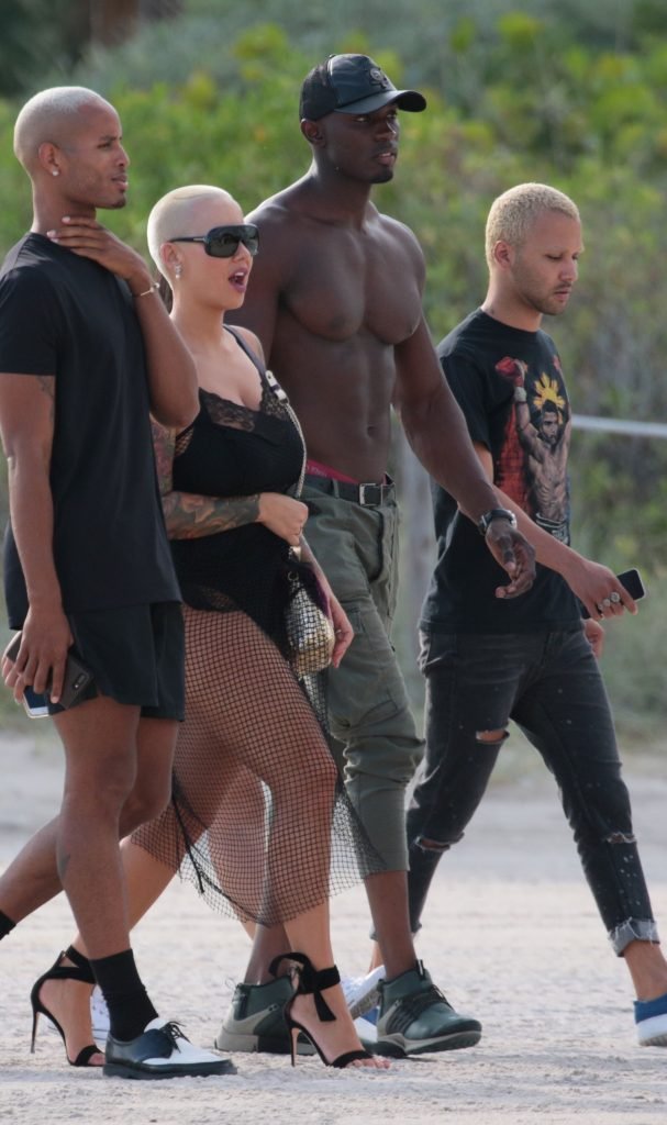 Amber Rose et son petit ami se montrent affectueux sur la plage de Miami Beach, 14/05/2017. Amber Levonchuck (Rose) est un mannequin, rappeuse et actrice américaine (Black-ish (série TV), 2015). Âge : 33 ans.