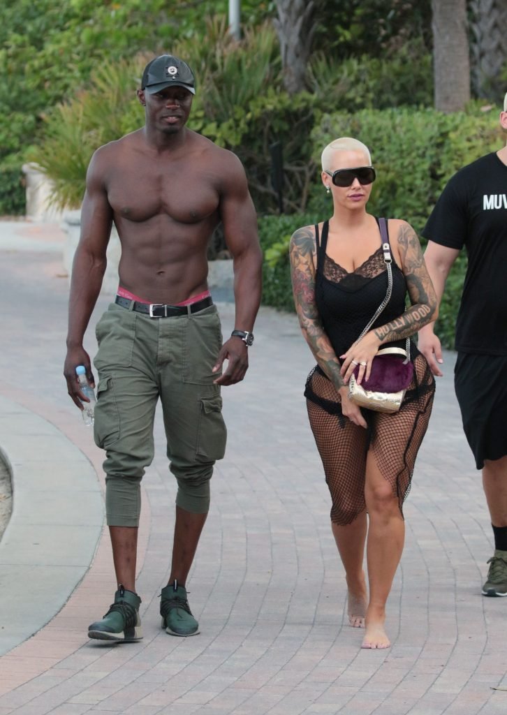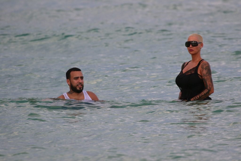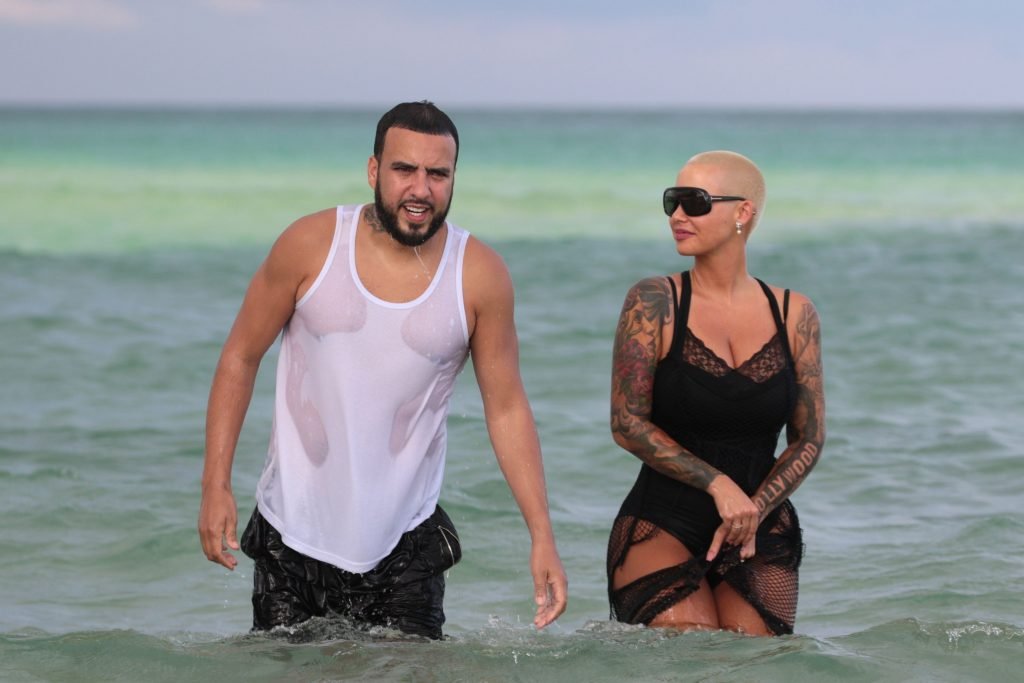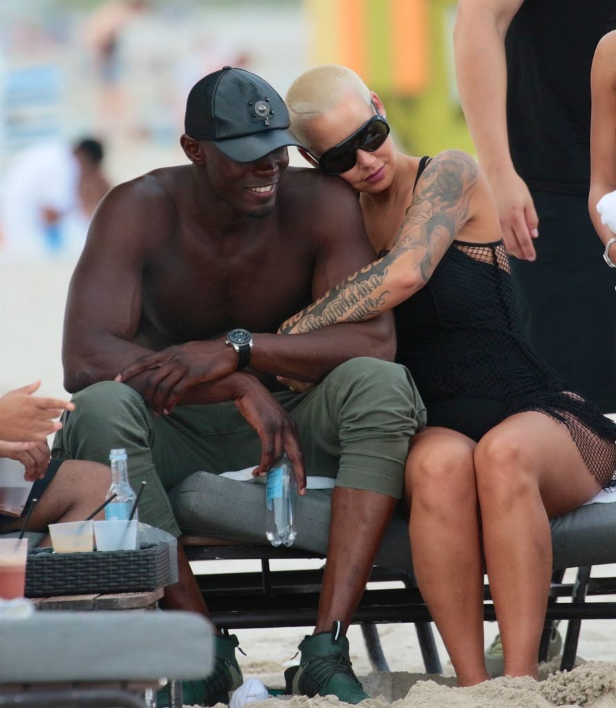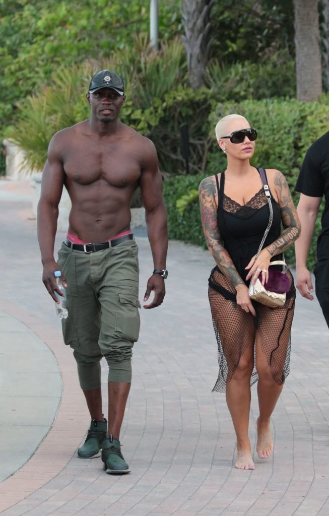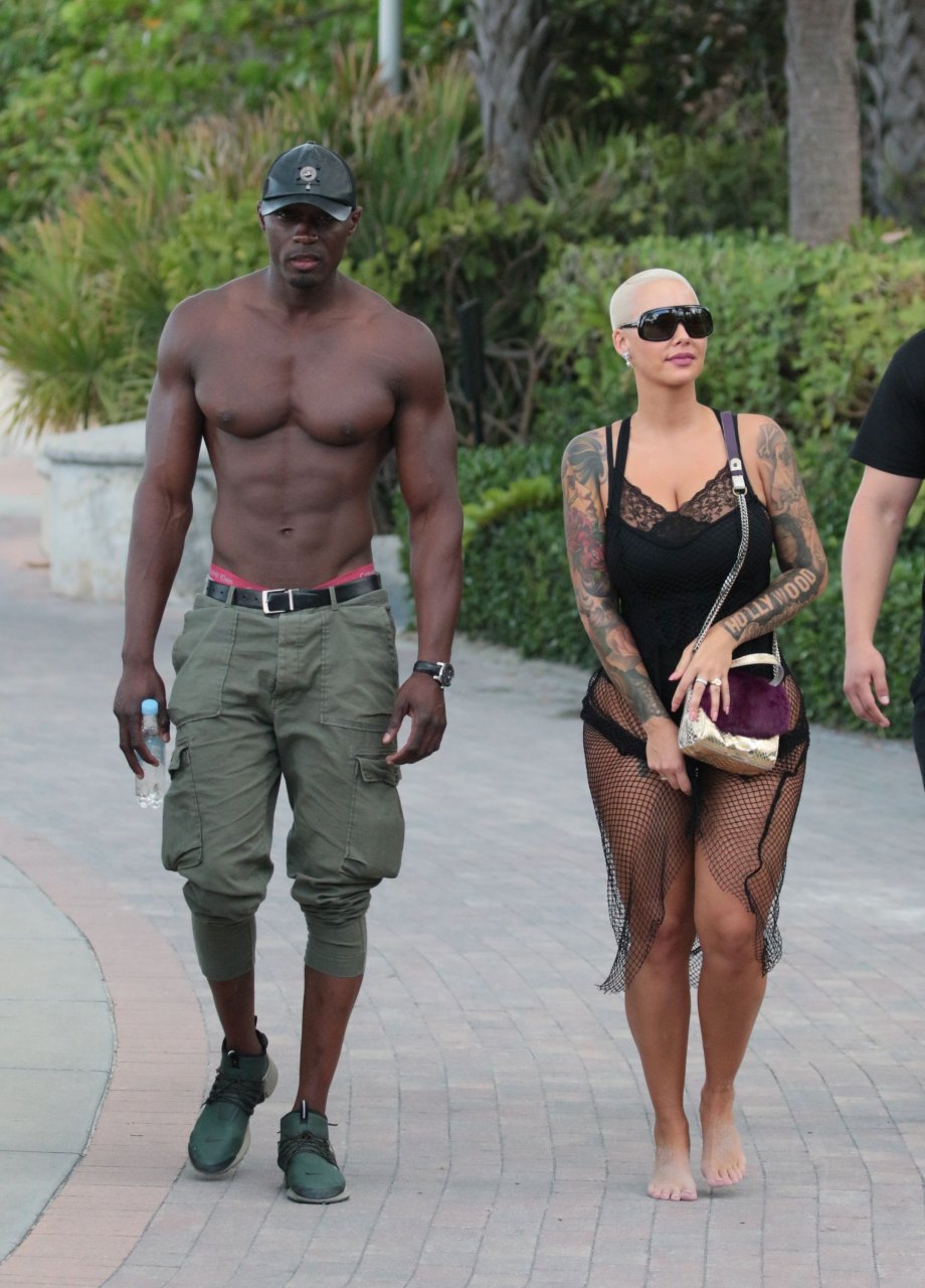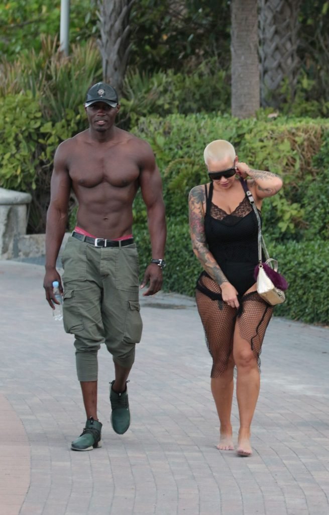 Amber Rose et son petit ami se montrent affectueux sur la plage de Miami Beach, 14/05/2017. Amber Levonchuck (Rose) est un mannequin, rappeuse et actrice américaine (Black-ish (série TV), 2015). Âge : 33 ans.