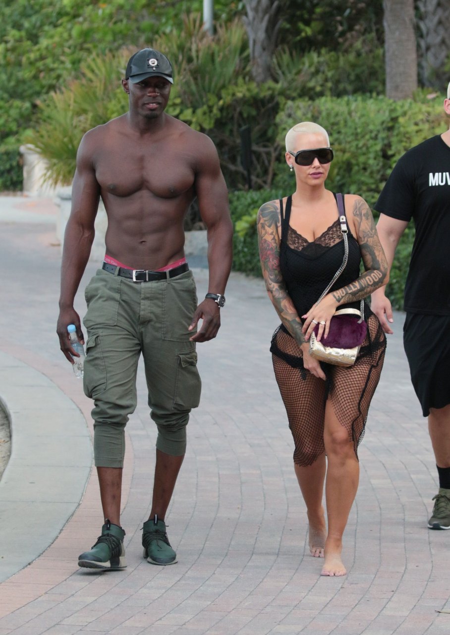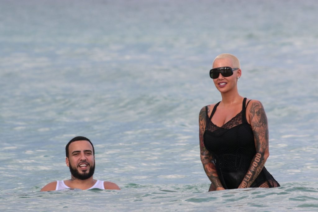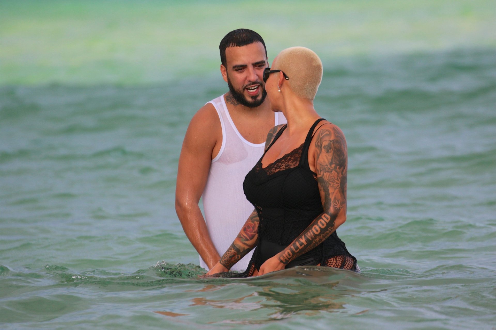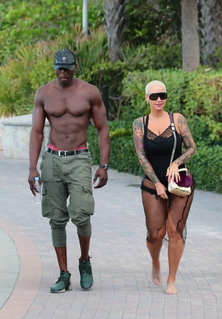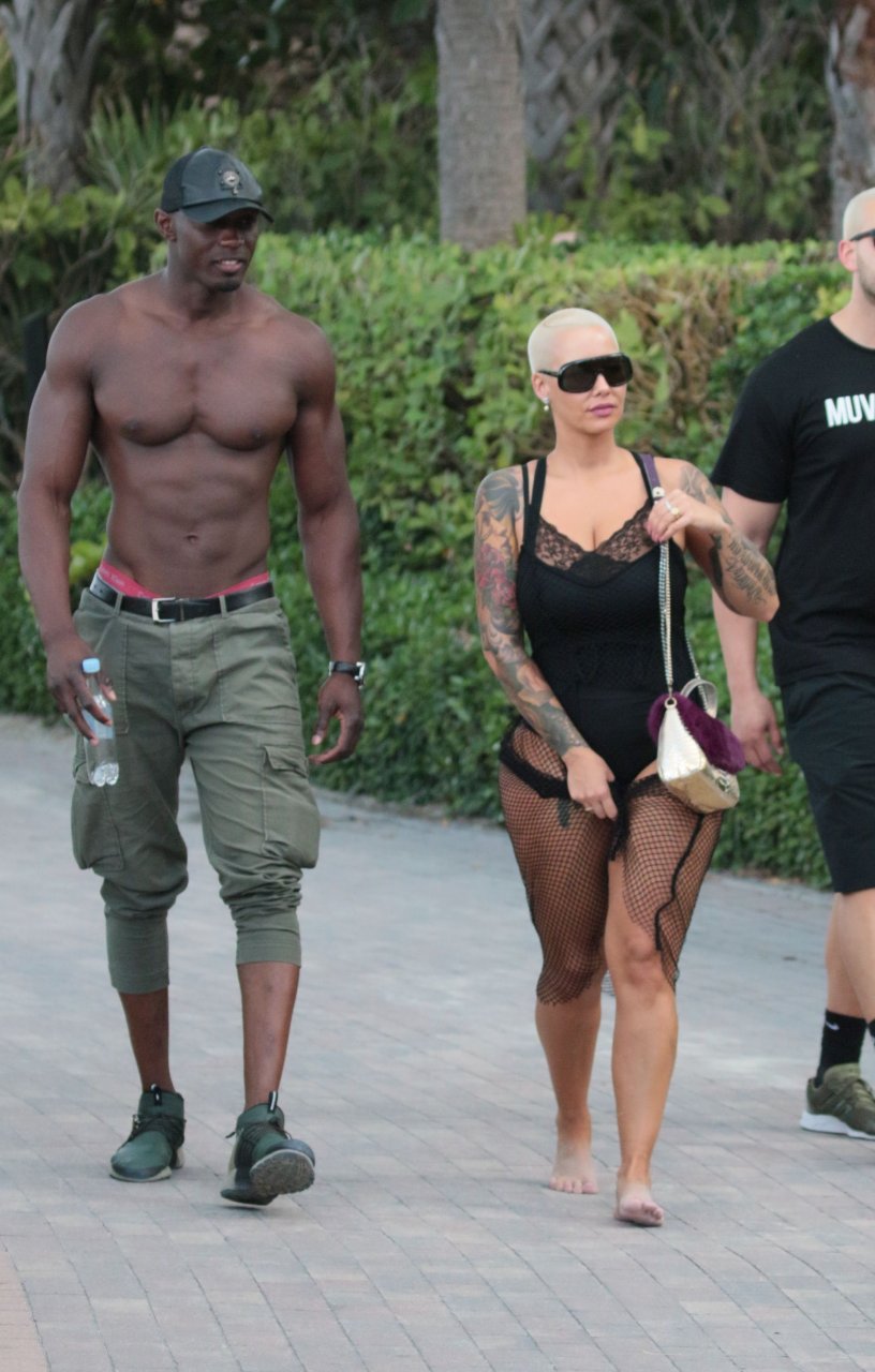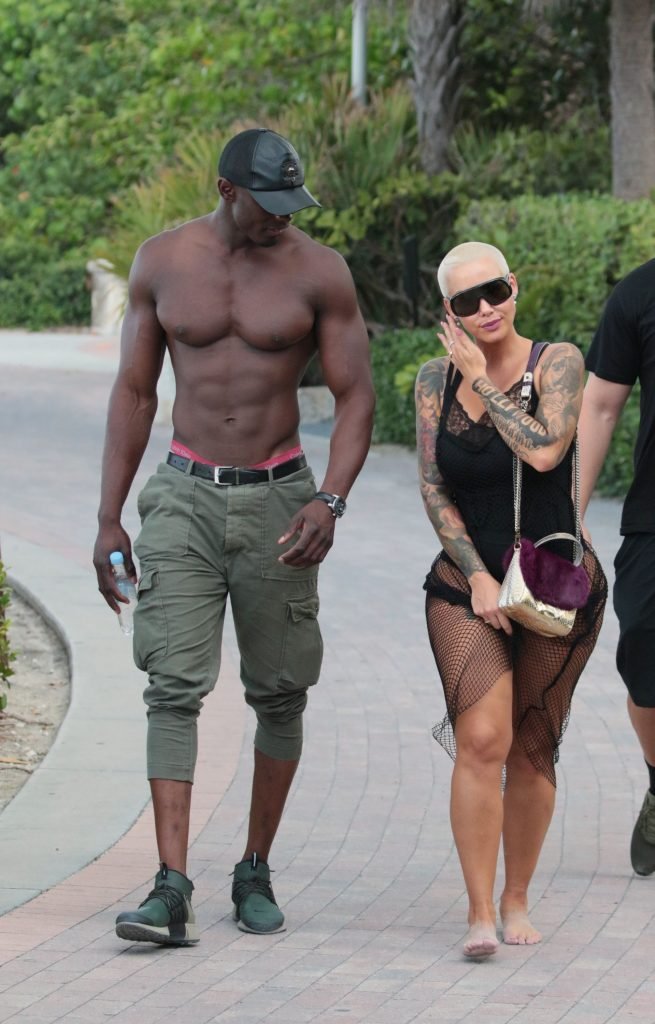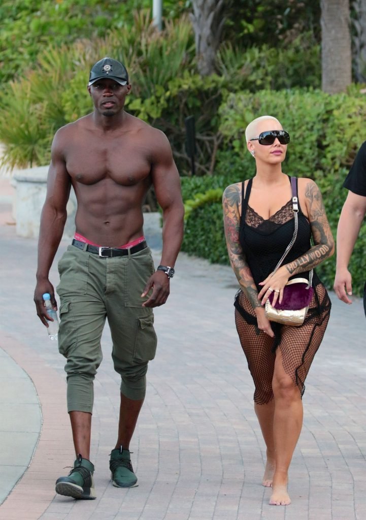 Amber Rose et son petit ami se montrent affectueux sur la plage de Miami Beach, 14/05/2017. Amber Levonchuck (Rose) est un mannequin, rappeuse et actrice américaine (Black-ish (série TV), 2015). Âge : 33 ans.