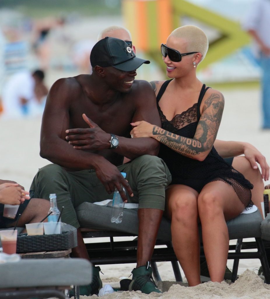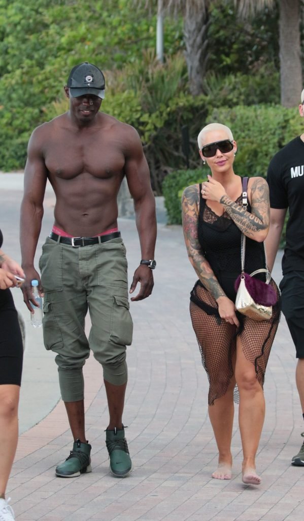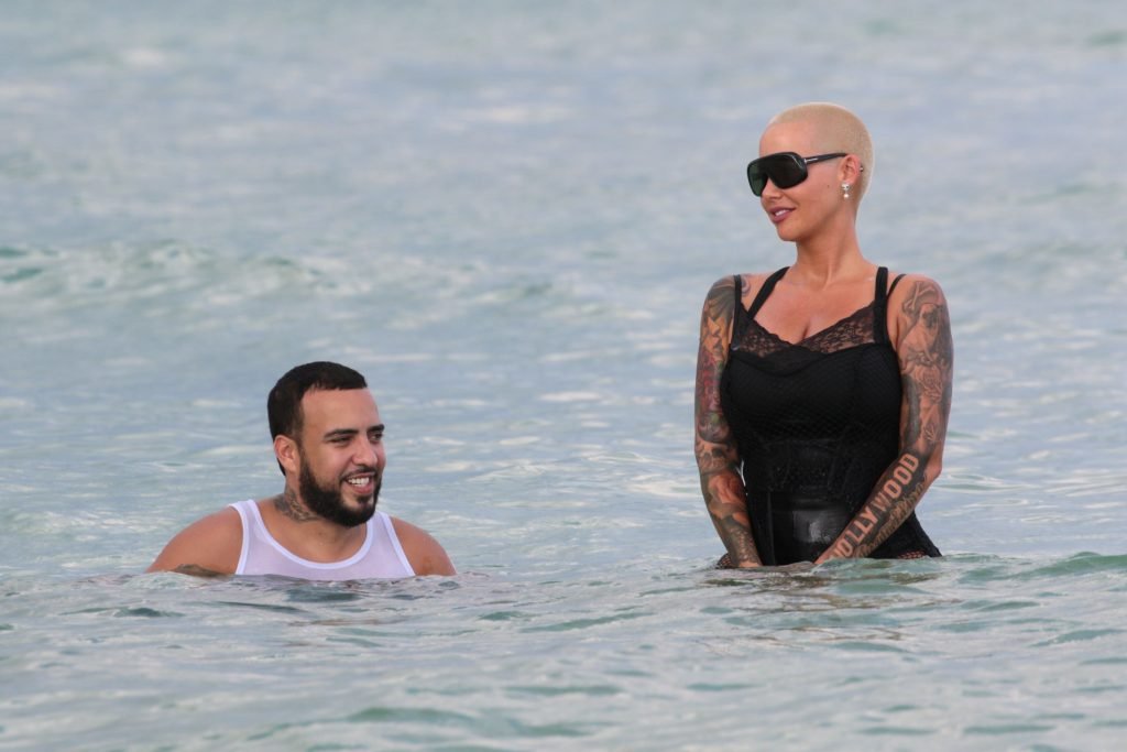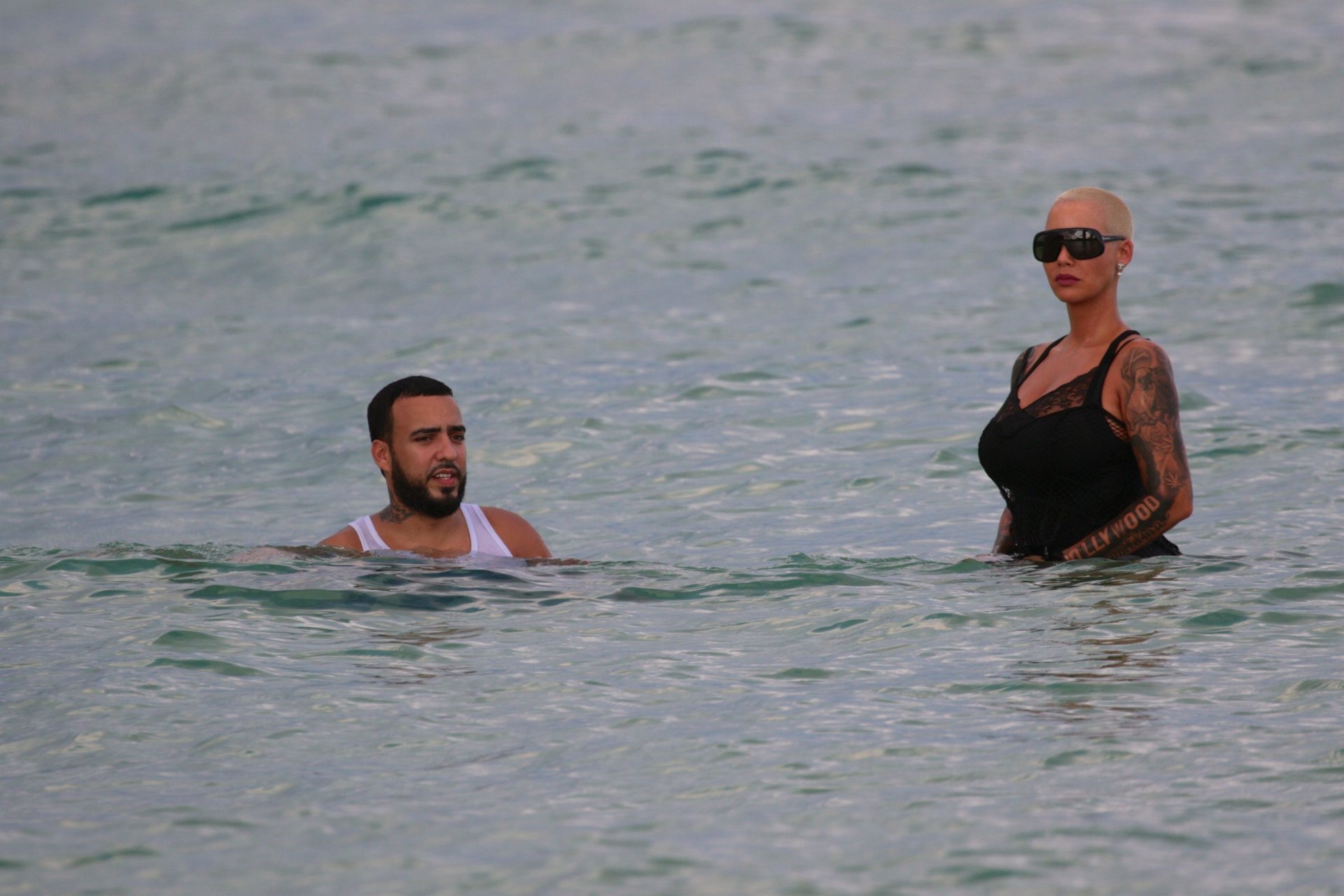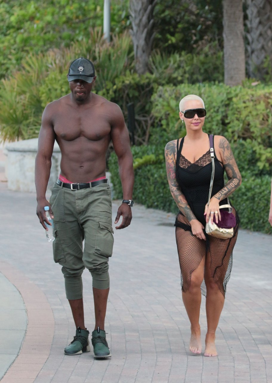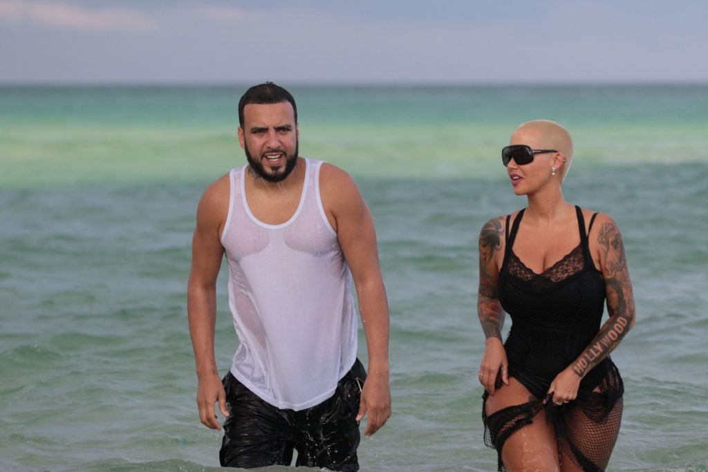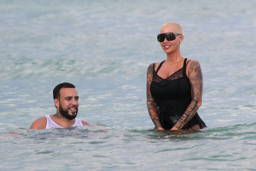 Amber Rose et son petit ami se montrent affectueux sur la plage de Miami Beach, 14/05/2017. Amber Levonchuck (Rose) est un mannequin, rappeuse et actrice américaine (Black-ish (série TV), 2015). Âge : 33 ans.
