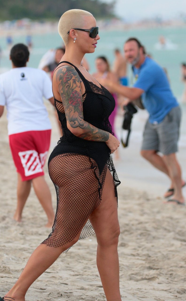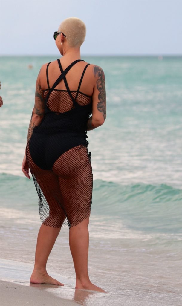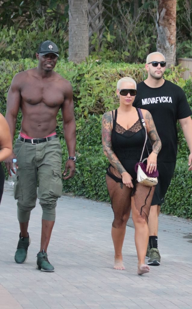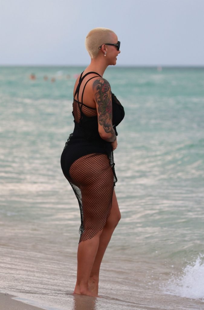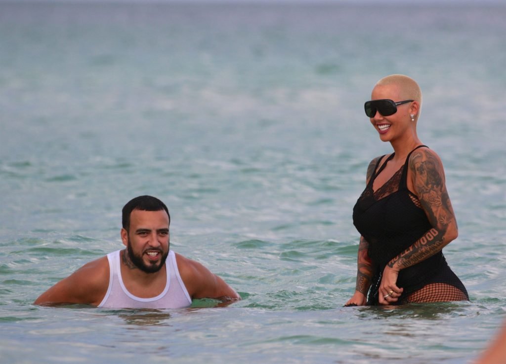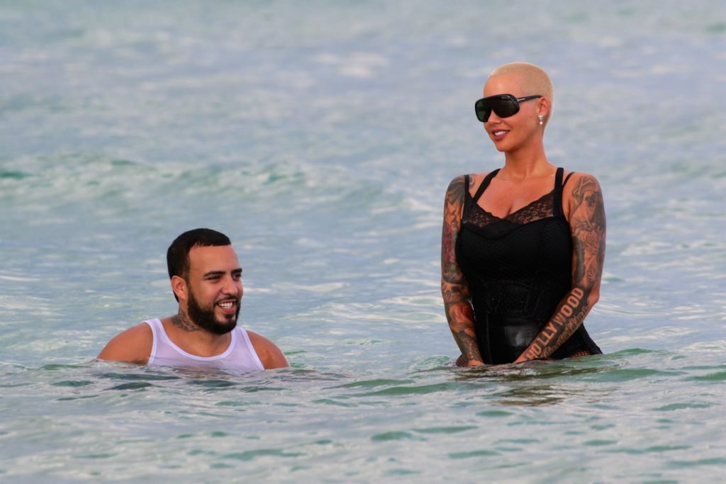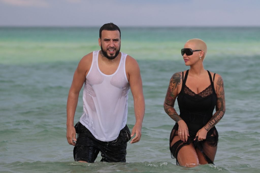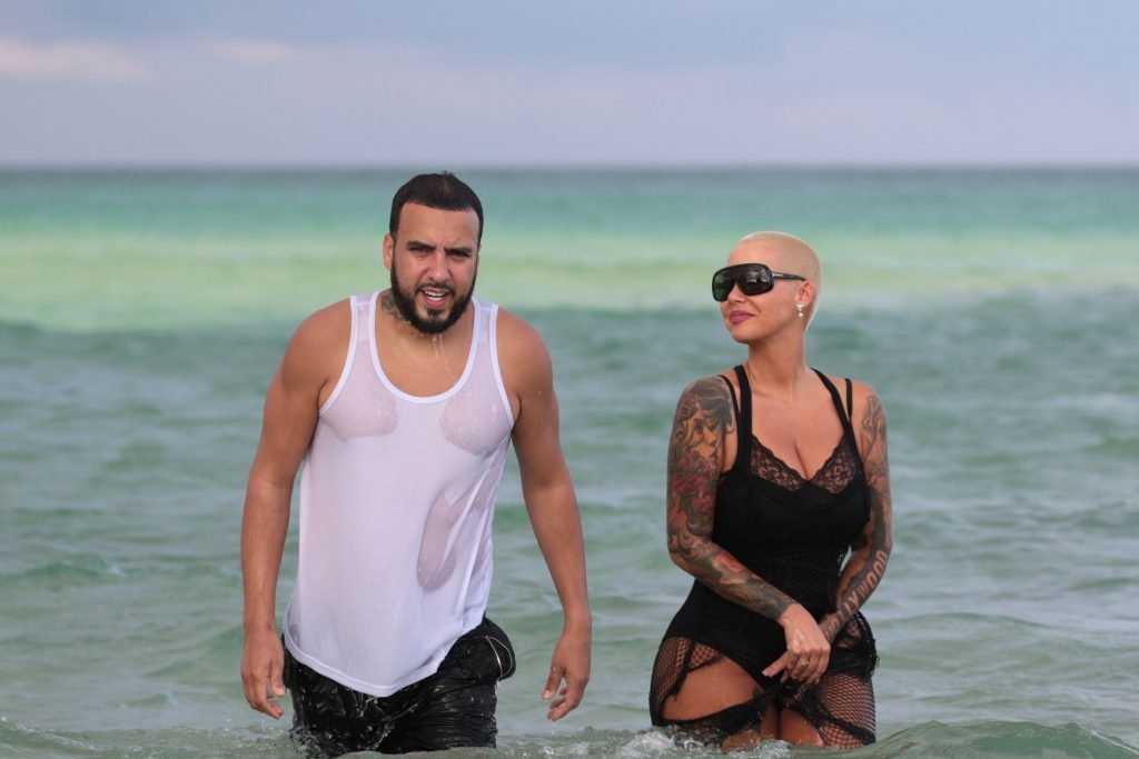 Amber Rose et son petit ami se montrent affectueux sur la plage de Miami Beach, 14/05/2017. Amber Levonchuck (Rose) est un mannequin, rappeuse et actrice américaine (Black-ish (série TV), 2015). Âge : 33 ans.