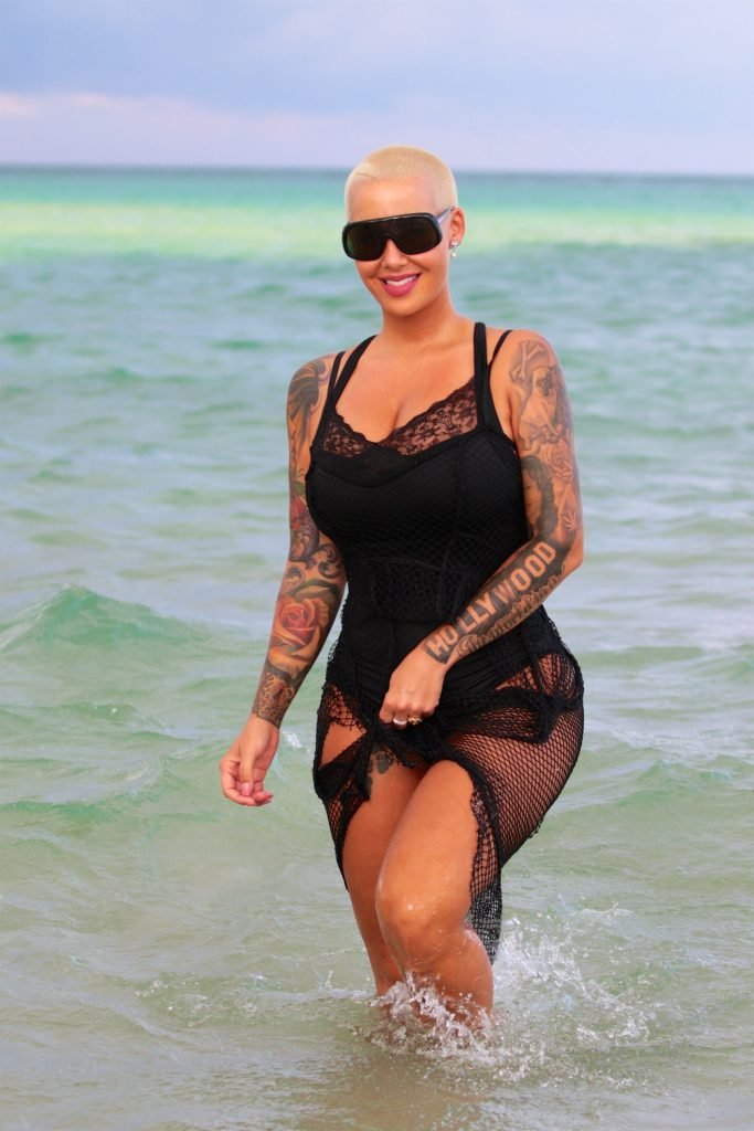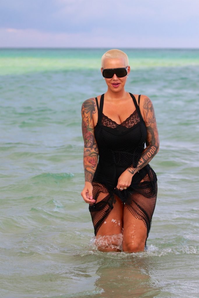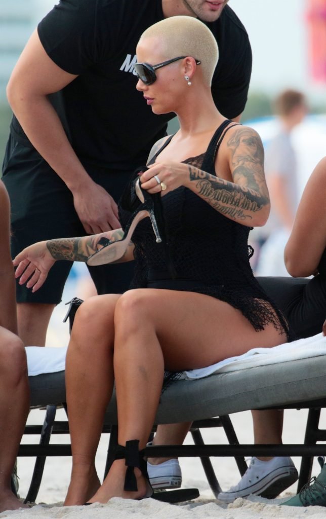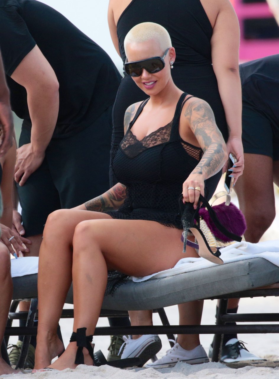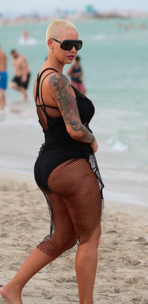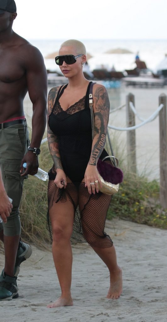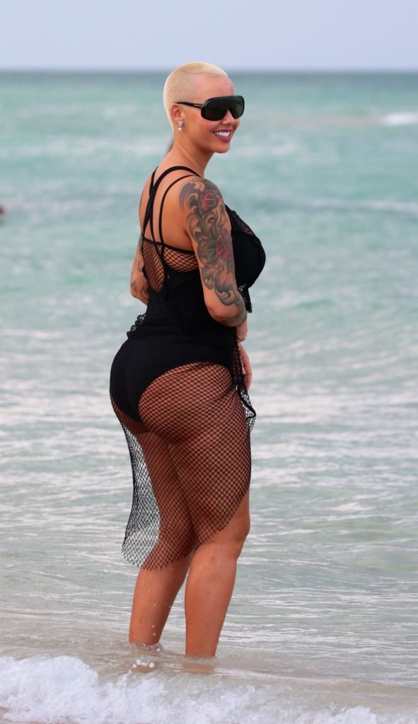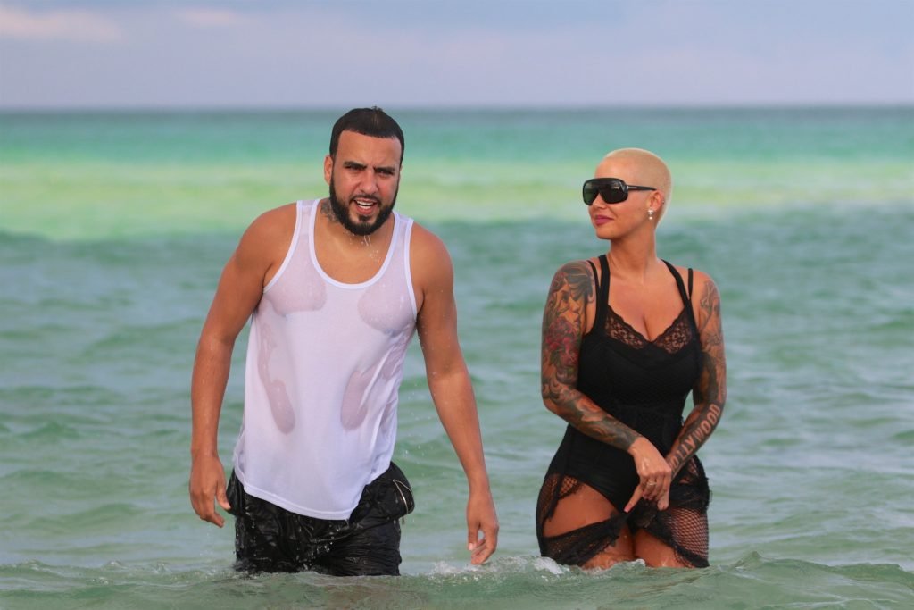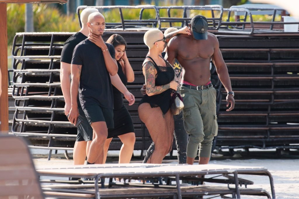 Amber Rose et son petit ami se montrent affectueux sur la plage de Miami Beach, 14/05/2017. Amber Levonchuck (Rose) est un mannequin, rappeuse et actrice américaine (Black-ish (série TV), 2015). Âge : 33 ans.