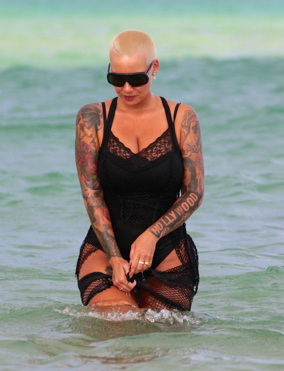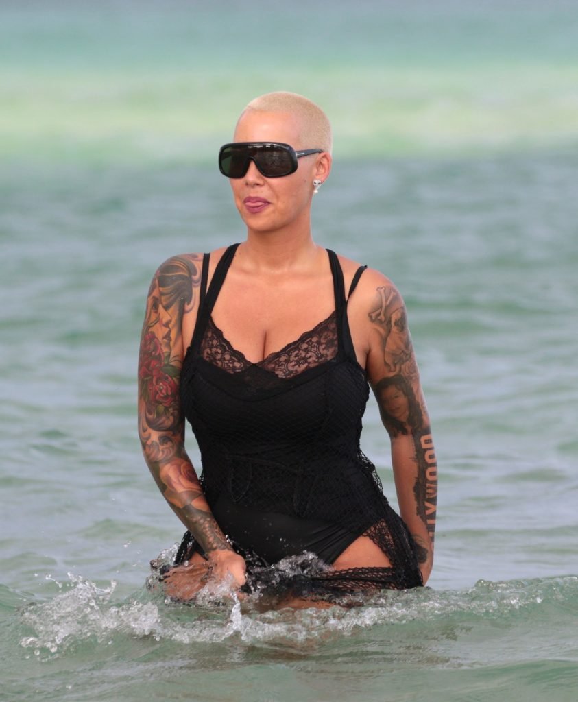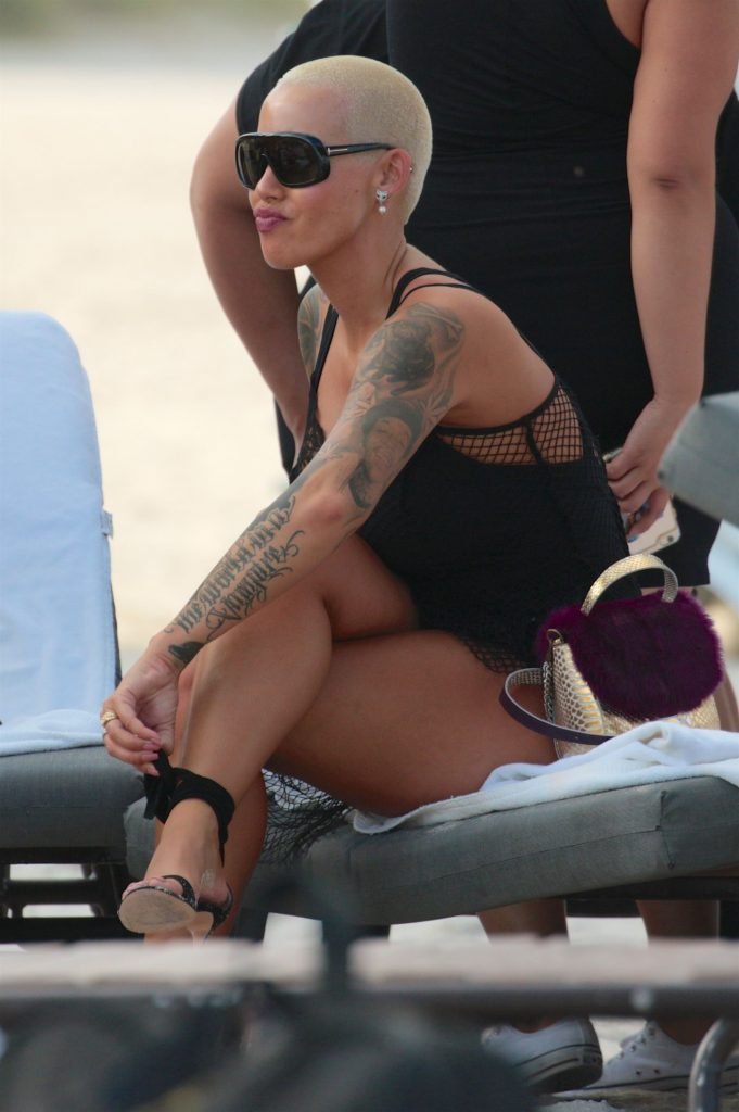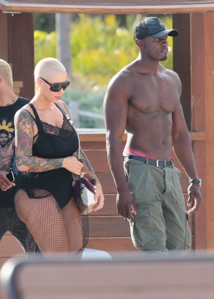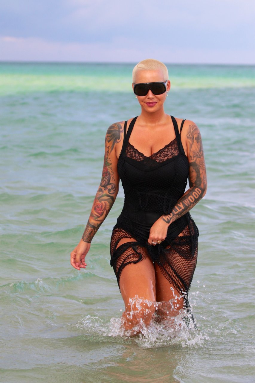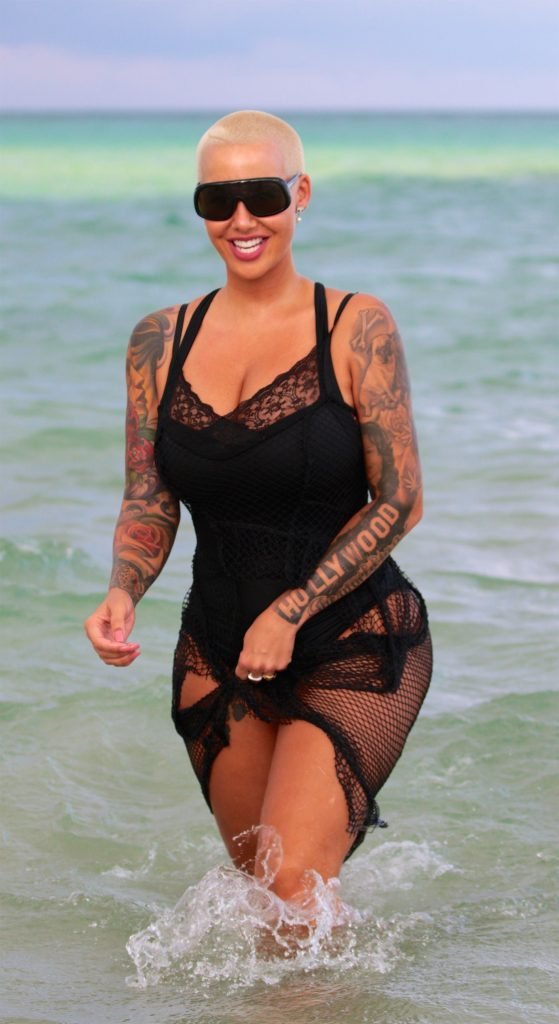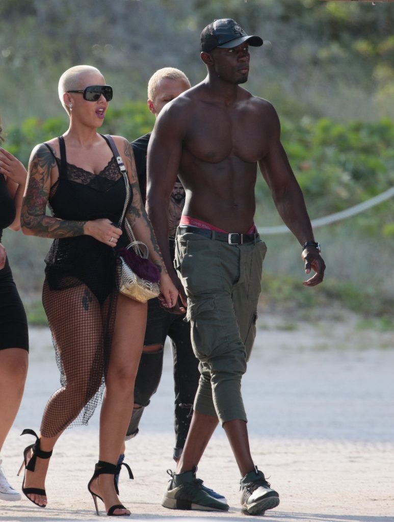 Amber Rose et son petit ami se montrent affectueux sur la plage de Miami Beach, 14/05/2017. Amber Levonchuck (Rose) est un mannequin, rappeuse et actrice américaine (Black-ish (série TV), 2015). Âge : 33 ans.