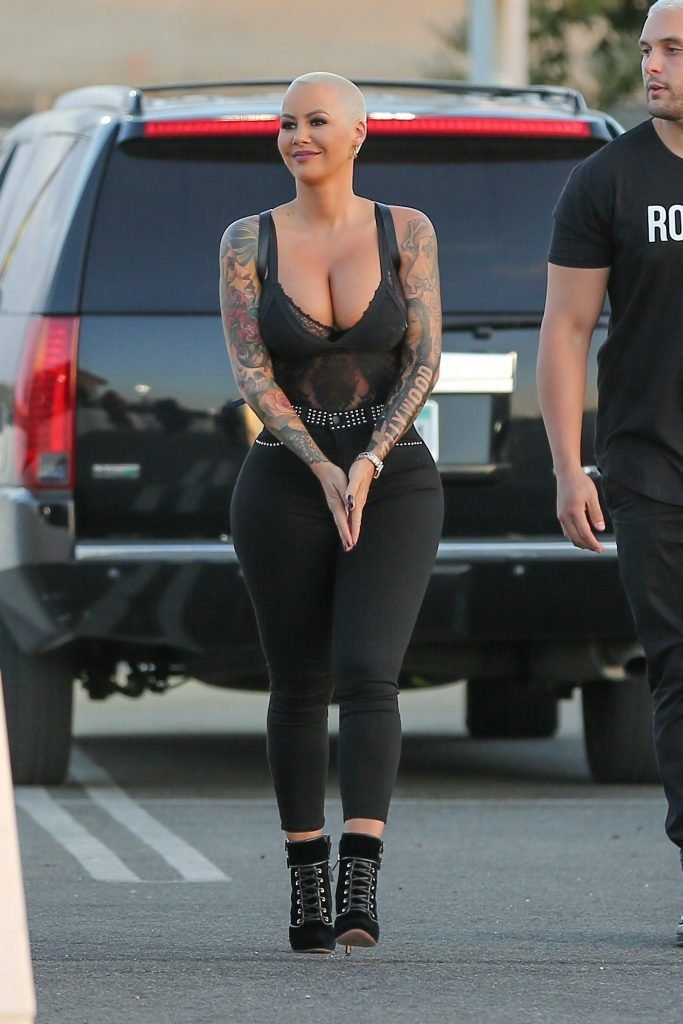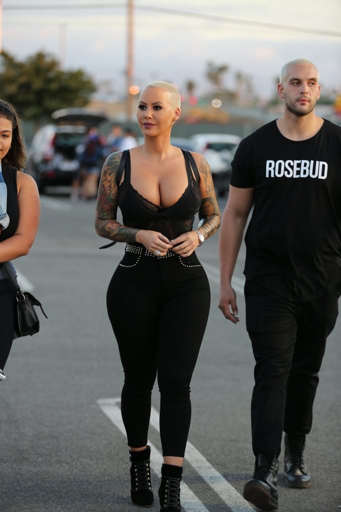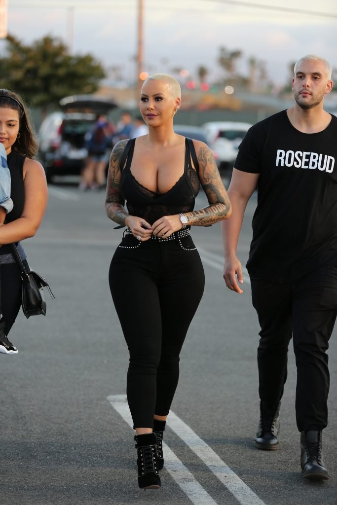 Amber Rose montre son joli décolleté à Los Angeles, 06/10/2017. Amber Levonchuck (Rose) est une rappeuse américaine, actrice (Cameron and Eddie Lose the Belt) et mannequin. Âge – 33 ans.