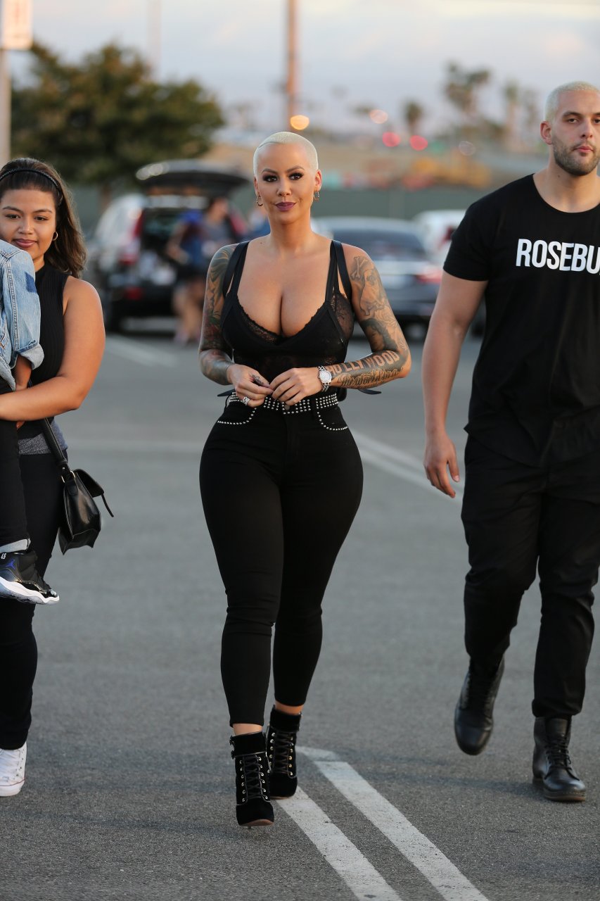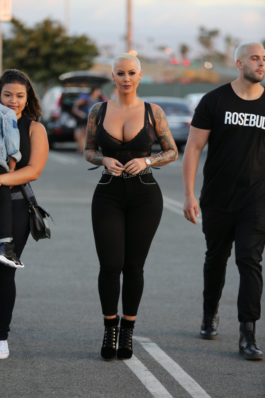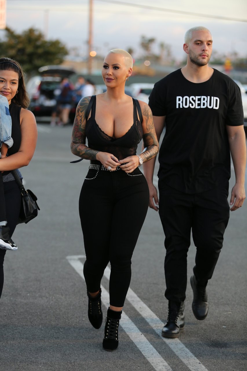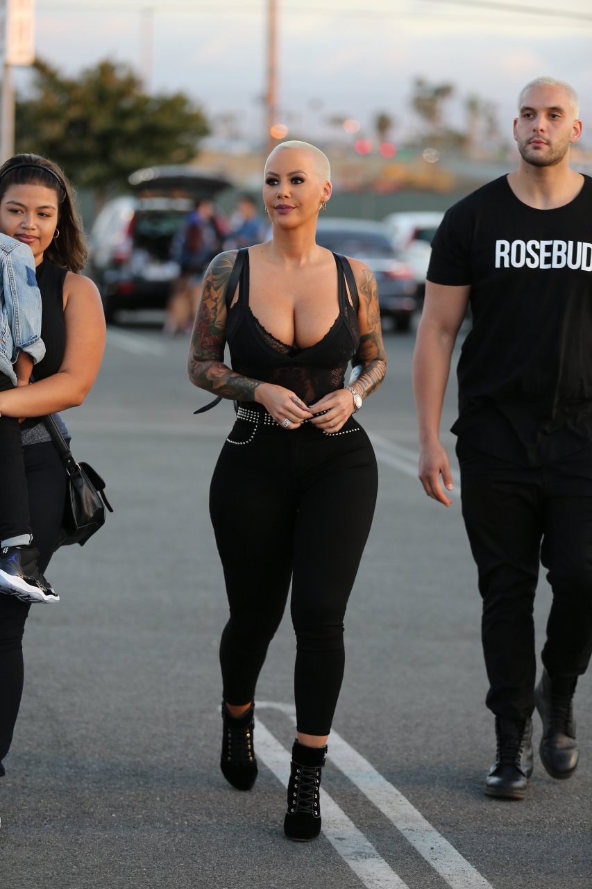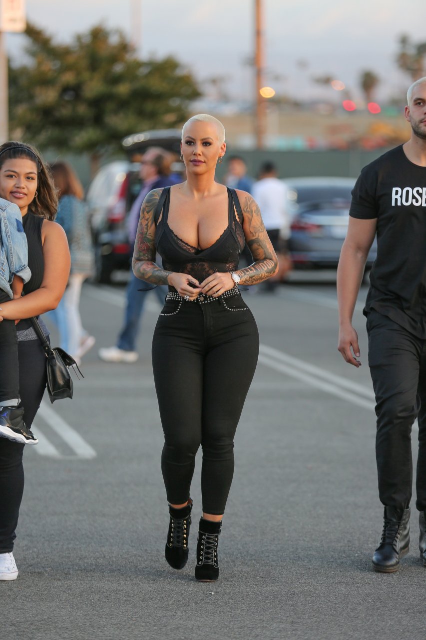 Amber Rose montre son joli décolleté à Los Angeles, 06/10/2017. Amber Levonchuck (Rose) est une rappeuse américaine, actrice (Cameron and Eddie Lose the Belt) et mannequin. Âge – 33 ans.