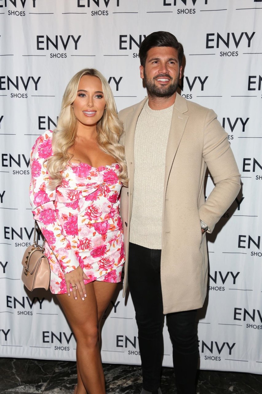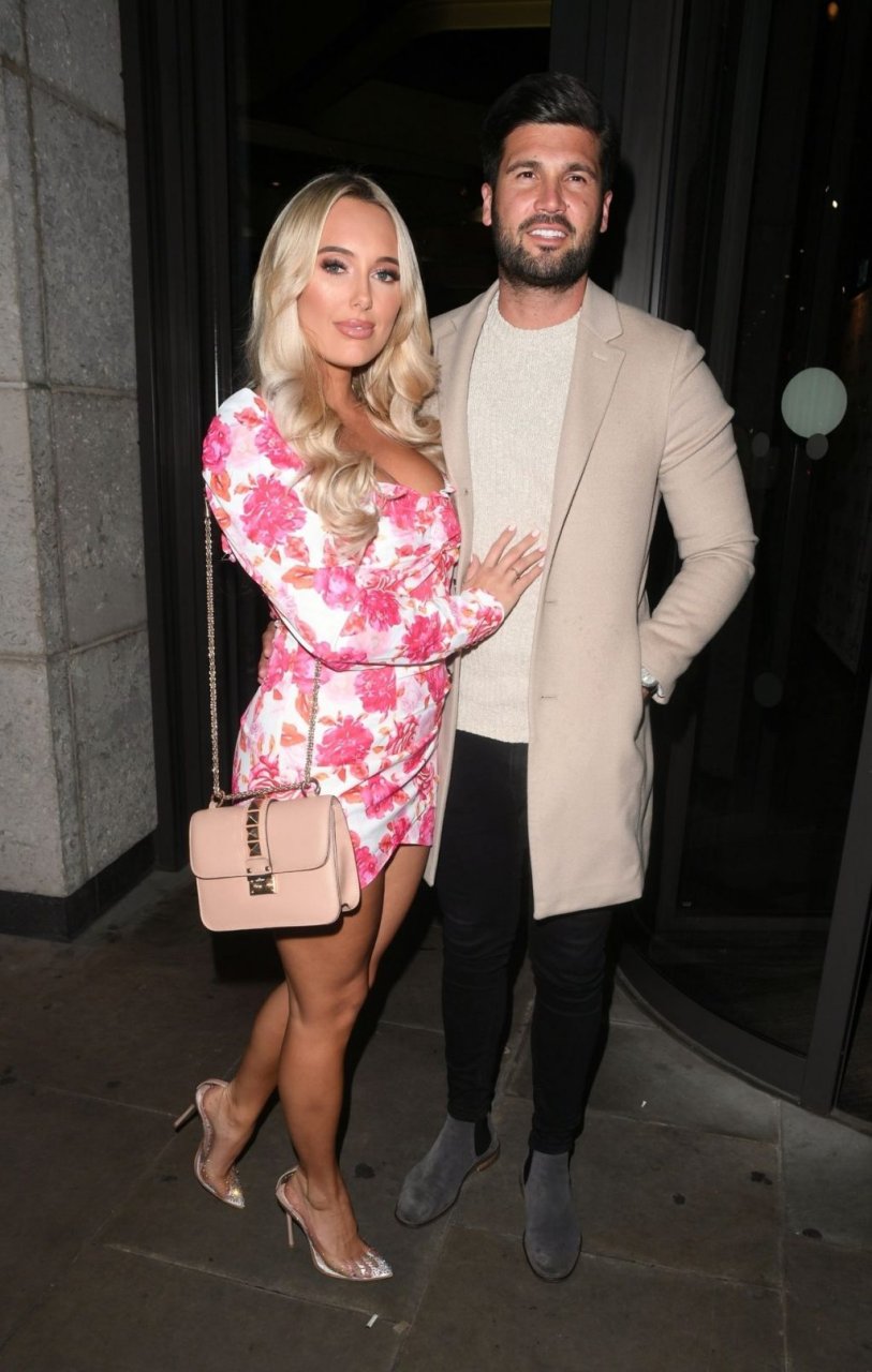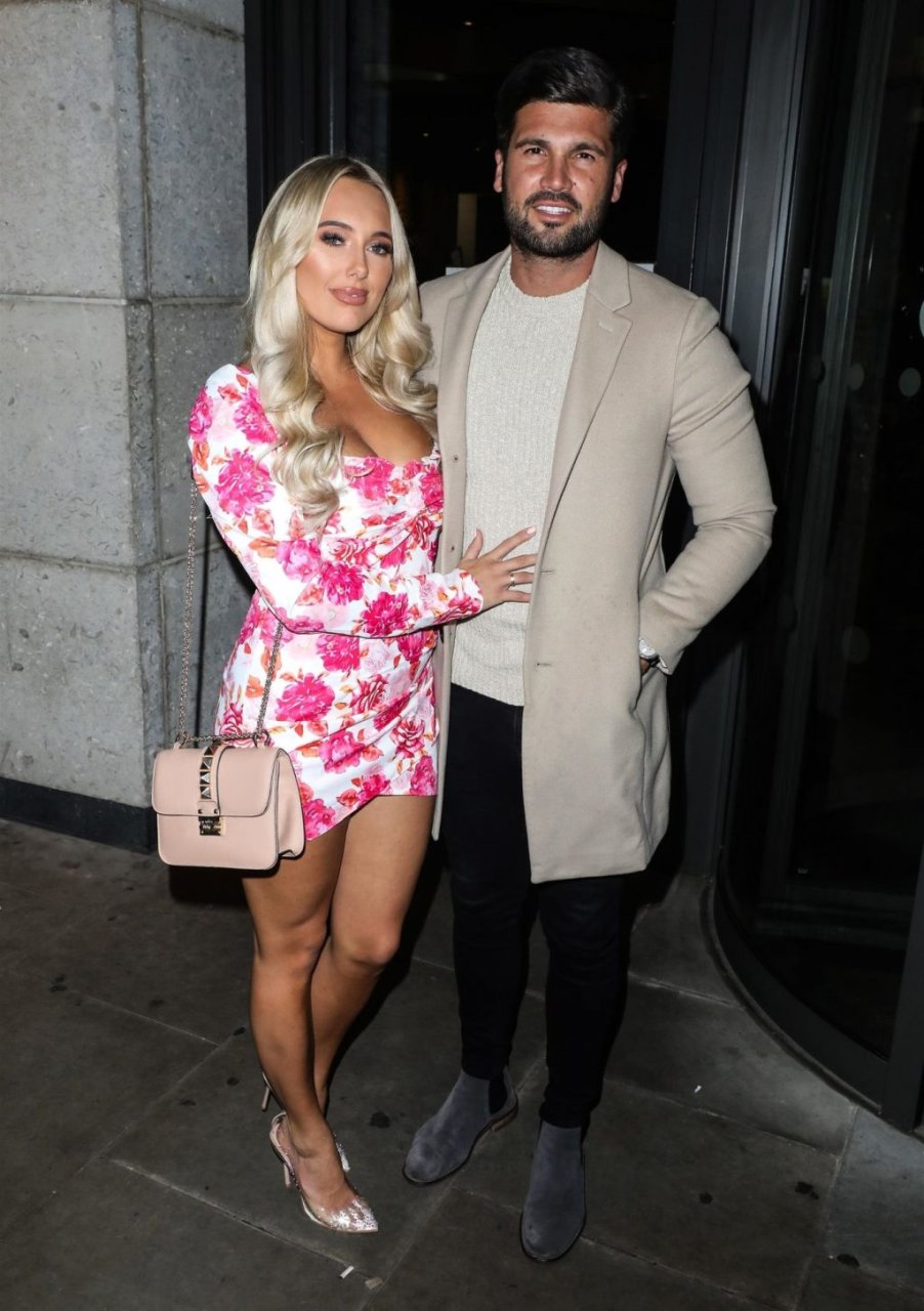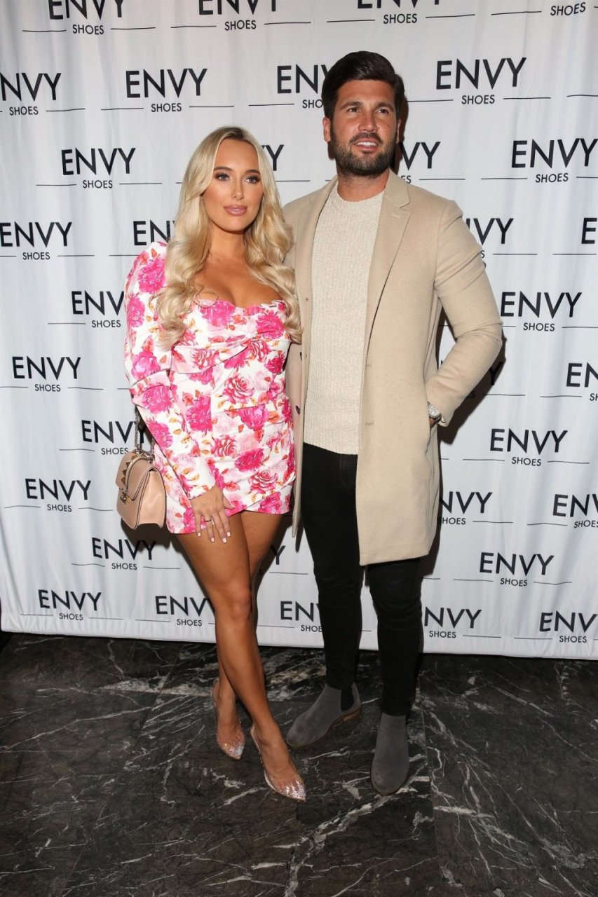 Blogueuse mode et star de TOWIE, Amber Turner a été photographiée dans une robe courte blanche-rose à l’hôtel Dorsett de Londres pour le lancement de sa collaboration hivernale avec Envy Shoes, qui s’est tenue au Jin Bo Law au 14ème étage de l’hôtel Dorsett City, Aldgate, le 16/10/2019.