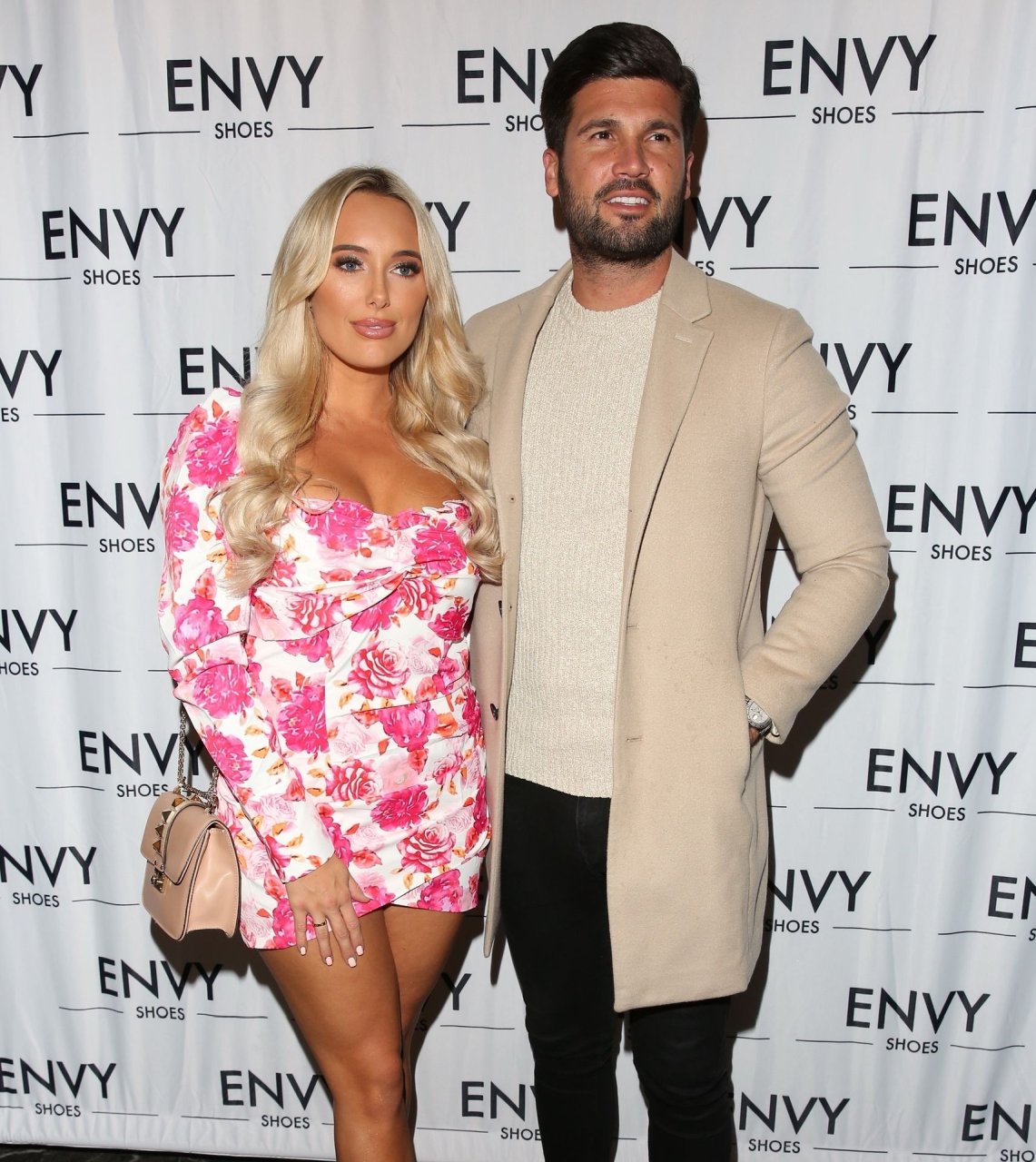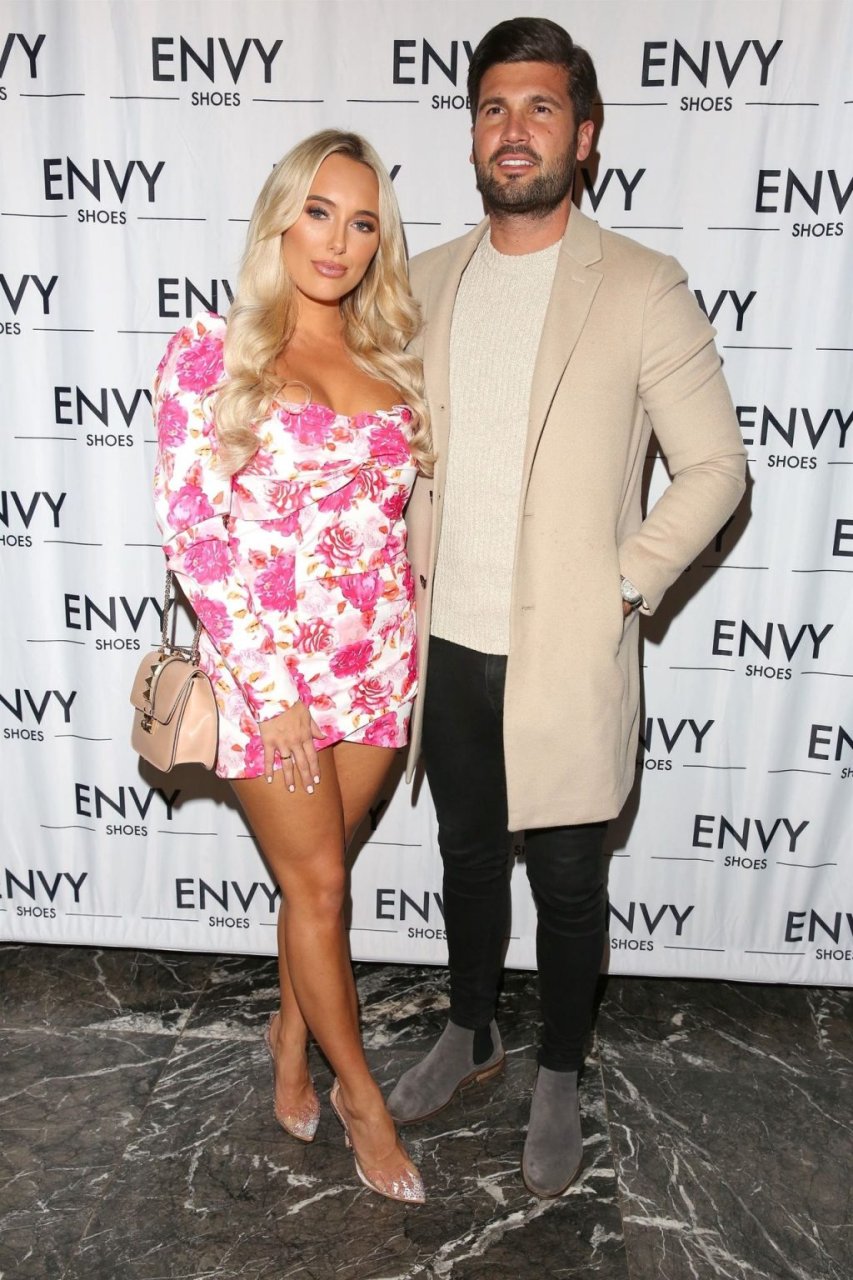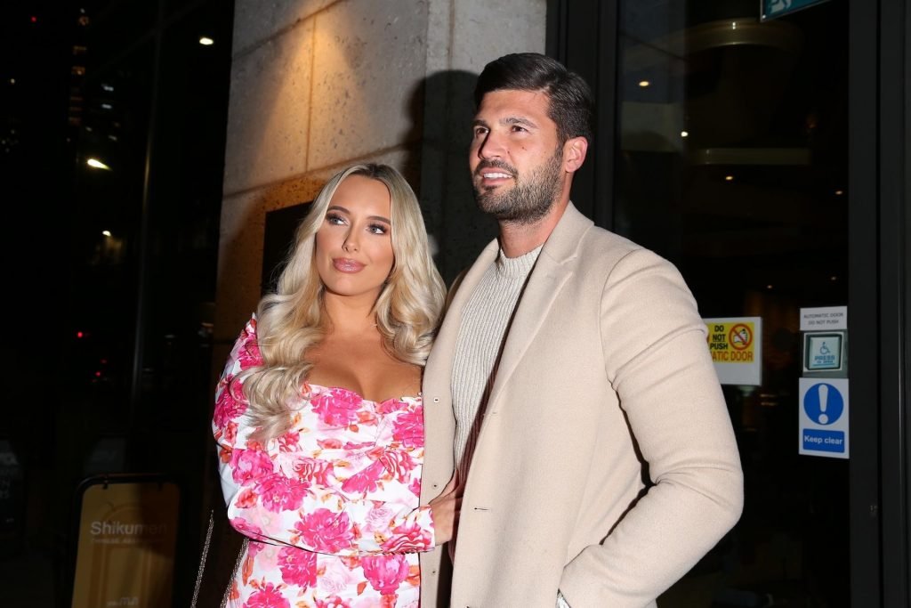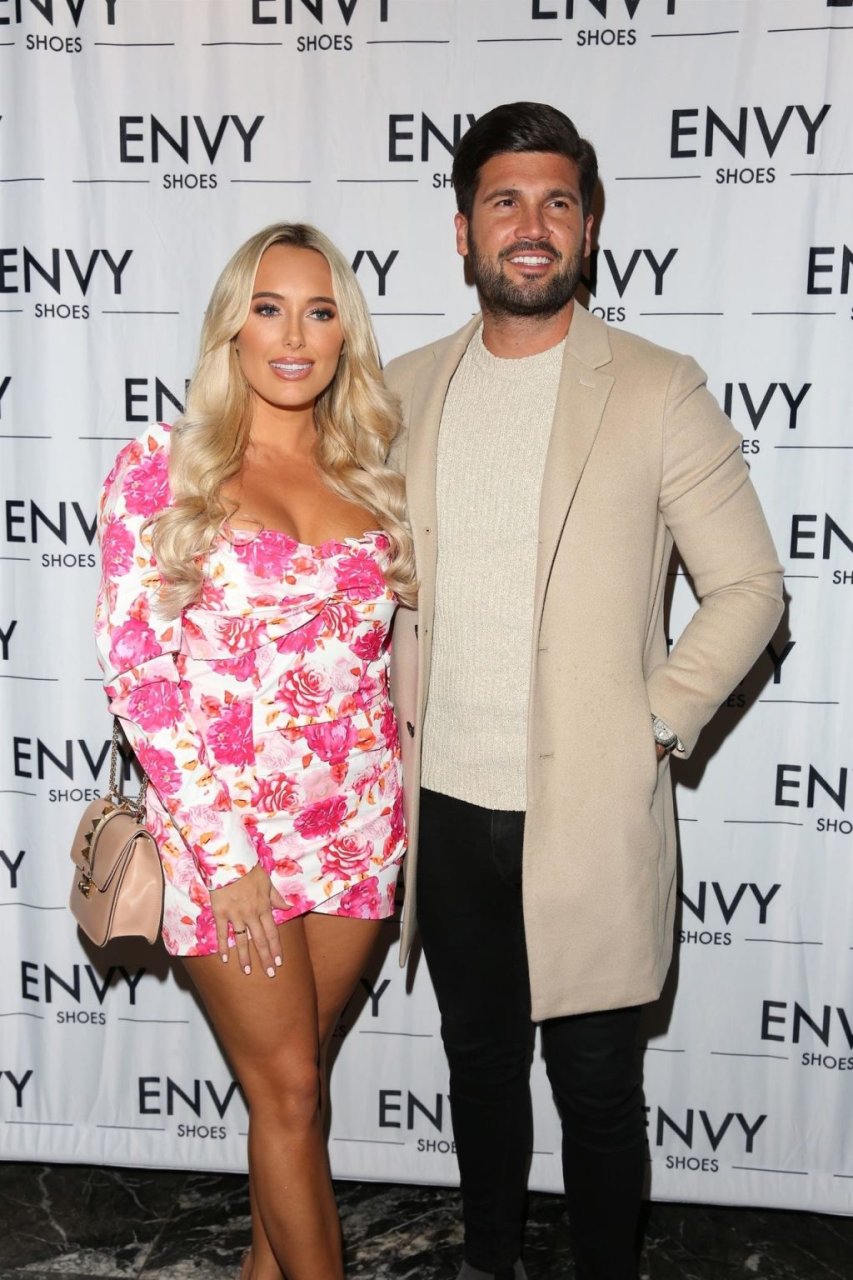 Blogueuse mode et star de TOWIE, Amber Turner a été photographiée dans une robe courte blanche-rose à l’hôtel Dorsett de Londres pour le lancement de sa collaboration hivernale avec Envy Shoes, qui s’est tenue au Jin Bo Law au 14ème étage de l’hôtel Dorsett City, Aldgate, le 16/10/2019.