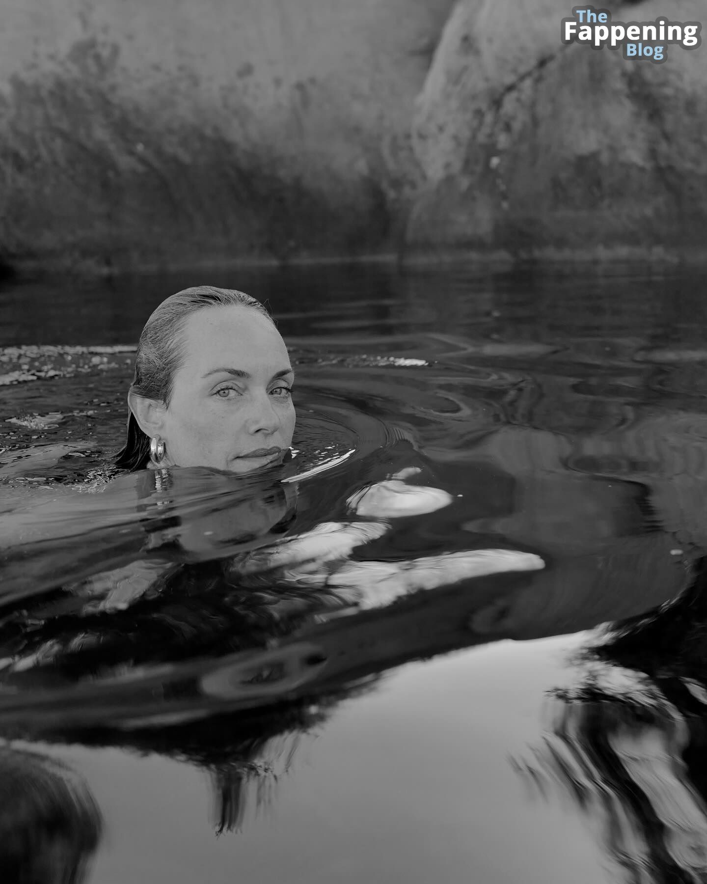 Découvrez les photos nues d’Amber Valletta lors de sa séance aquatique en noir et blanc.