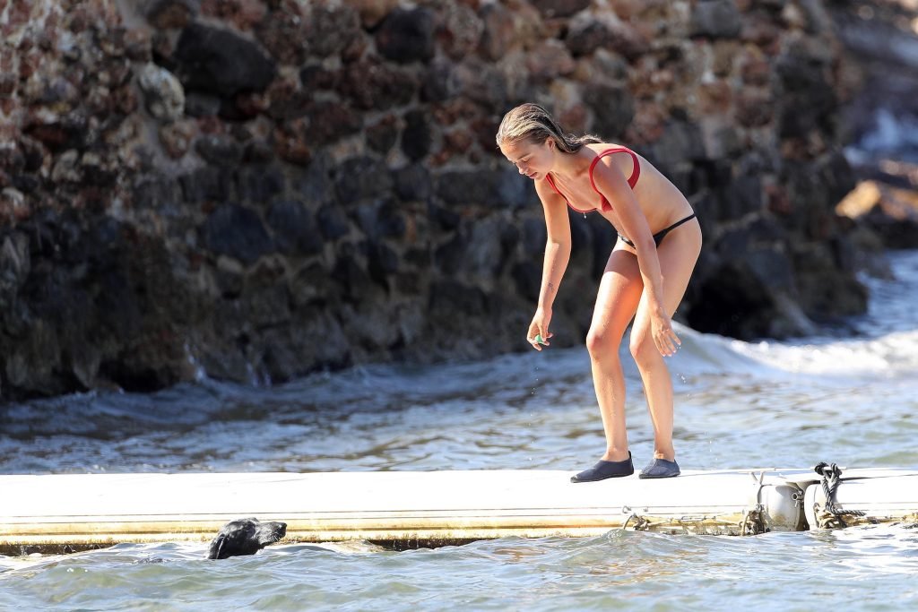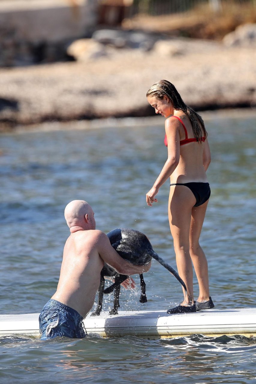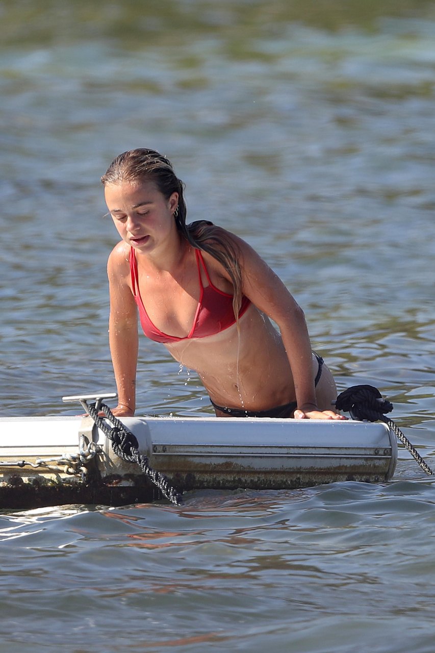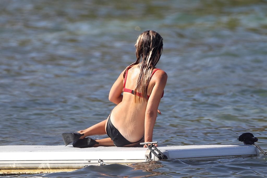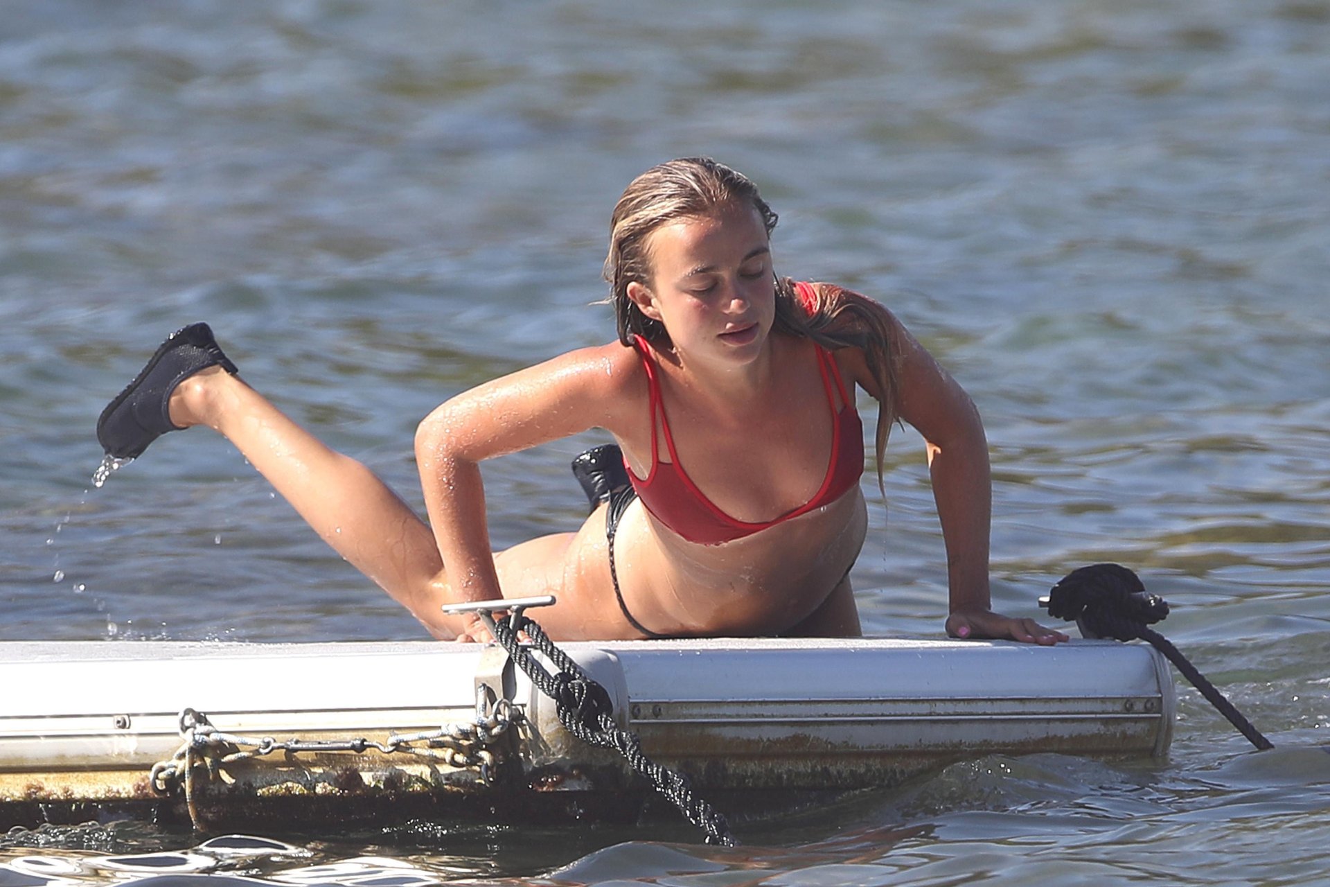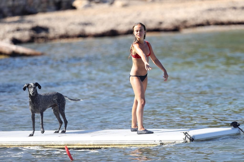 La jeune mannequin a exhibé sa silhouette élancée dans un bikini deux pièces sportif. Lady Amelia passe ses vacances avec une amie à Ibiza, en Espagne.