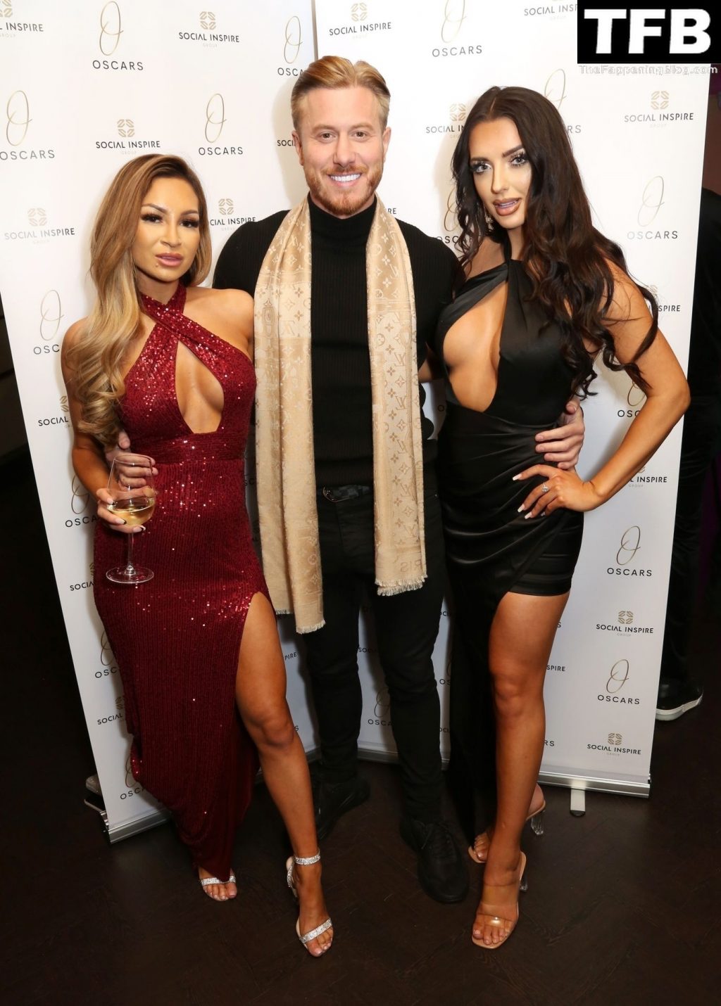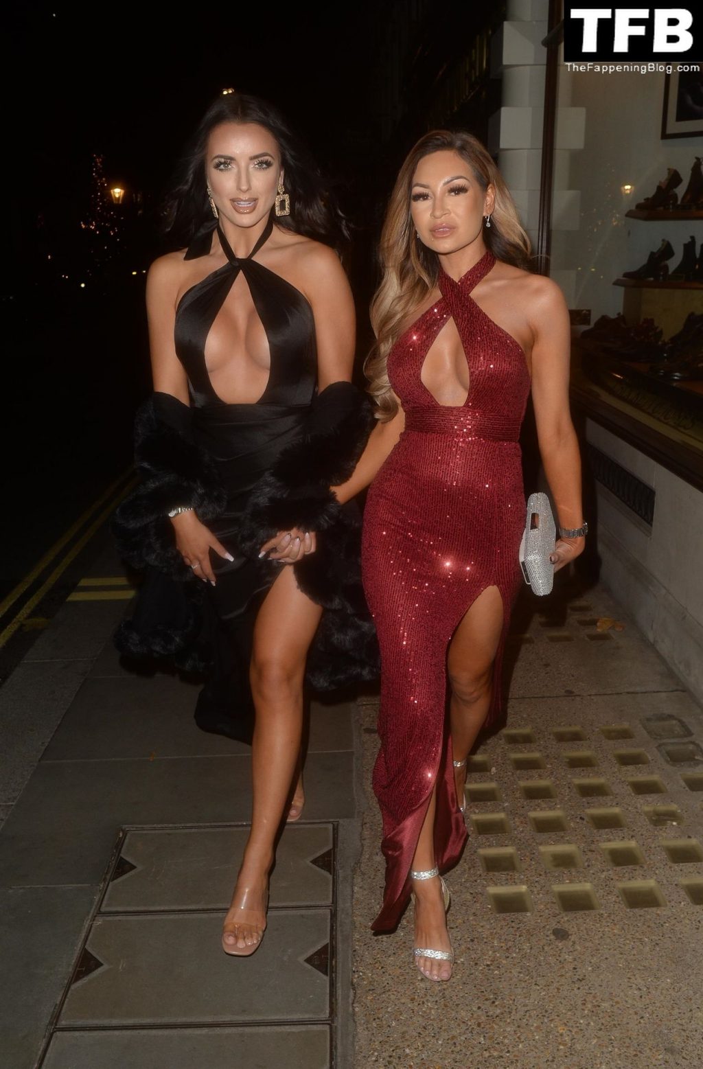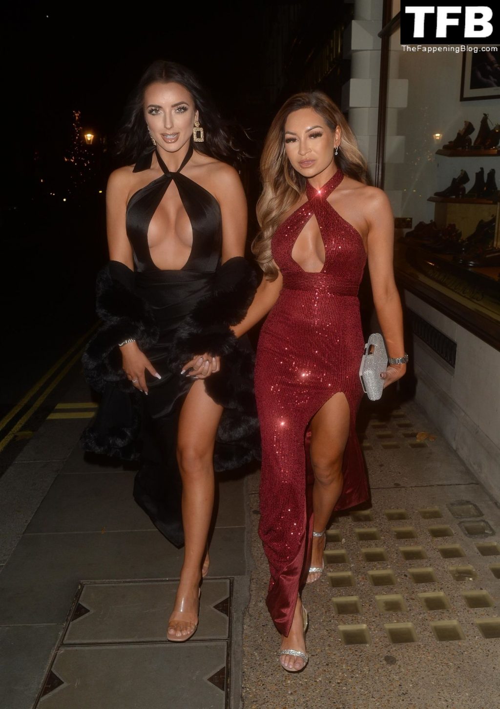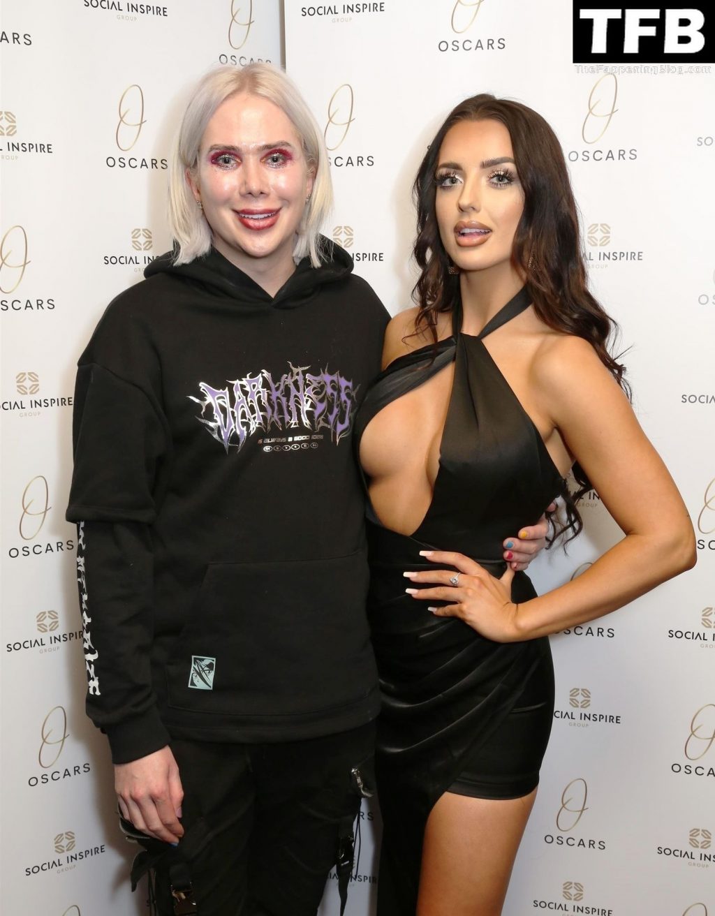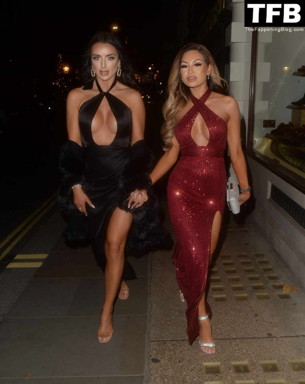 Les stars de la télé-réalité Aj Bunker et Amy Day assistent à une fête d’anniversaire à Londres, le 12/04/2021. Amy éblouit avec ses gros seins artificiels, portant une robe noire.
