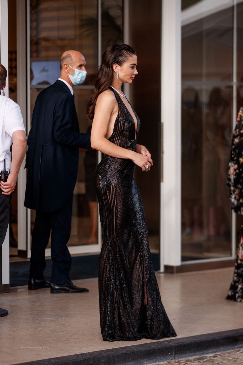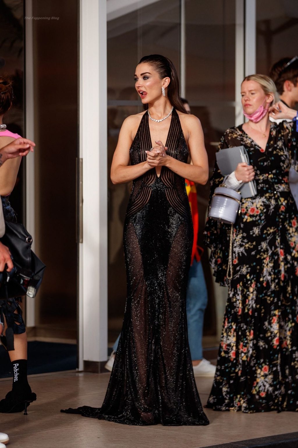 L’actrice et mannequin britannique Amy Jackson arrive dans une robe transparente pour assister au 27e gala annuel amfAR Cinema Against AIDS à la Villa Eilenroc à Cap d’Antibes, dans le sud de la France, en marge du 74e Festival de Cannes.