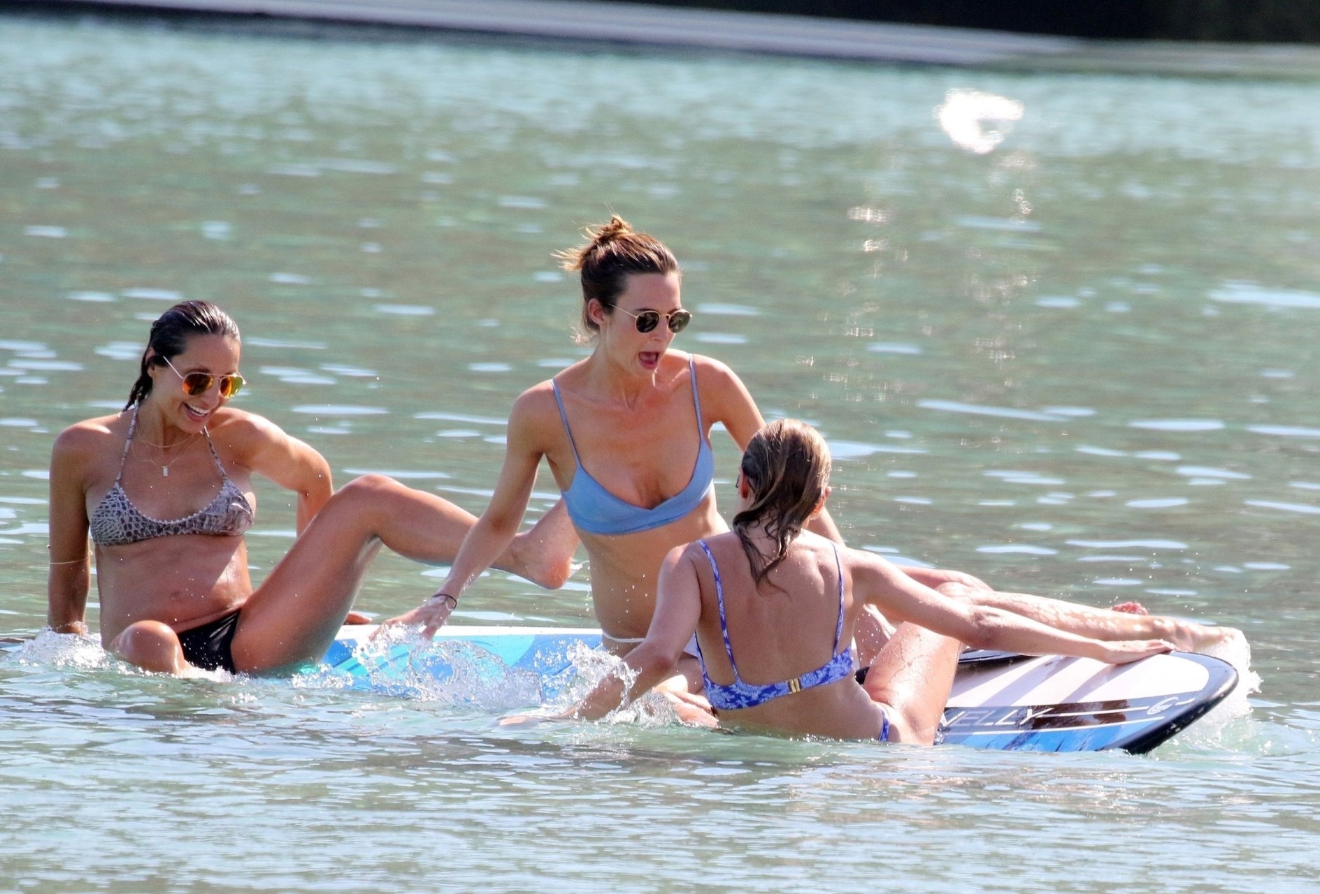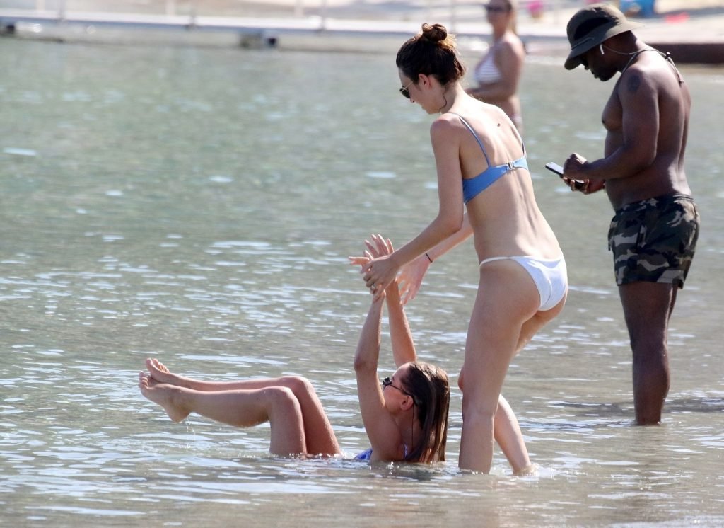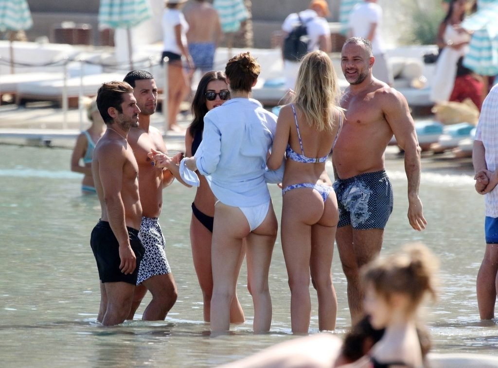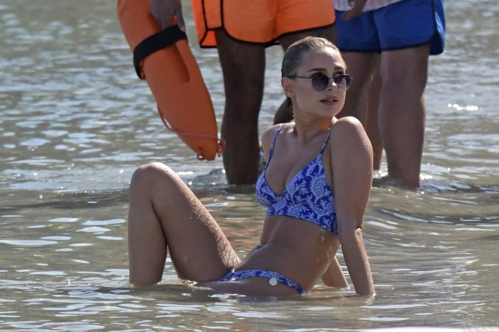 Amy Jackson, Kimberley Garner ont été vues à la plage pendant leurs vacances avec Alice Jeffrey et d’autres amis en Grèce, le 13/06/2018.