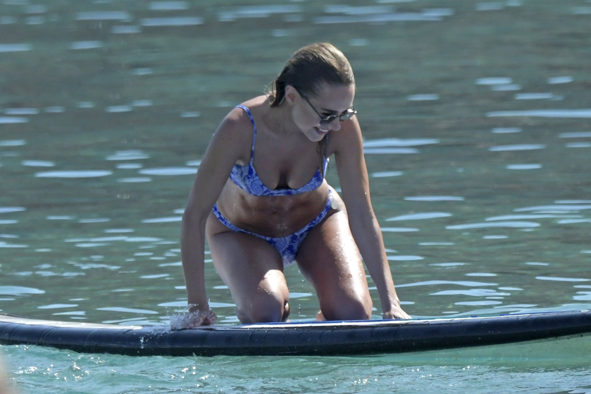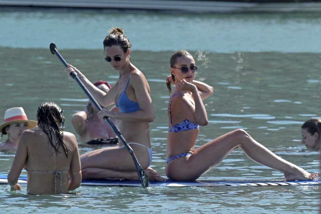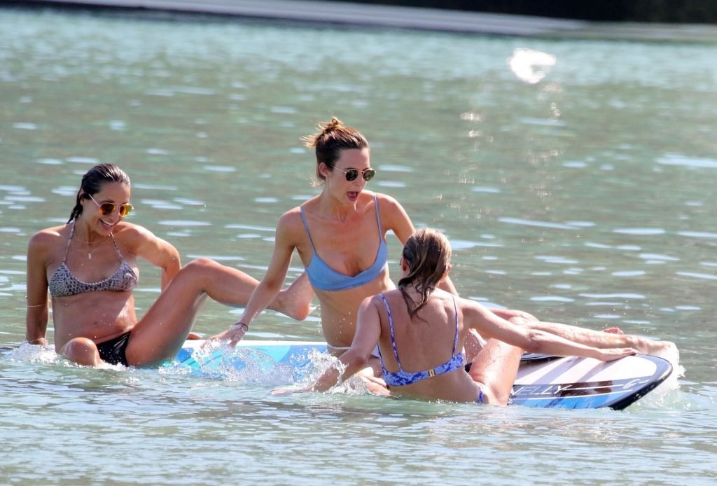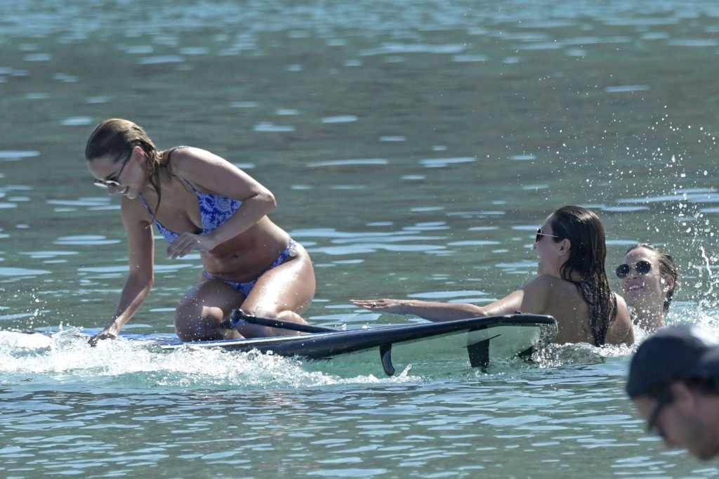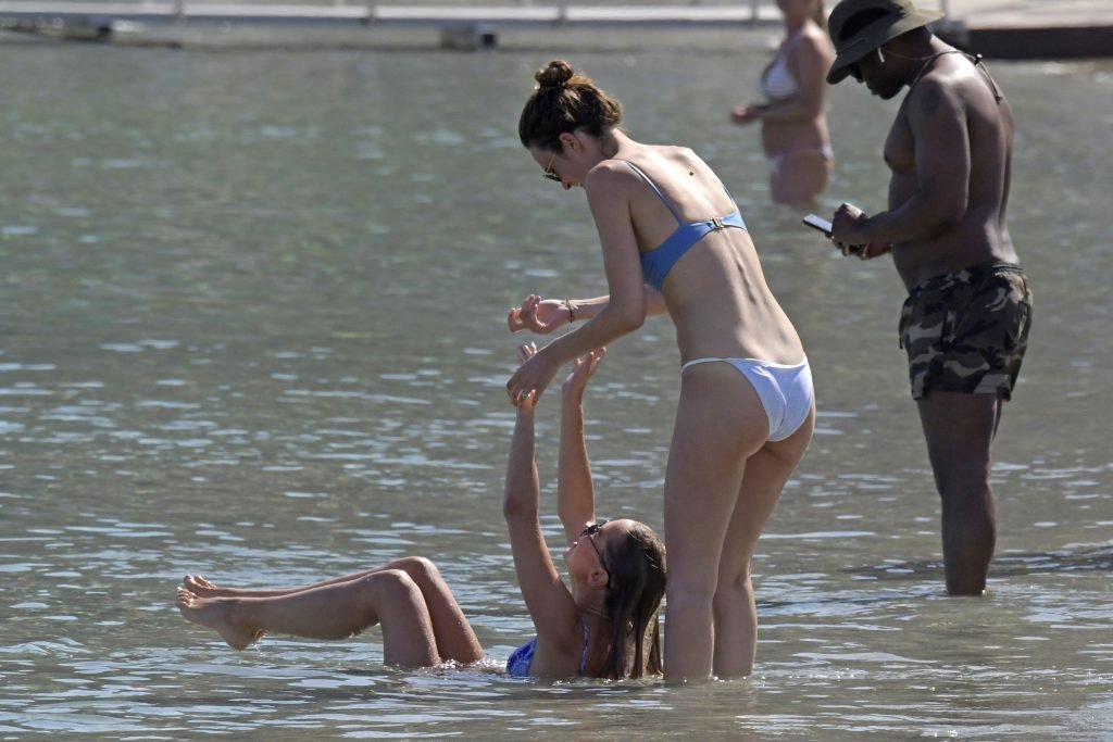 Amy Jackson, Kimberley Garner ont été vues à la plage pendant leurs vacances avec Alice Jeffrey et d’autres amis en Grèce, le 13/06/2018.
