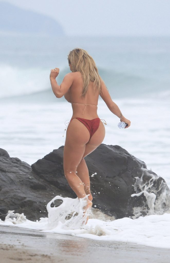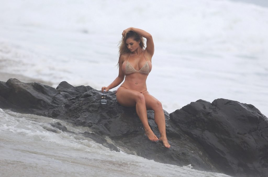 Le mannequin néo-zélandais Amy Lee Summers (27 ans) déborde de son minuscule bikini lors d’une séance photo pour 138 Water en collaboration avec Phoenix et Fiasco swimwear à Malibu, le 08/05/2018. Elle possède de nombreuses photos nues dans différents magazines, mais il n’y avait que des allusions à la nudité.