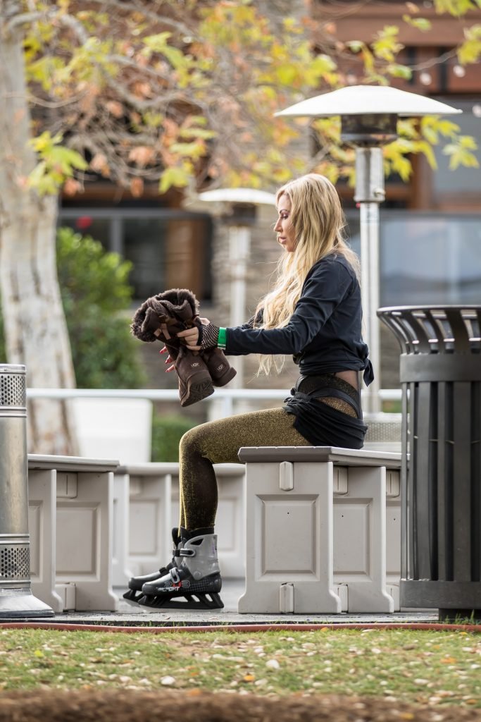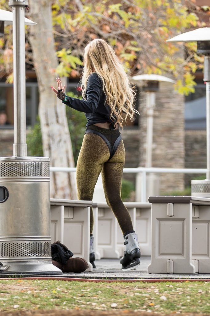 Ana Braga est vue portant un maillot des Vegas Golden Knights en patinant sur glace à Calabasas, le 30/01/2018. Ana Braga est un mannequin née au Brésil. Âge – 36 ans.