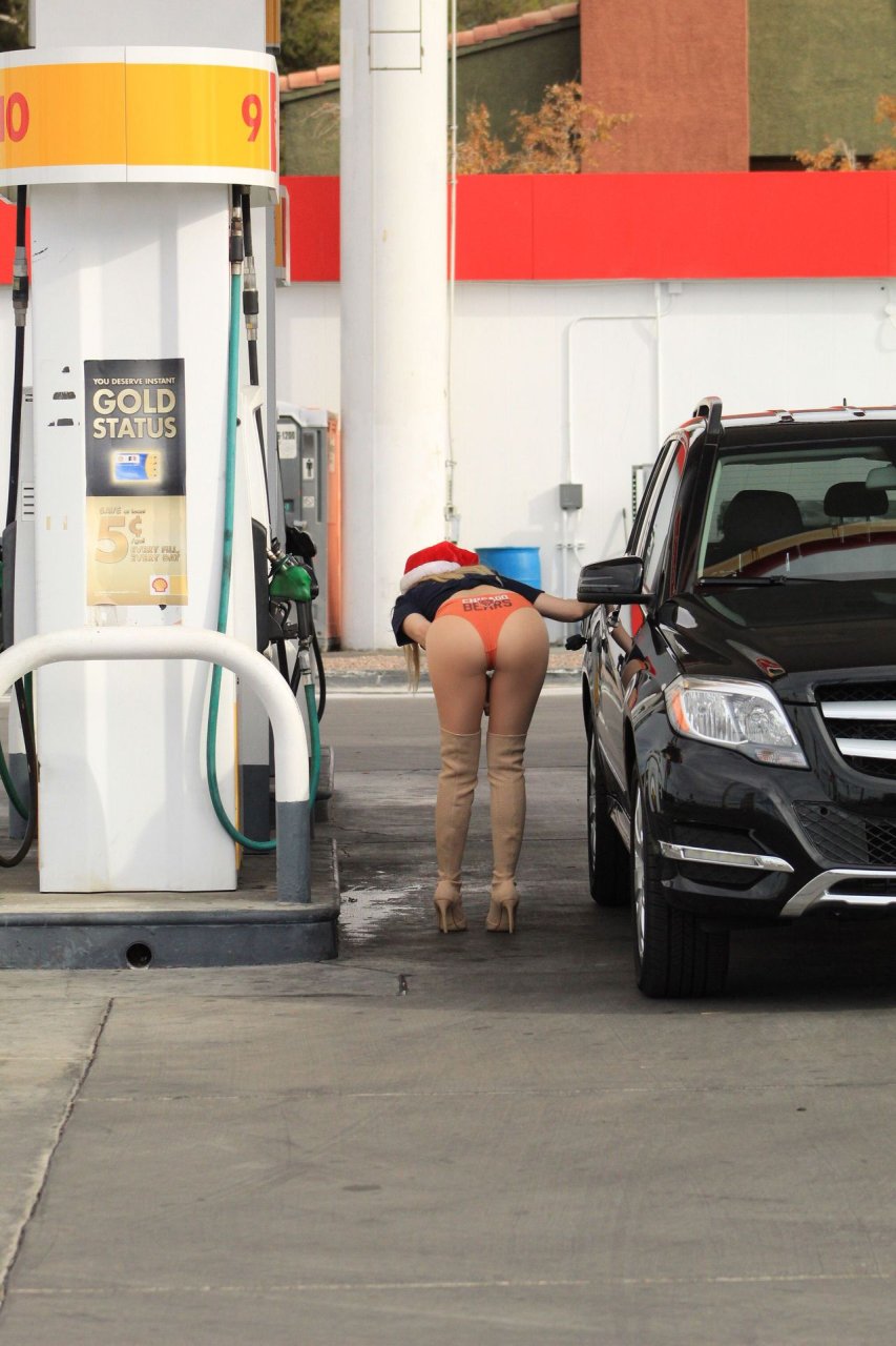 La Playmate brésilienne Ana Braga a été aperçue en train de faire le plein d’essence, célébrant la victoire des Chicago Bears et prête pour Noël – Los Angeles, 23/12/2018.