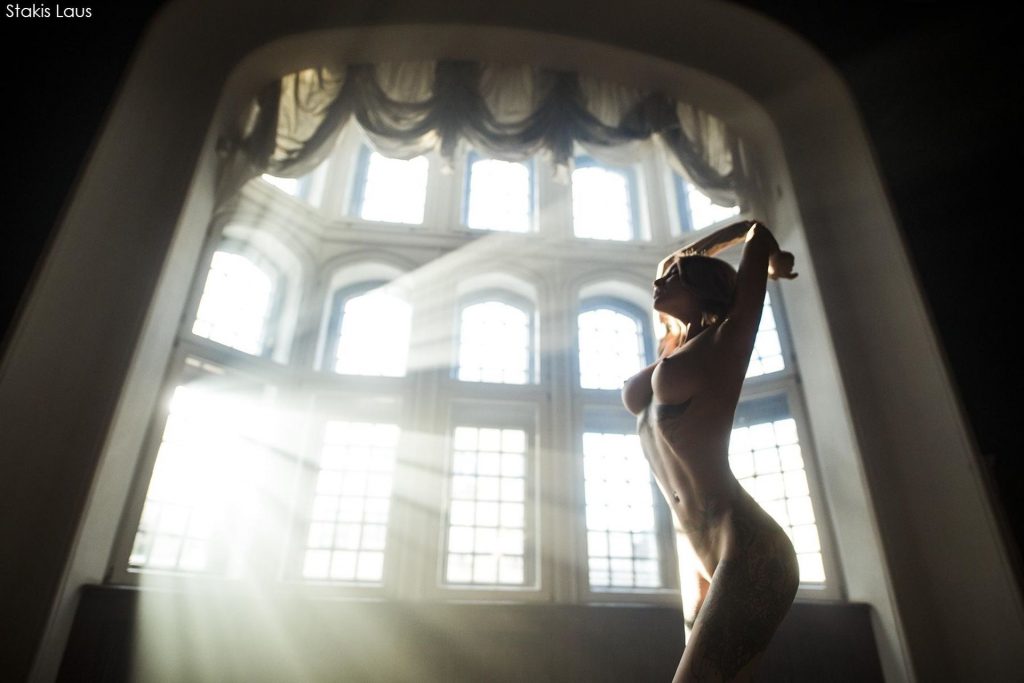 Une autre beauté russe tatouée, Anastasia Snegova, pose nue dans un loft de studio lors d’une séance photo par Stakis Laus (2019). Cela a l’air très grandiose !